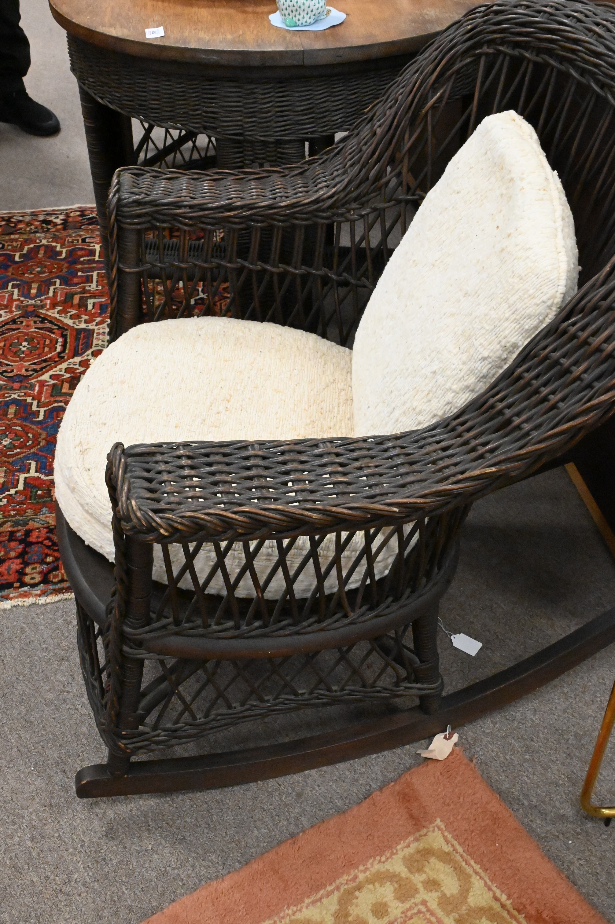 Lot 148: Gustav Stickley Willow Armchair Model No. 500 along with Gustav Stickley Willow Rocking Chair Model No. 61