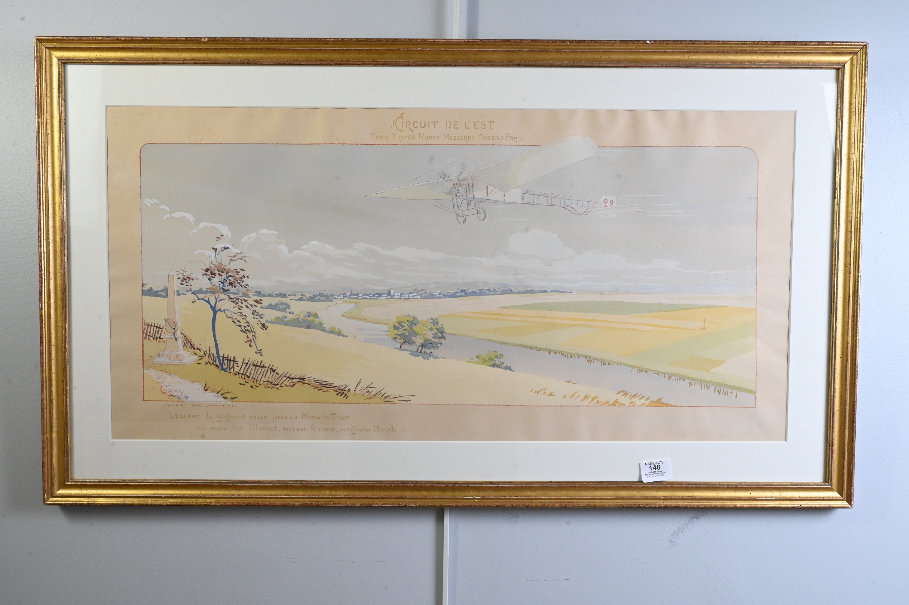 Depicting Alfred Le Blanc, winner of the Eastern Circuit cross-country race, gliding over the fields of Mars-La-Tour in France’s Lorraine region.