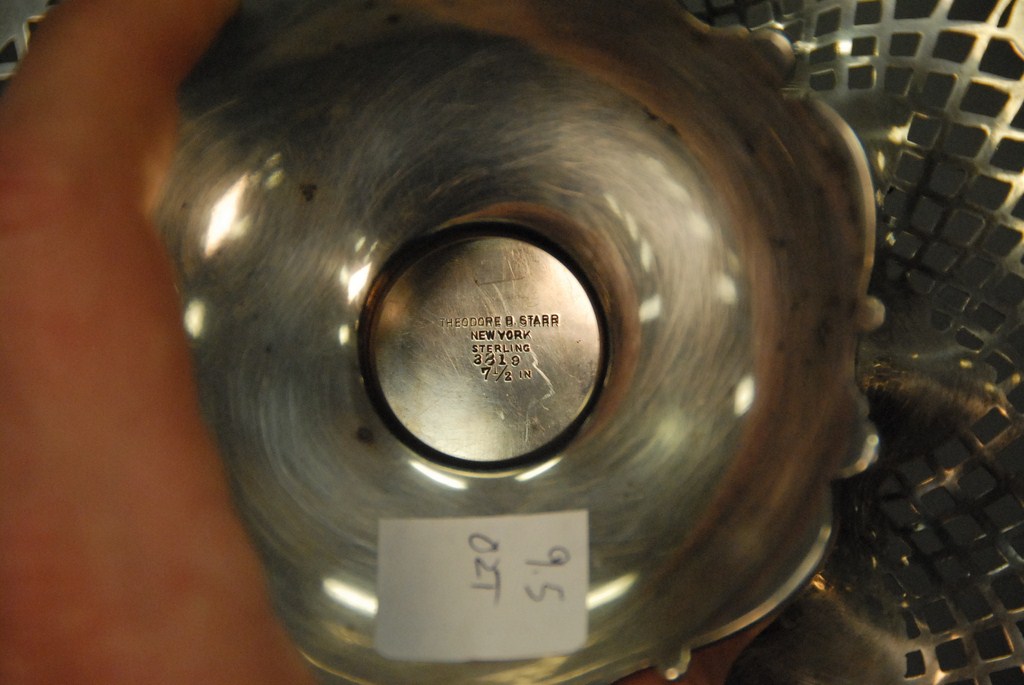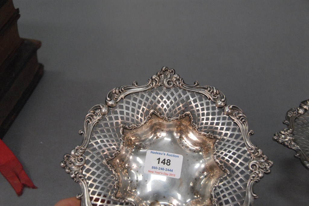 Lot 148: Pair of sterling silver Tazzas reticulated bowls with scrolled edge and bases marked Theodore Starr. 17.7 t oz.