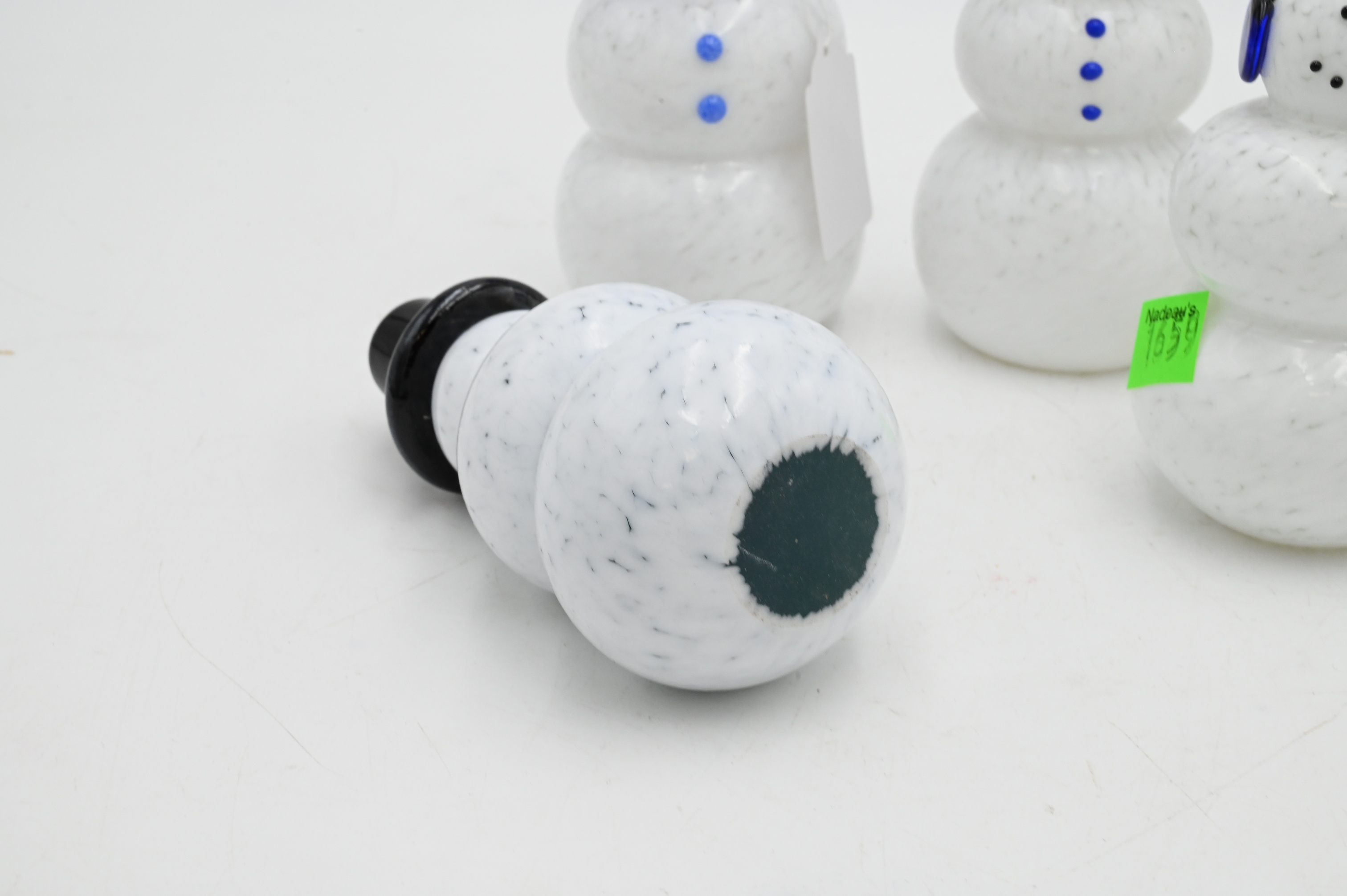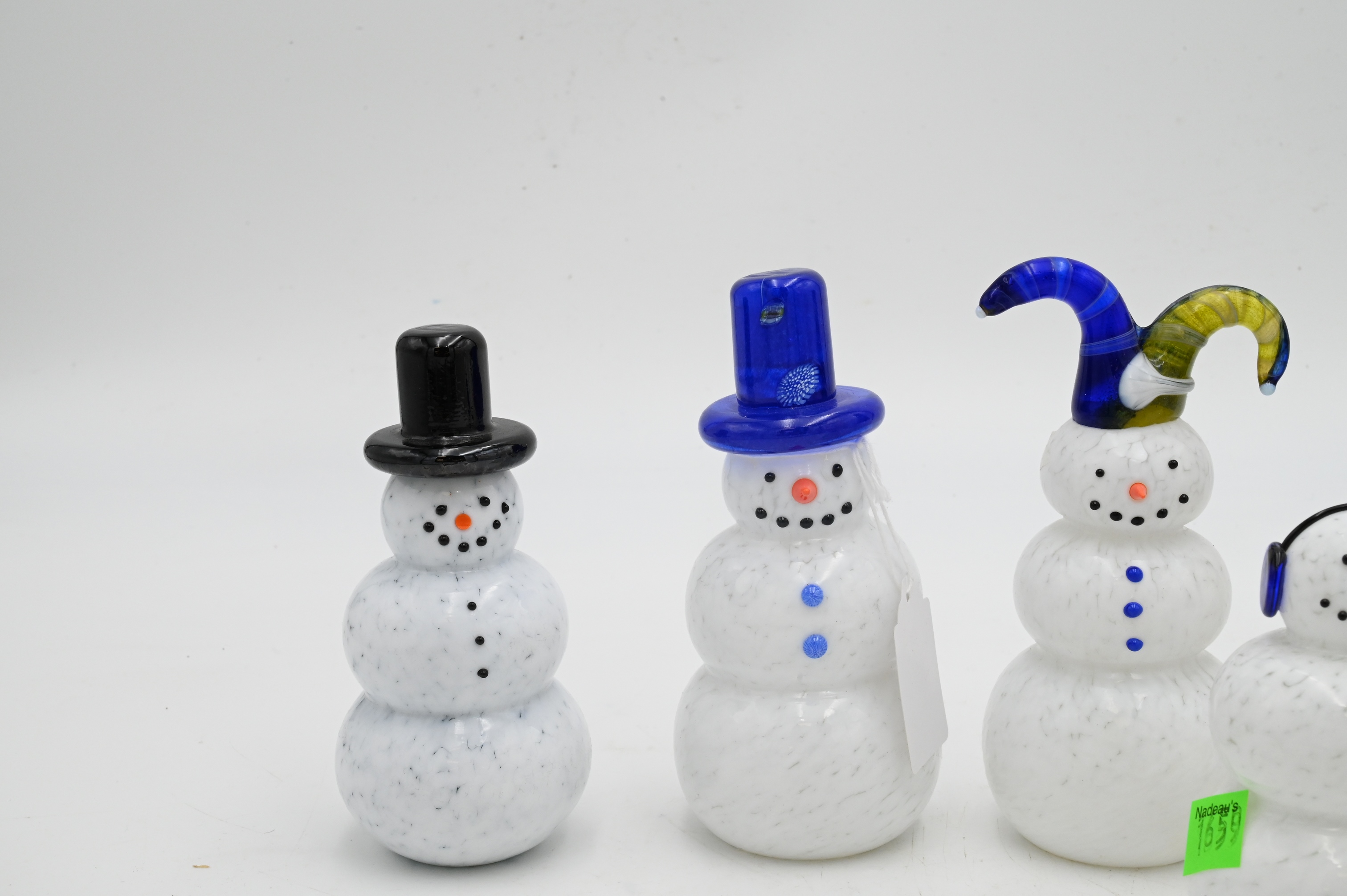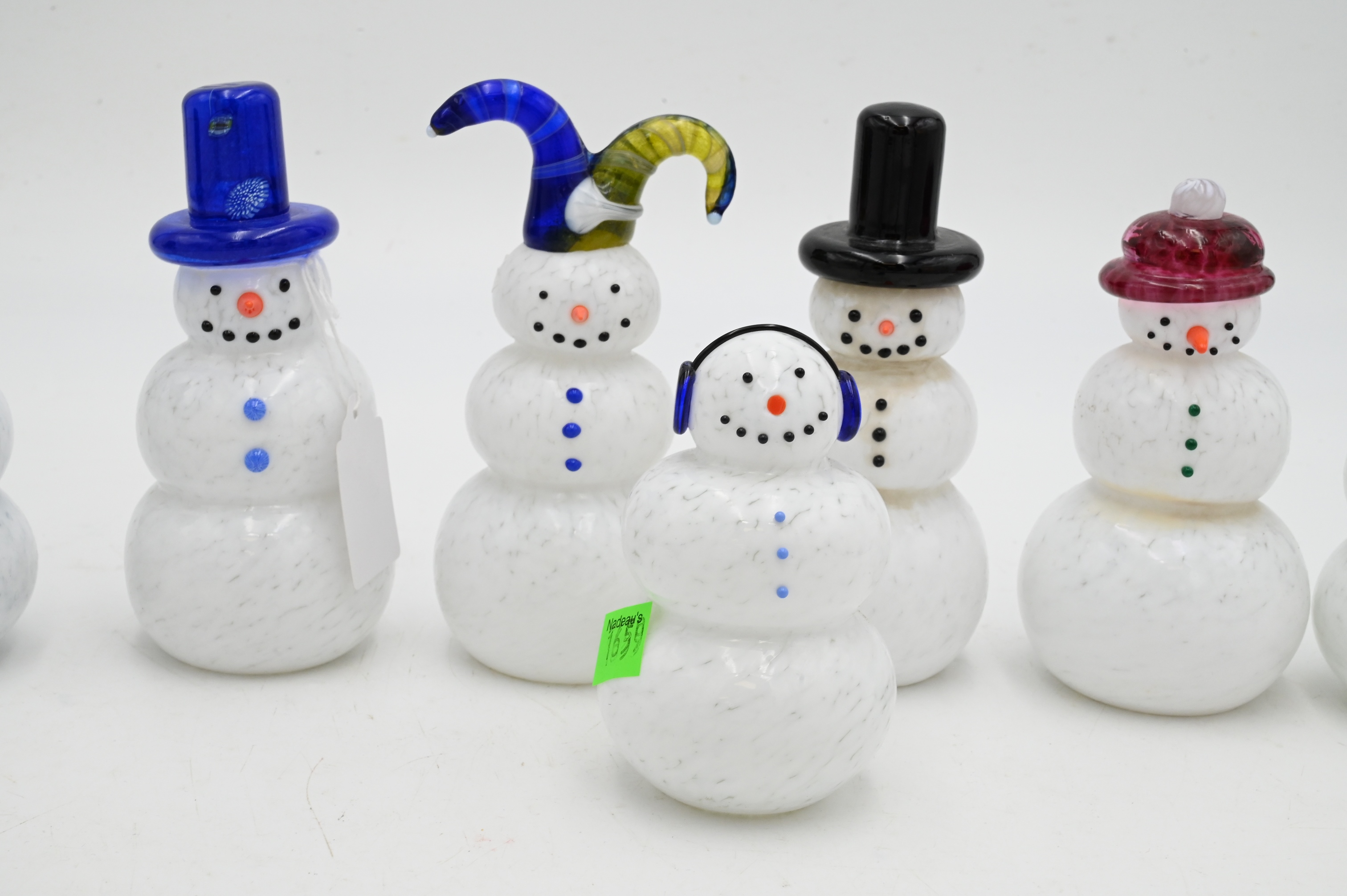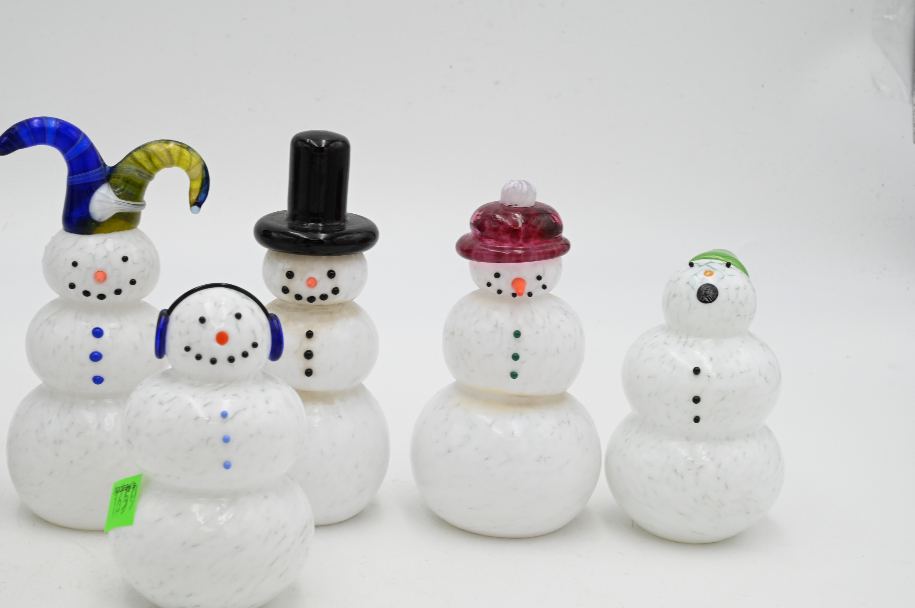 Seven Glass Snowmen, sizes range from 4 inches – 6 inches tall.