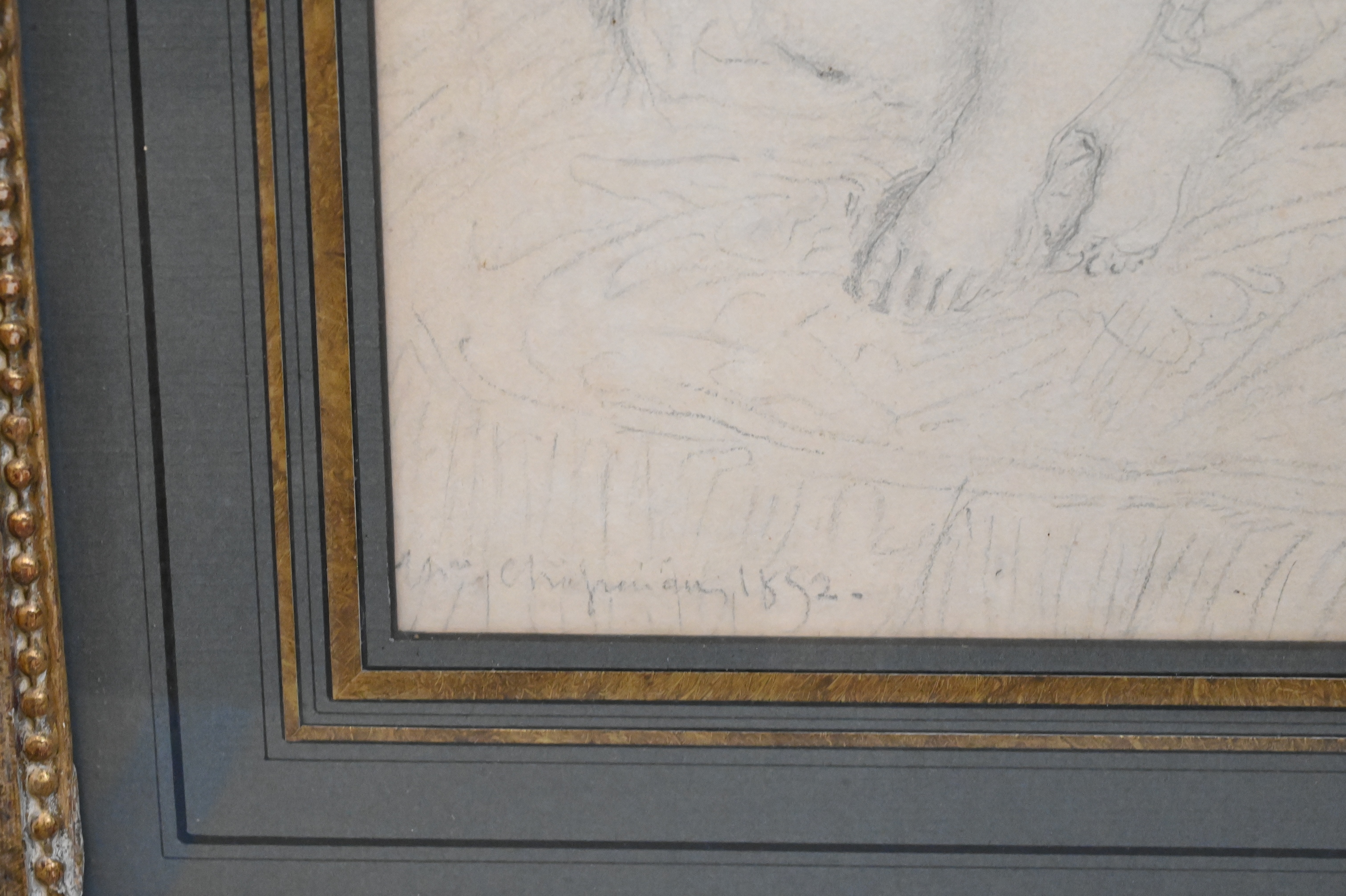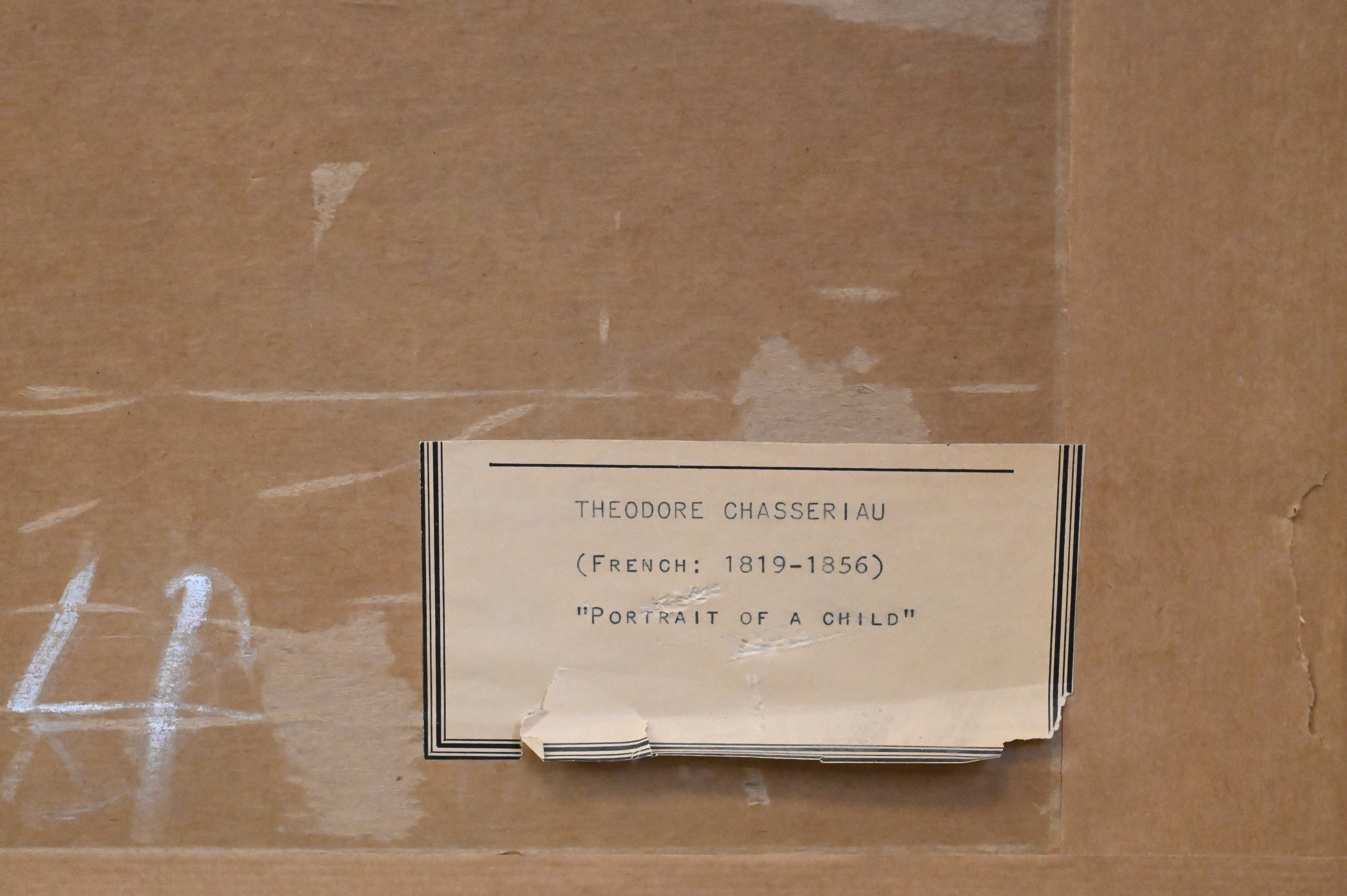 depicting a young child seated upon drapery, rendered with tender naturalism and delicate tonal shading; the drawing demonstrates Chassériau’s refined academic draftsmanship and emotional sensitivity, hallmarks of his late style bridging Romanticism and early modern portrait study