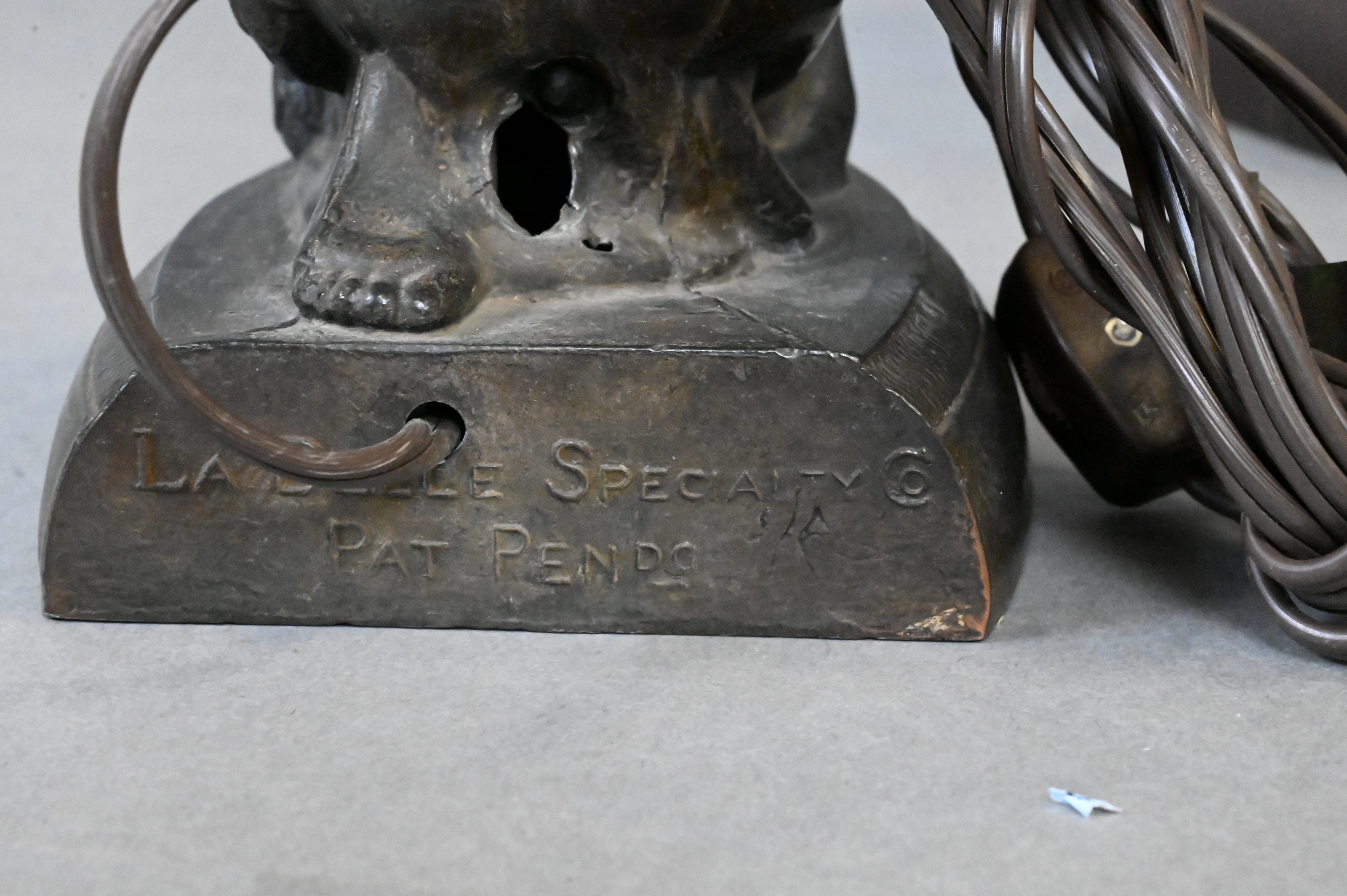 to include La Belle specialty Joan of Arc Lamp, marked “La Belle Specialty Pat Pending” on back, along with rosewood lamp having milk glass shade