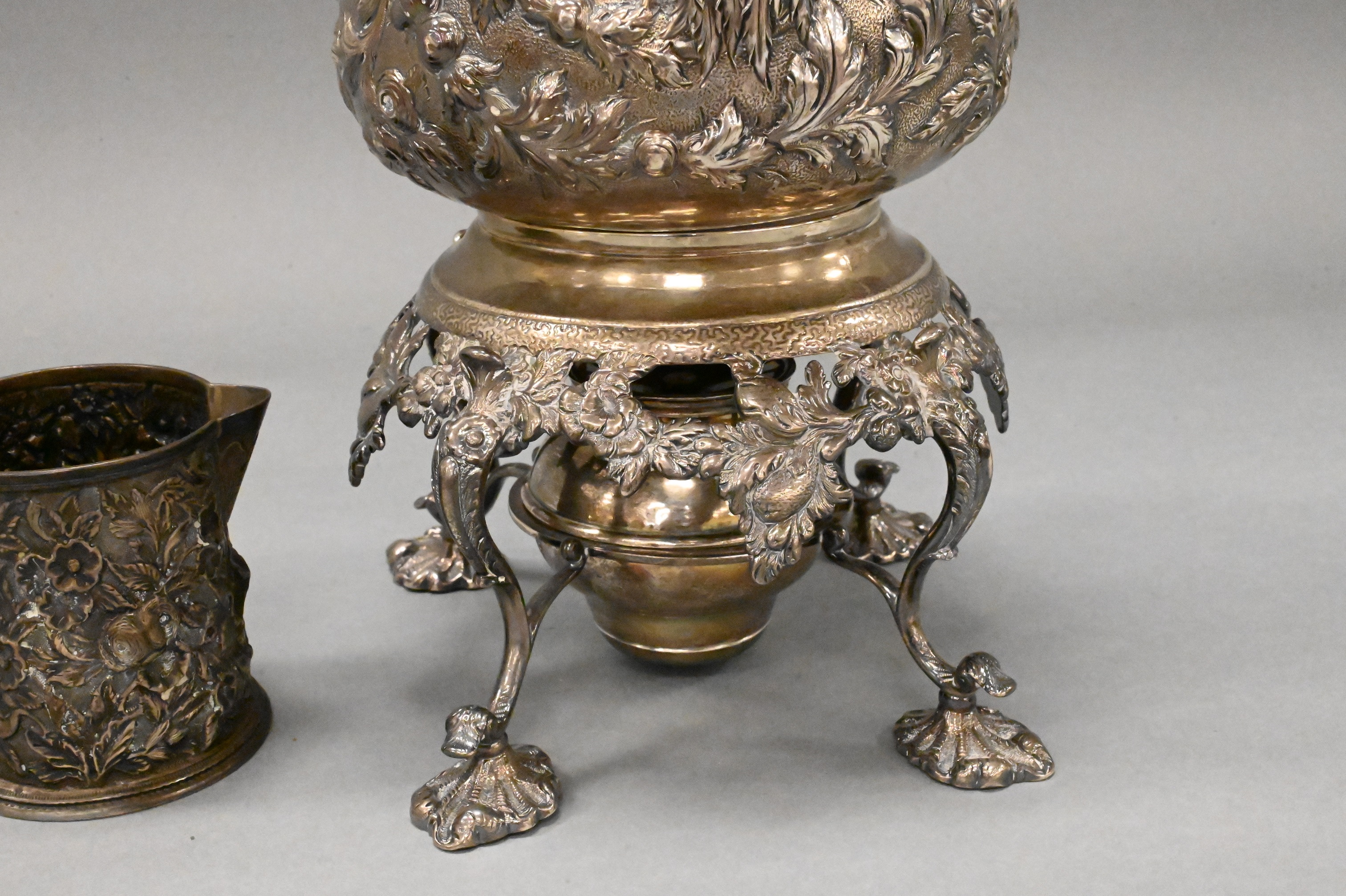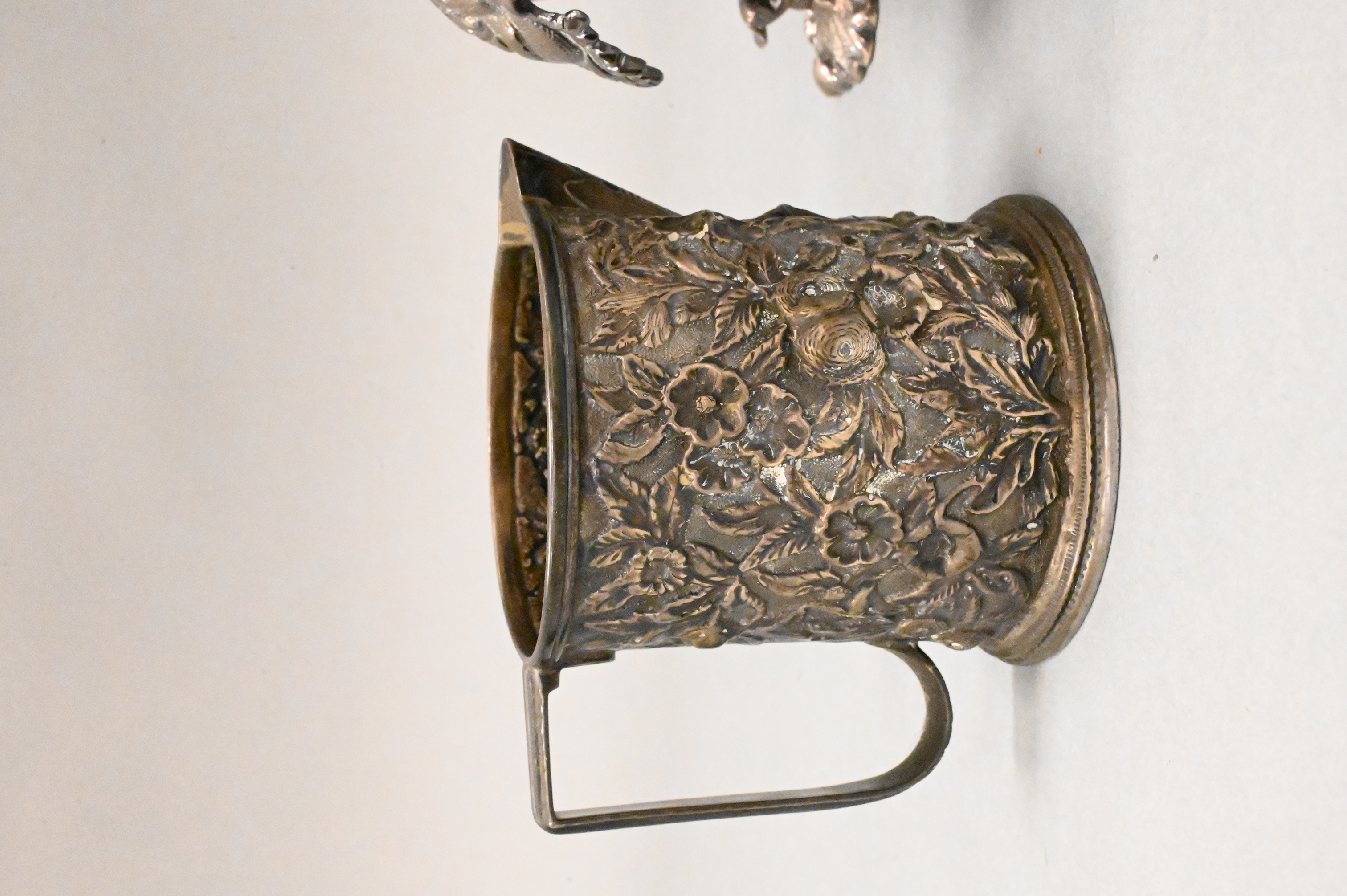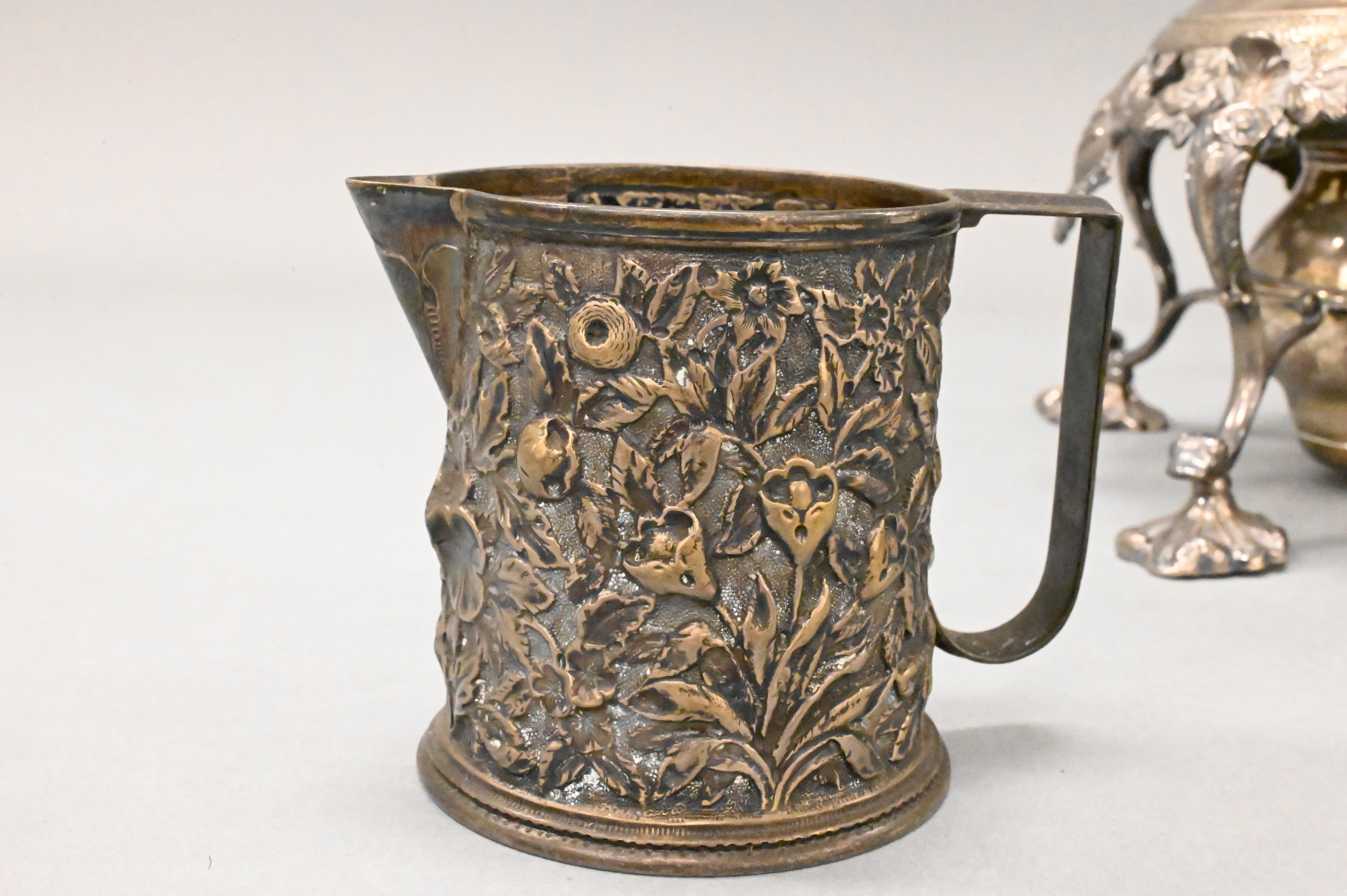 Lot 148: Two Piece S. Kirk and Son Repousse Sterling Silver Coffee Pot on Stand and Creamer