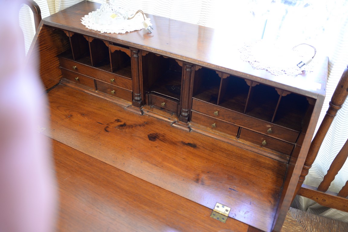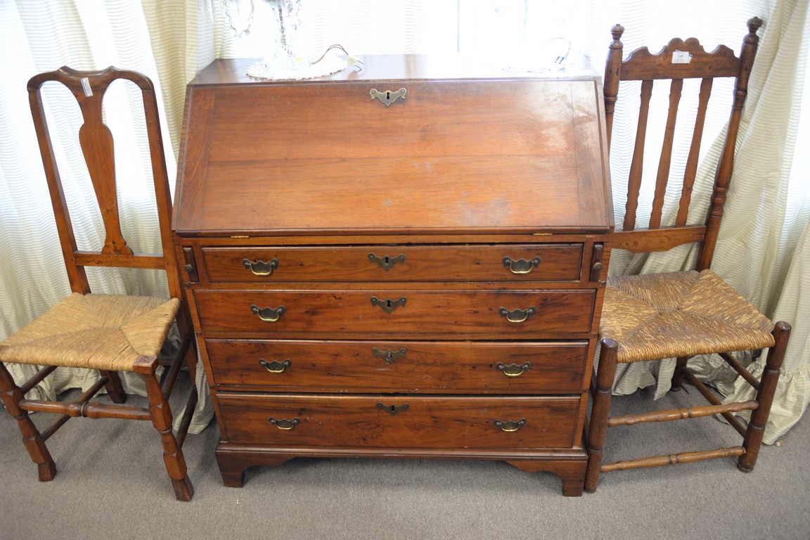 Lot 148: Walnut Chippendale desk having slant front over four drawers set on bracket base, 18th century. ht. 40in., wd. 36in., dp. 19in.
