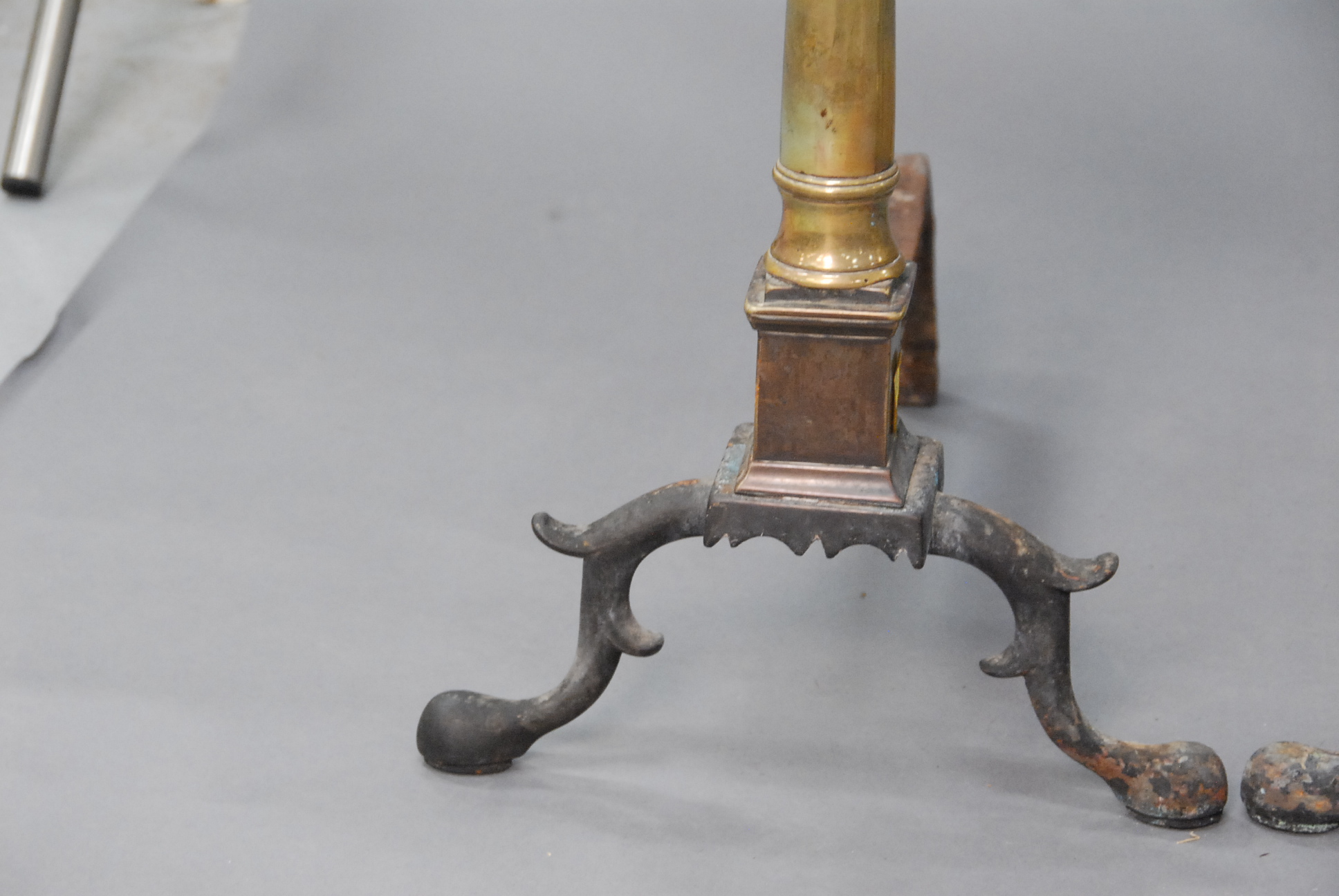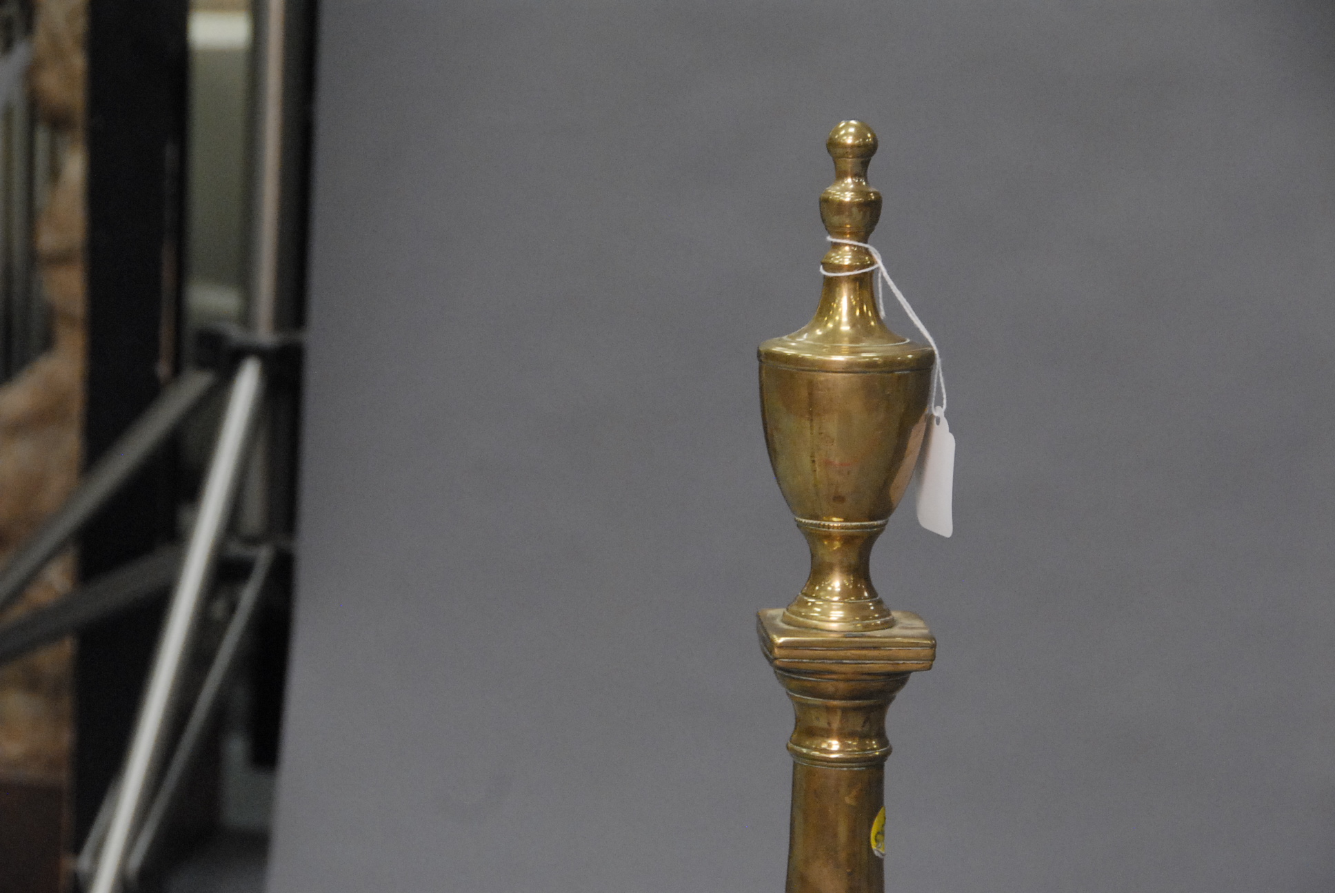 Chippendale brass andirons with urn tops.
