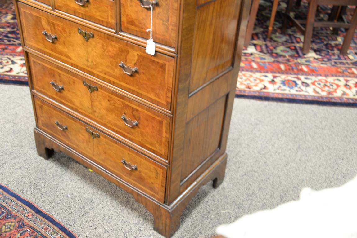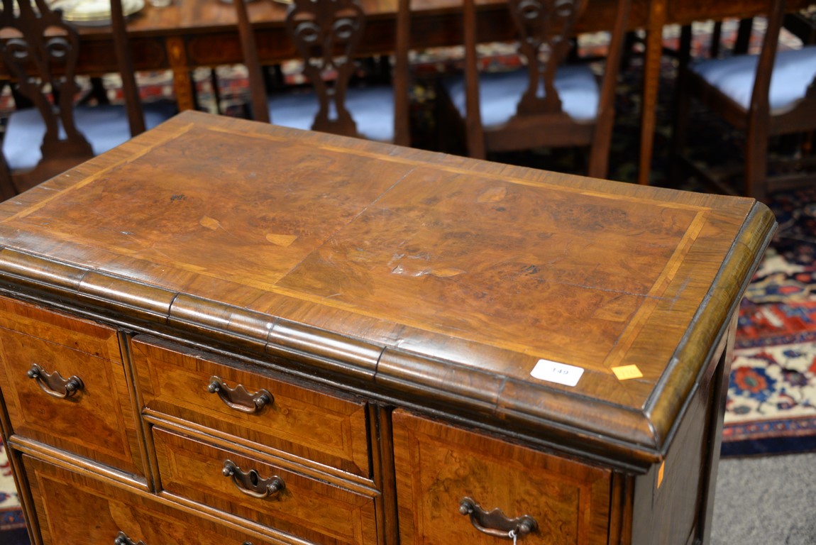 Lot 149: George II walnut veneered chest having two center short drawers flanked by two deep drawers over three long drawers set on bracket b…