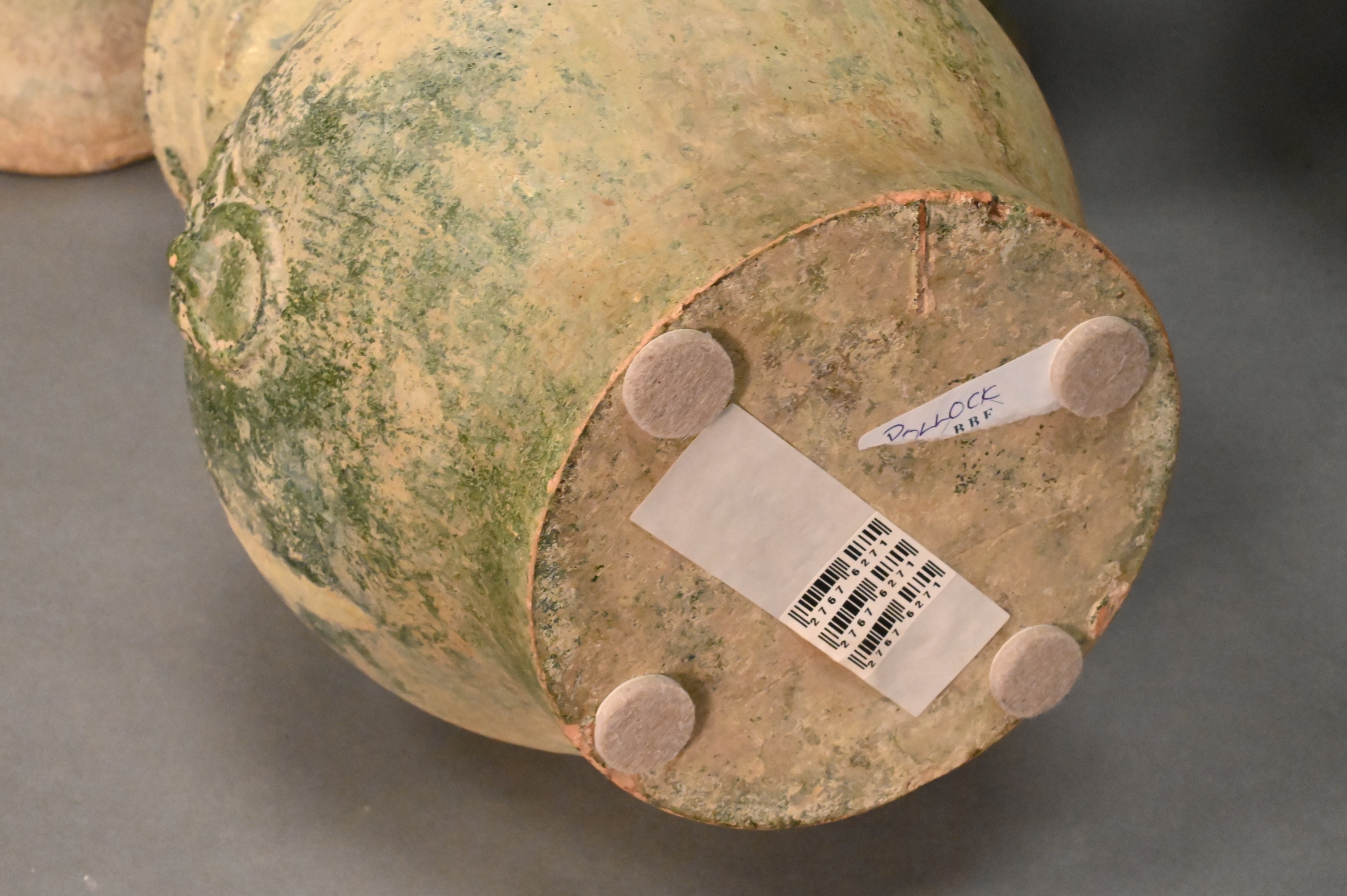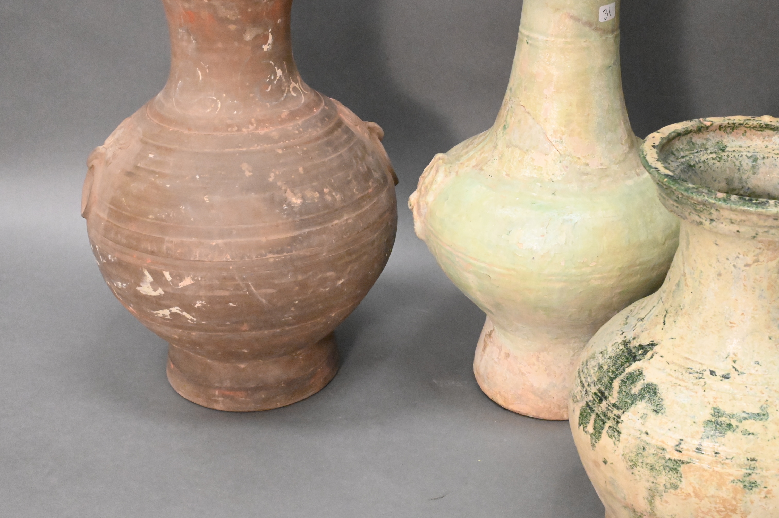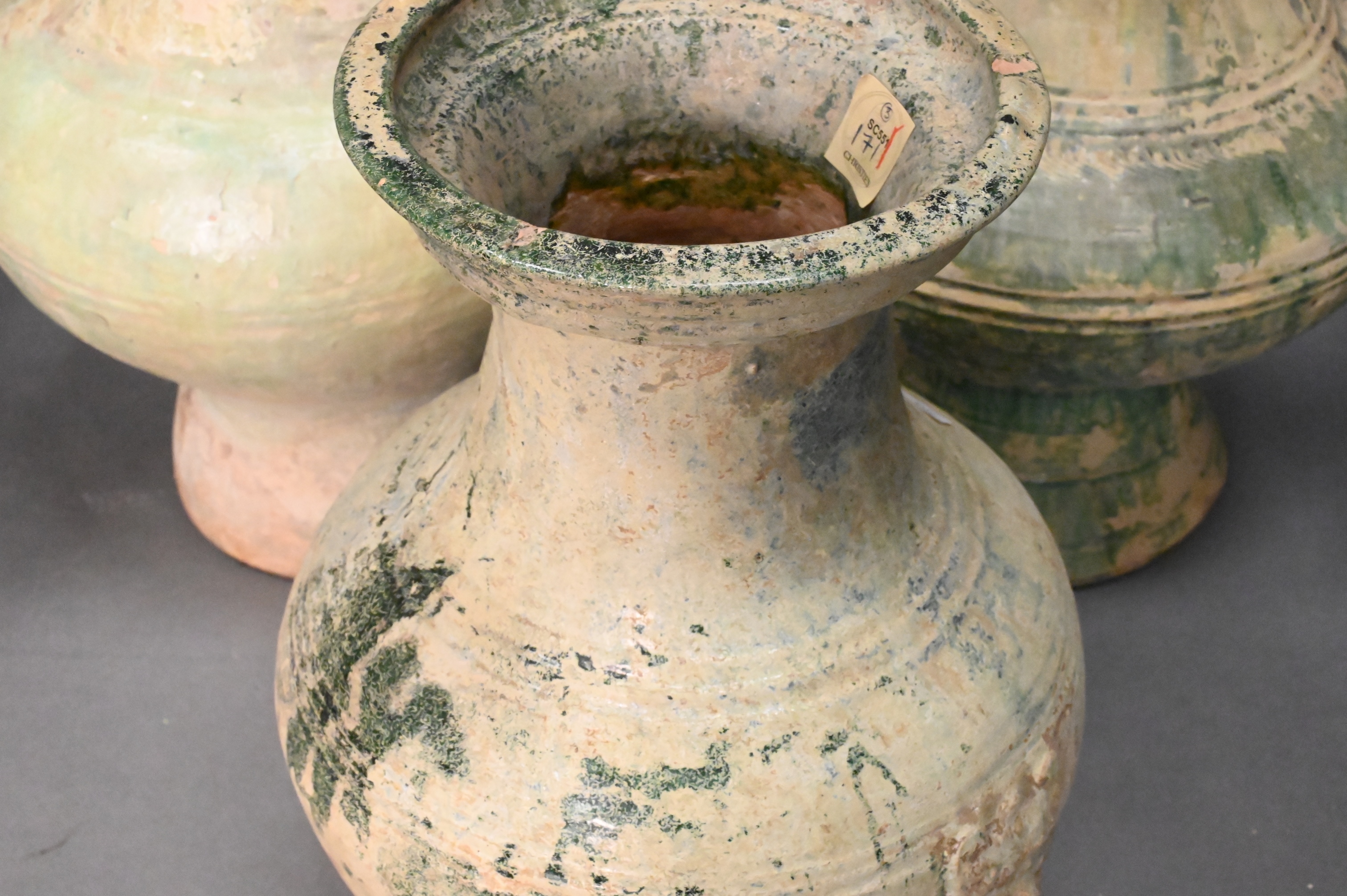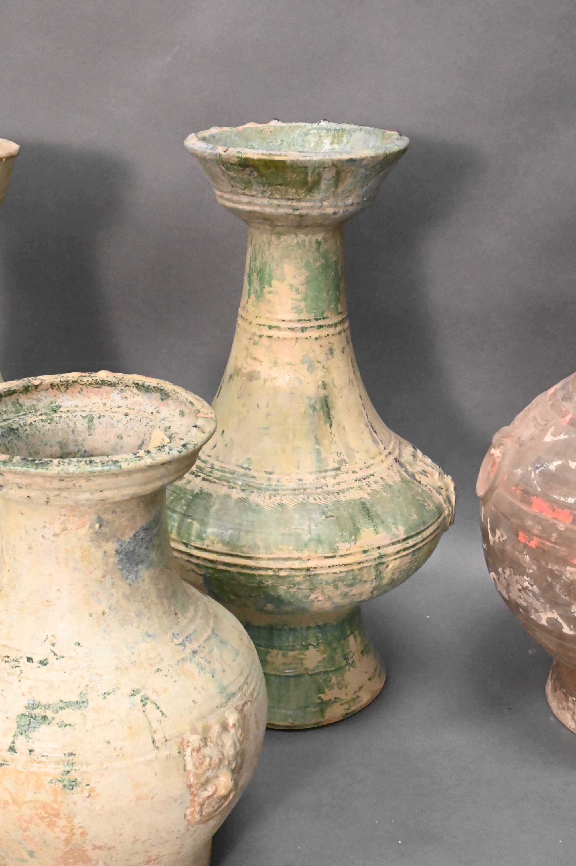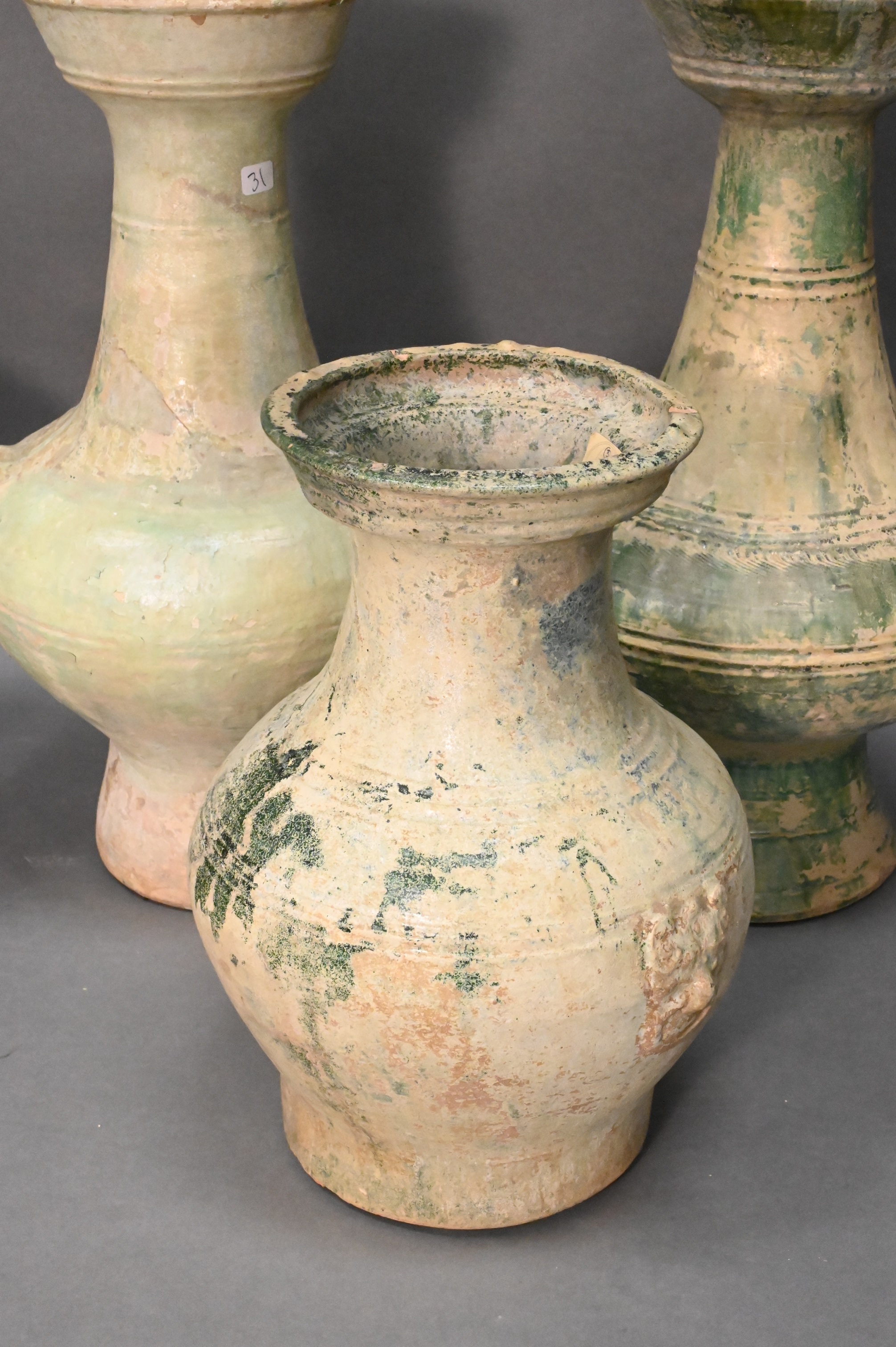 green glazed vases and a smaller green glazed vase