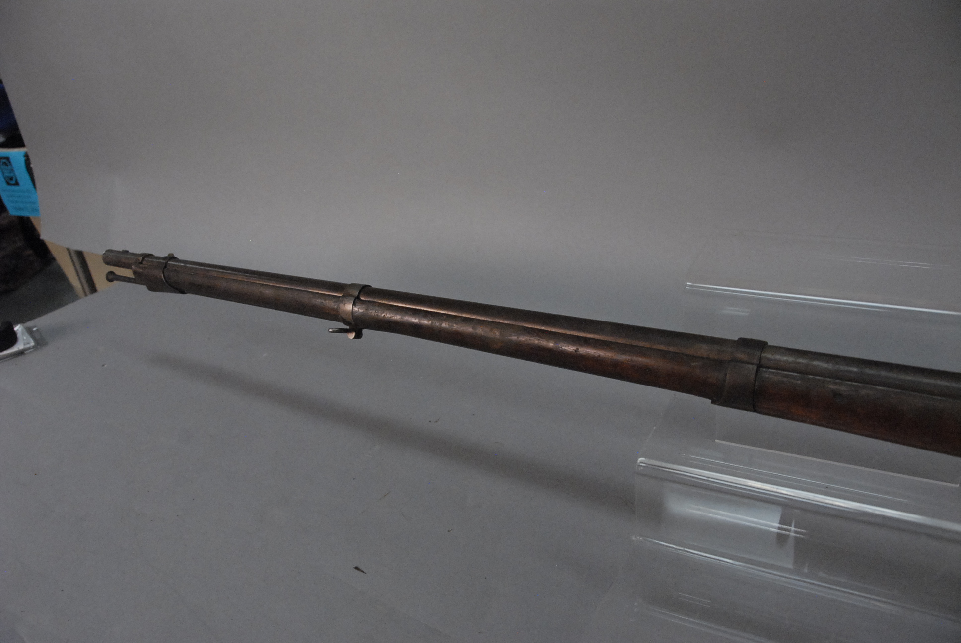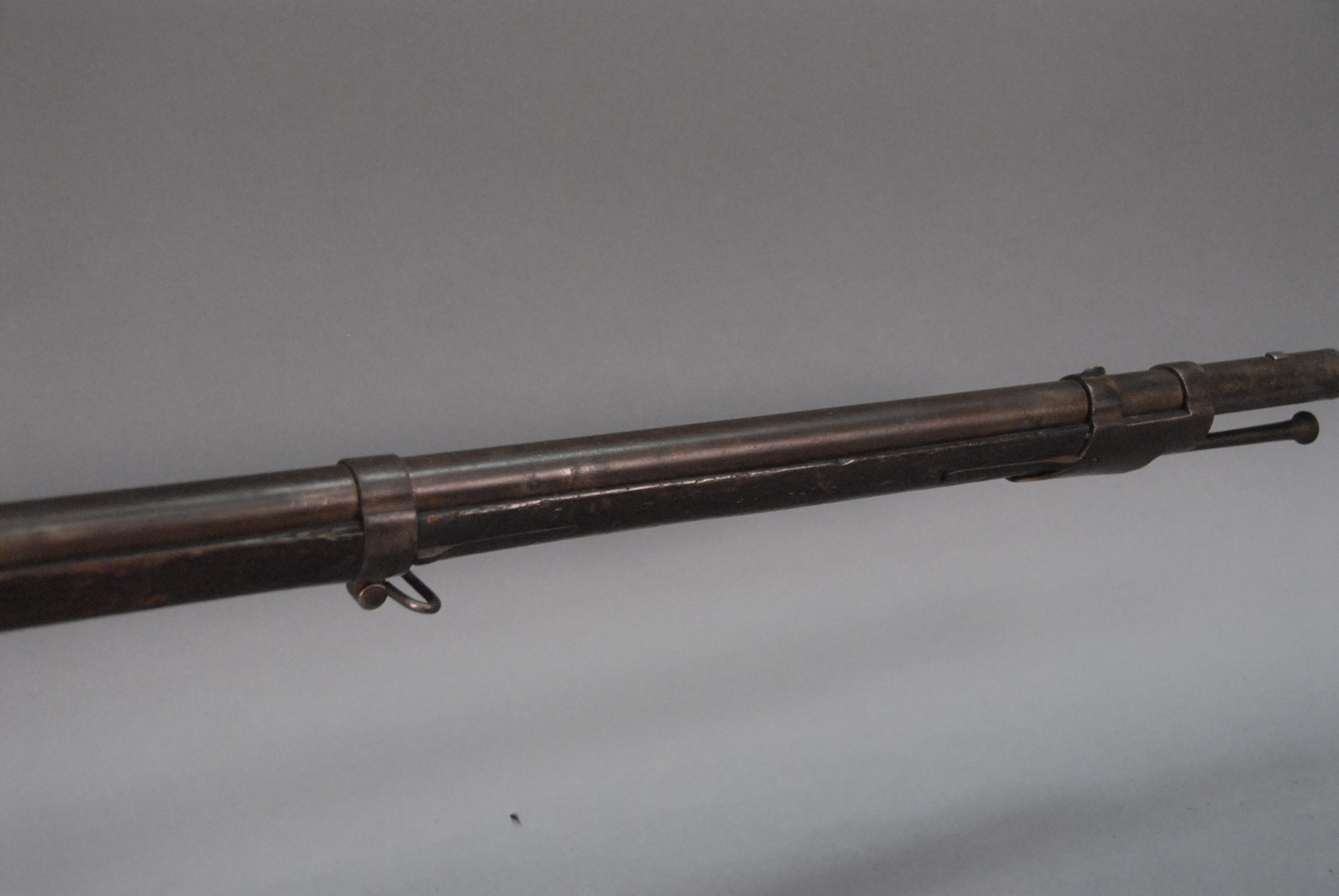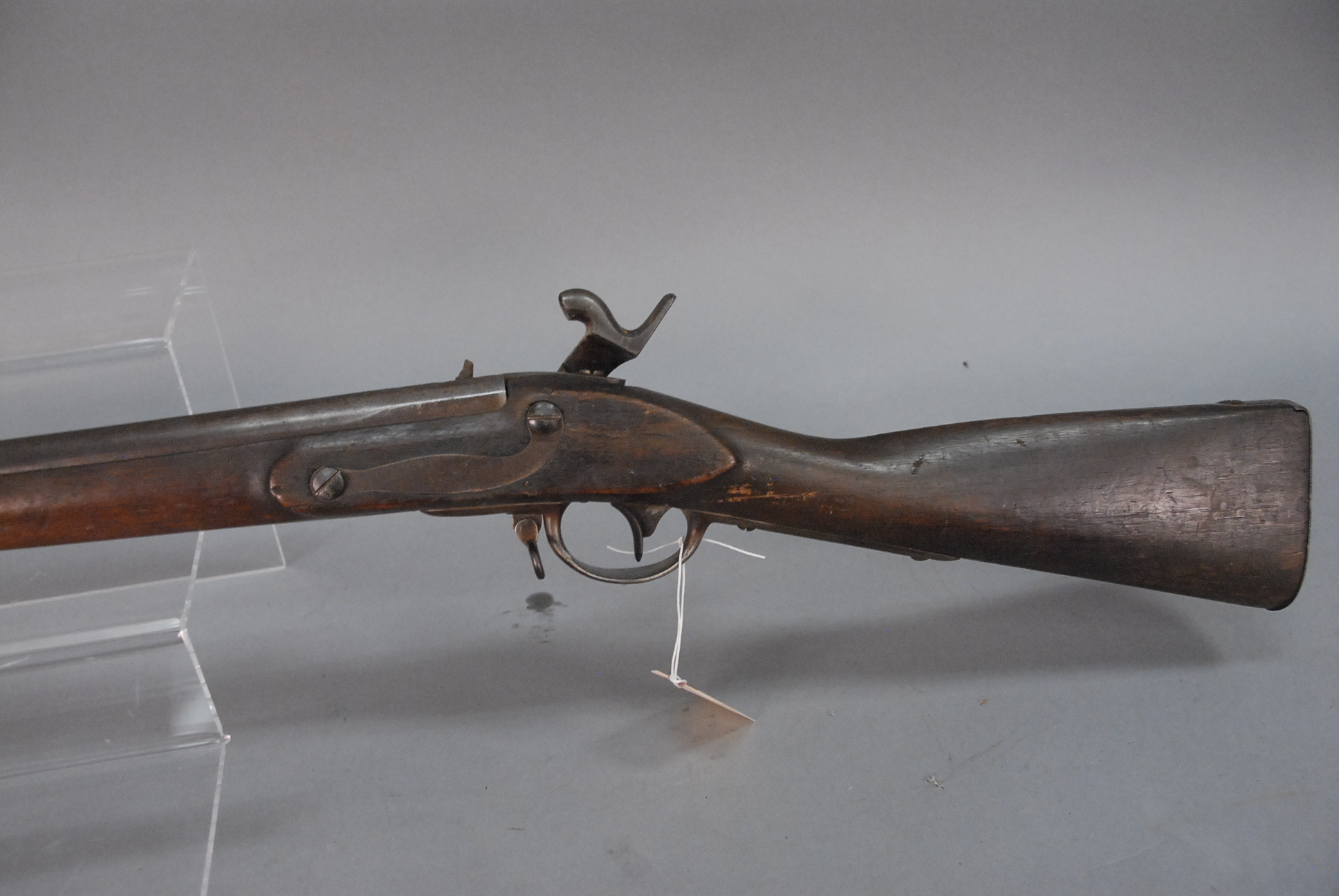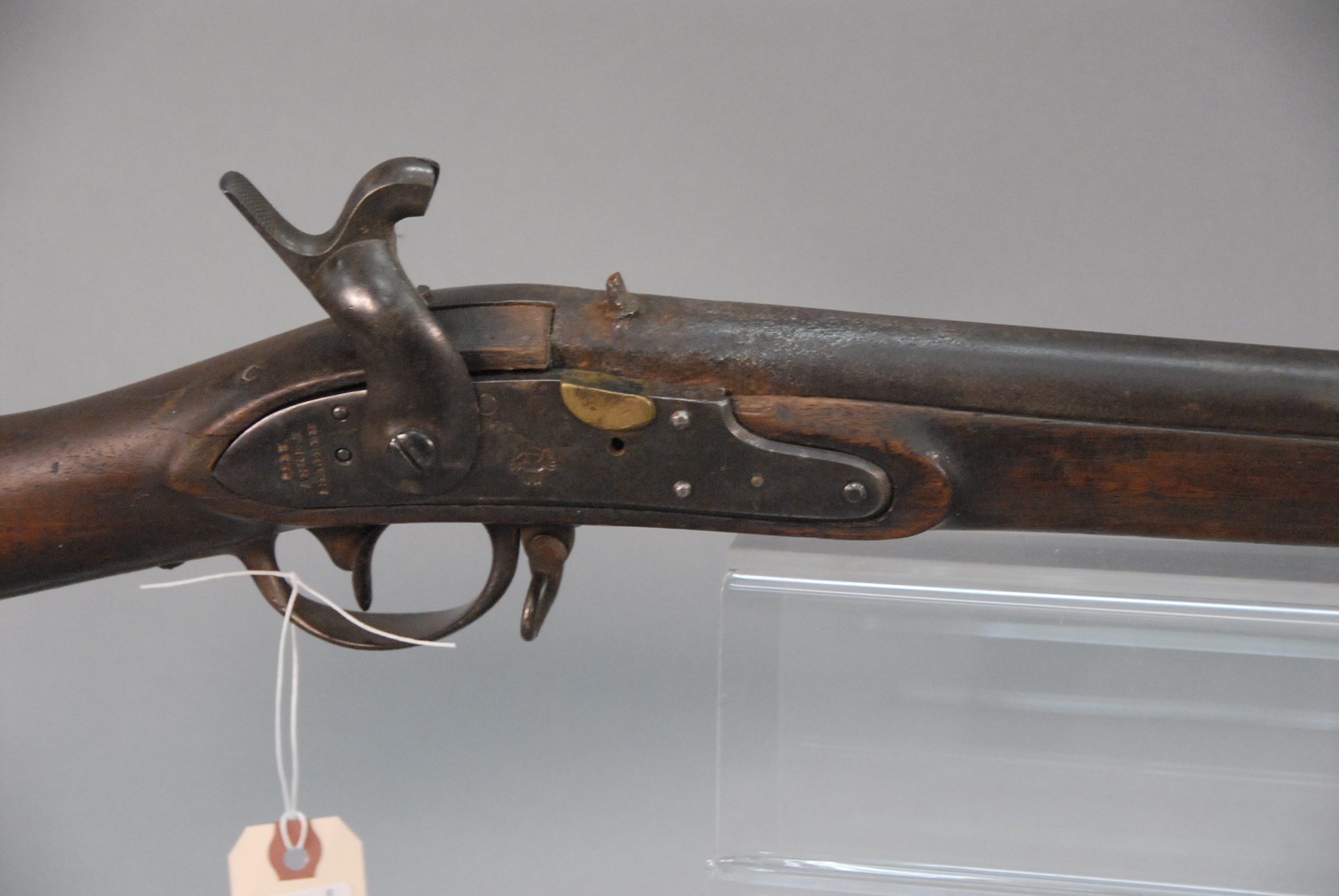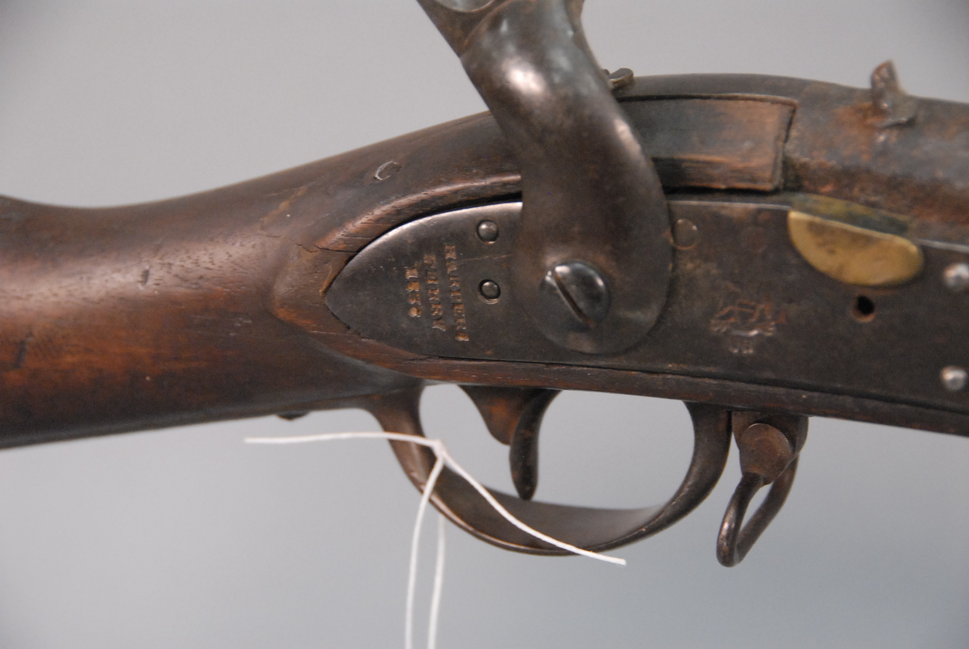 Lot 149: Harper’s Ferry percussion military rifle marked Harper’s Ferry 1836, US, 1839, having 42 barrel.