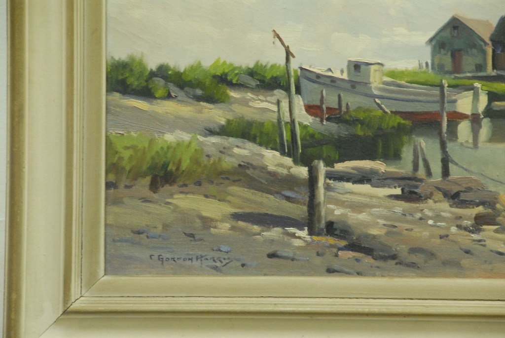 Harris, C. Gordon oil on canvas harbor scene, 20 x 24.