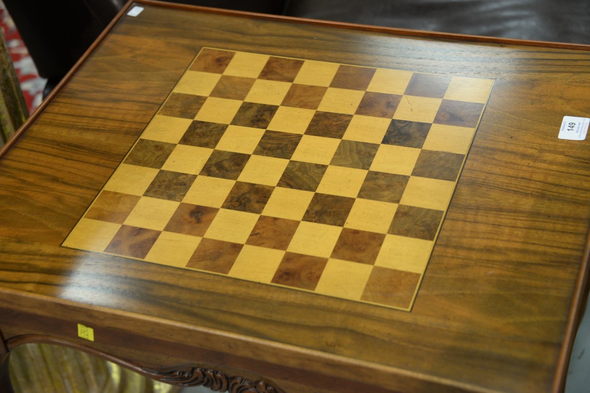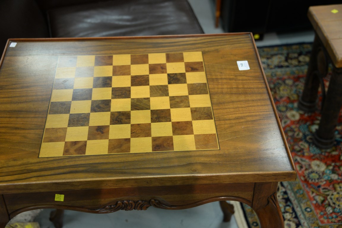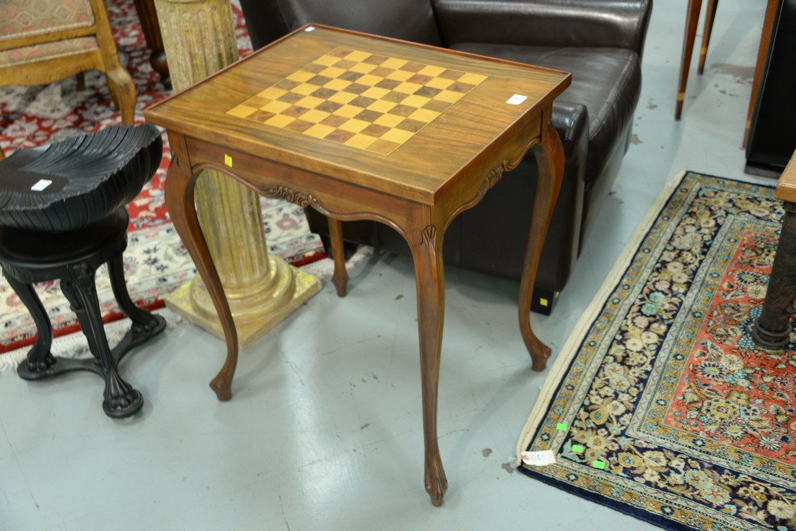Inlaid games table with lift top and backgammon inside. ht. 29 1/ 2in. top: 20 x 25