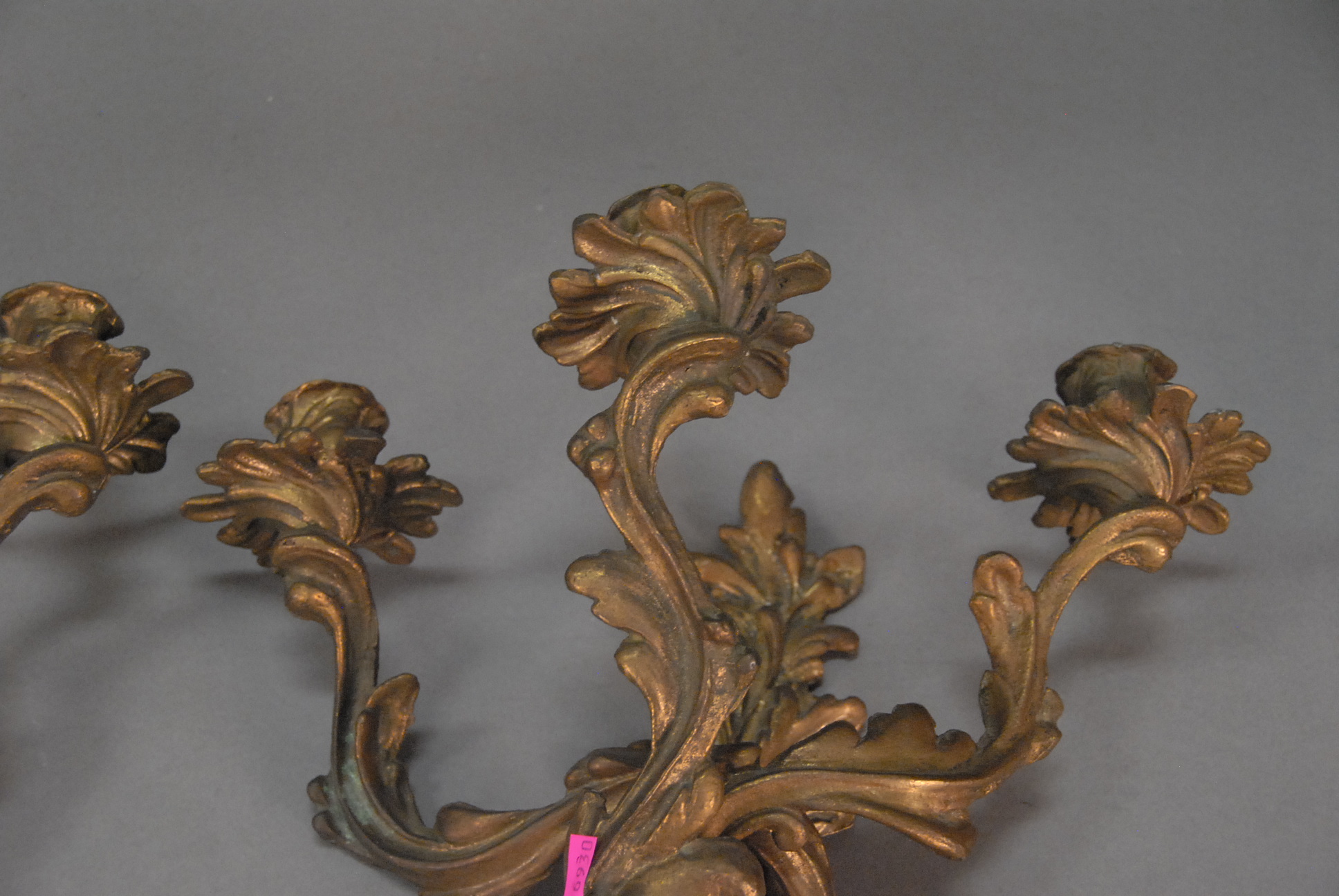 Lot 149: Pair of Louis XV style brass sconces.