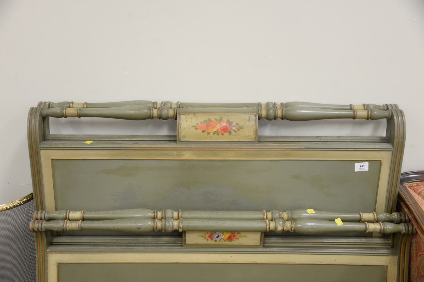 Pair of Twin Beds, paint decorated with headboards, footboards and rails, height 40 inches.