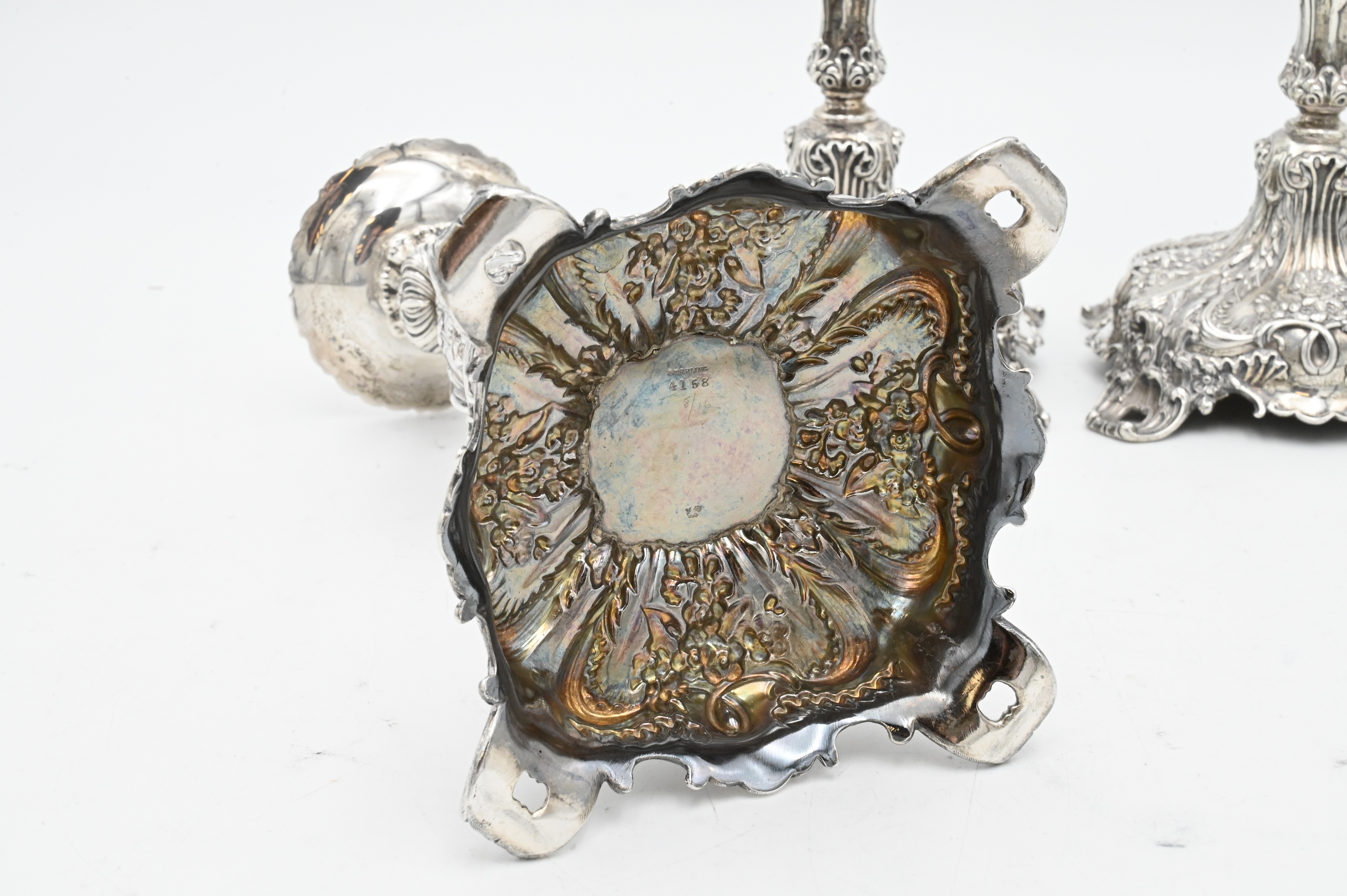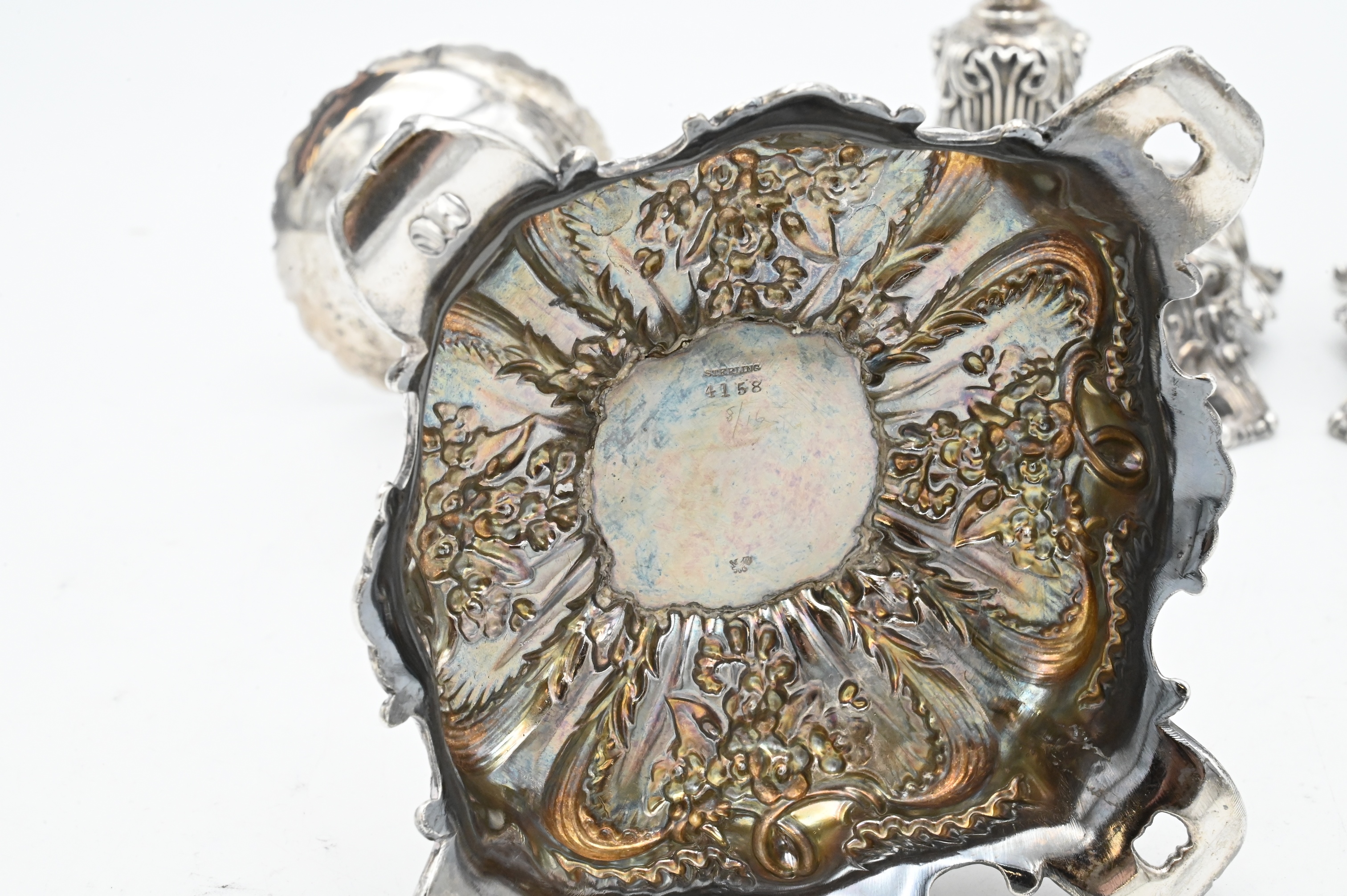 with embossed flowers and pierced scroll feet, marked Sterling 4158