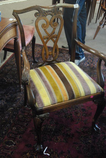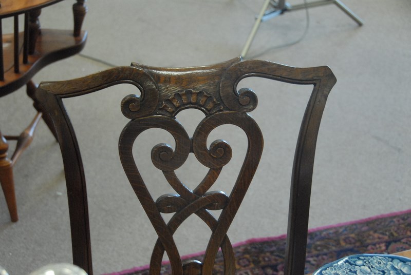 Set of six oak Chippendale style chairs to include two armchairs and four side chairs.