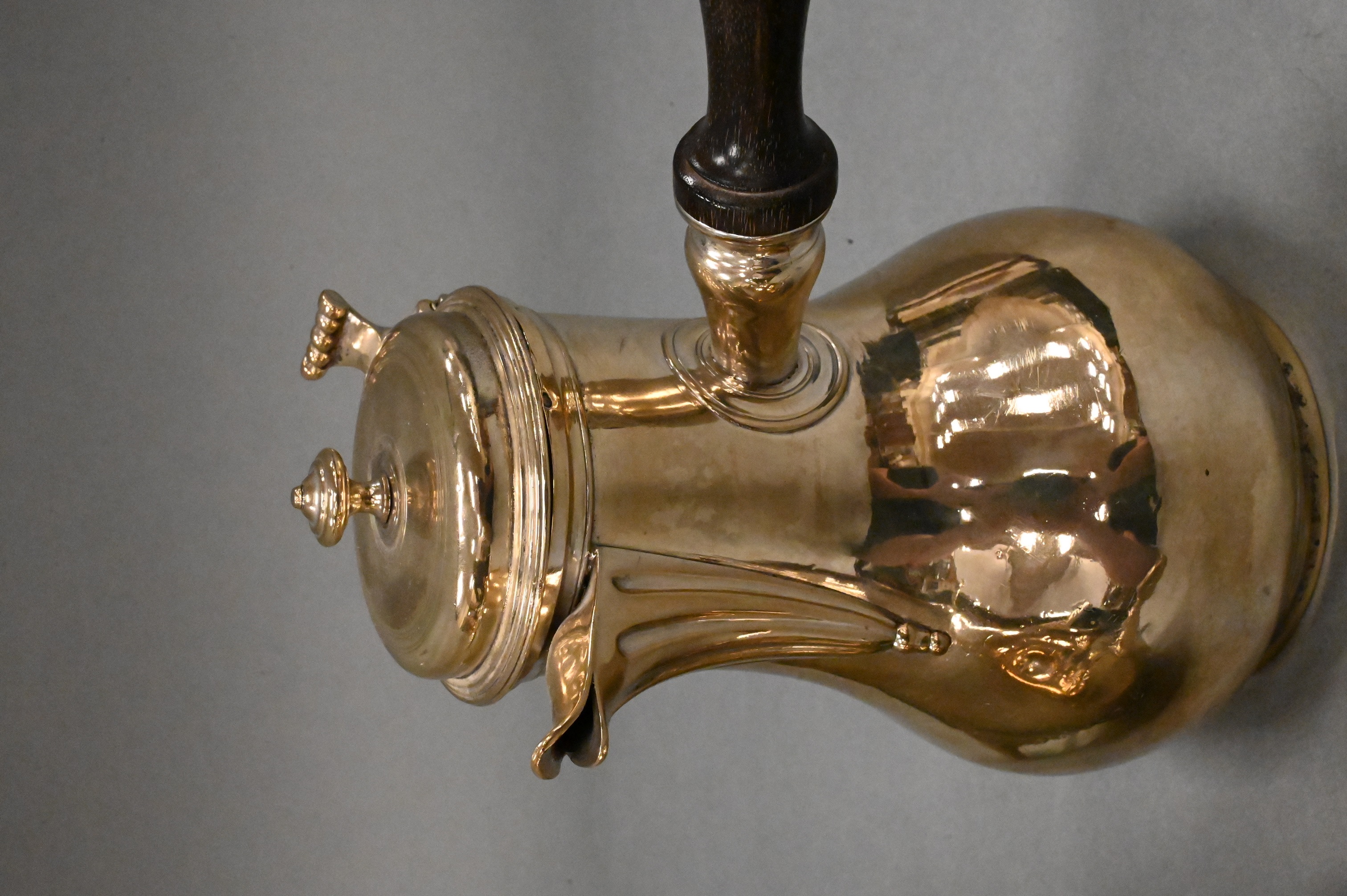 to include one on three curved legs, foliate finial, and turned wood handle, one in baluster form having ebony handle