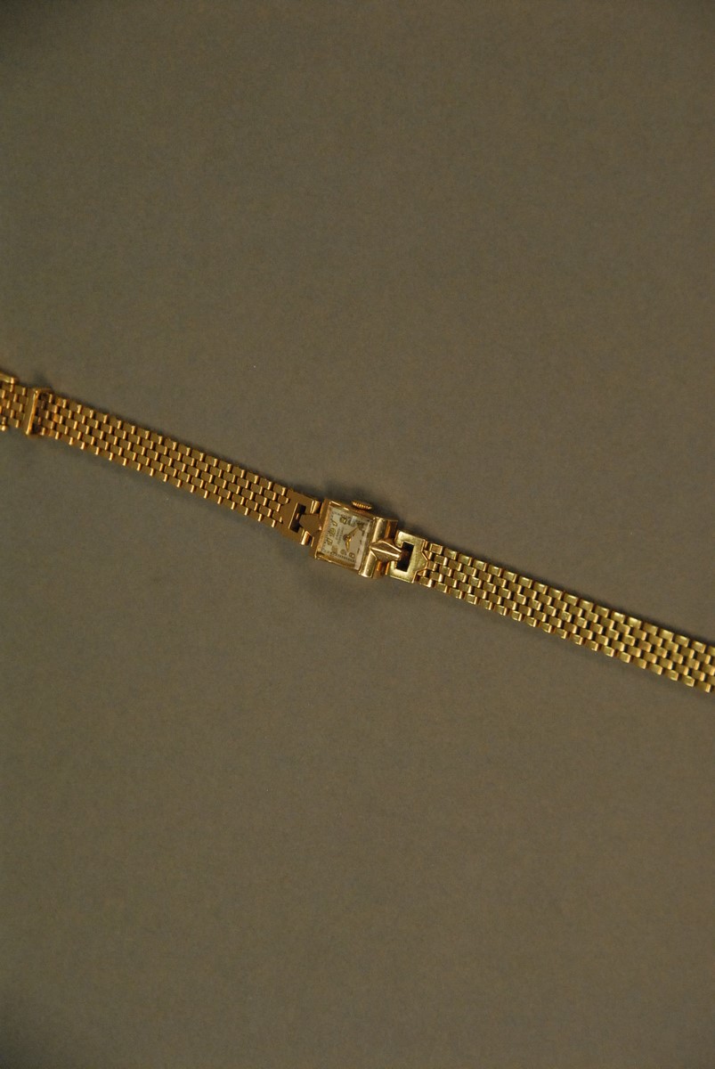 Lot 15: 14K gold Girard Perregaux ladies wristwatch with 14K gold band with buckle. 32 total grams Provenance: Property from a Private Collection Sold for the Benefit of the Virginia Historical Society.