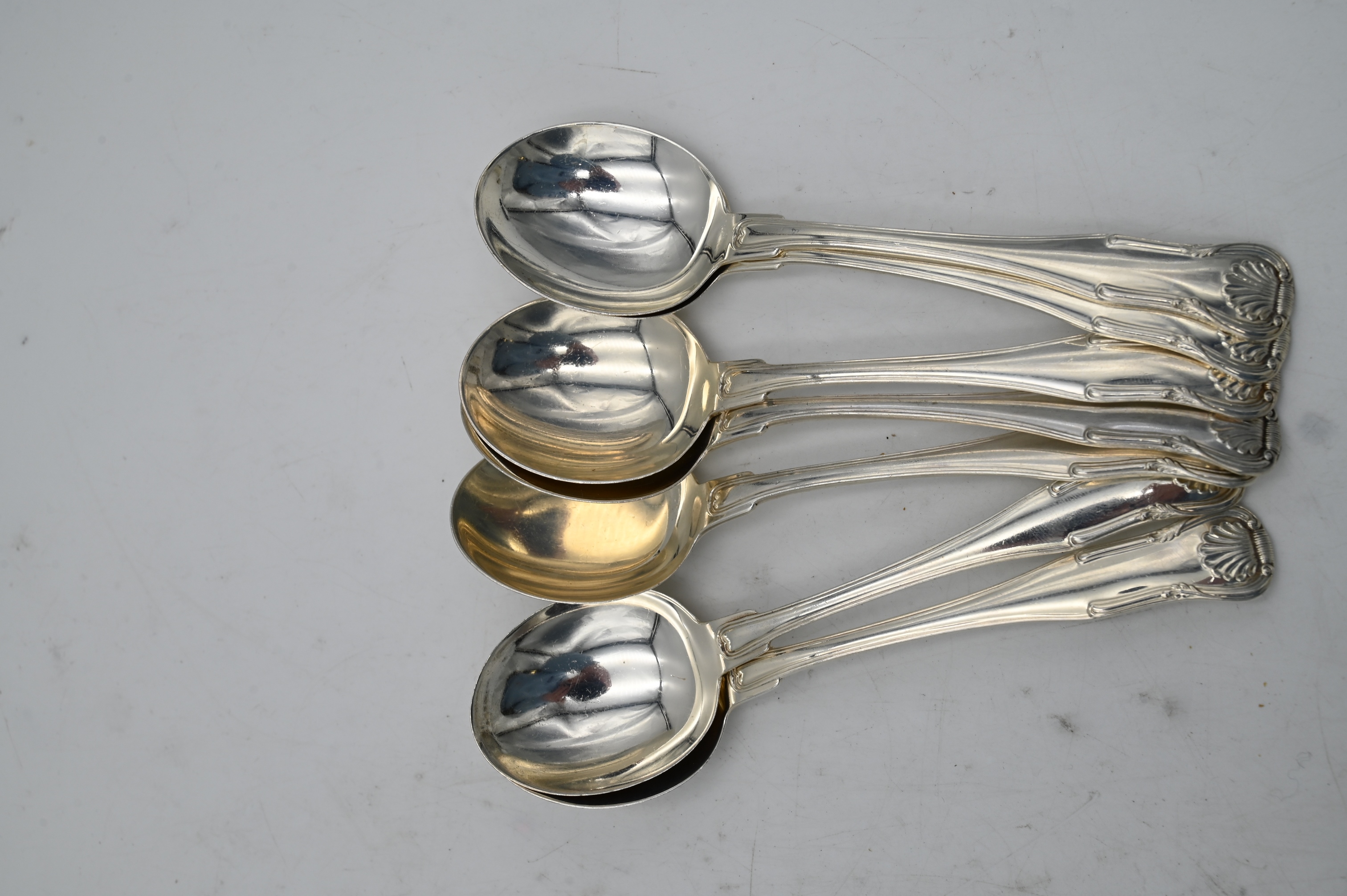 to include four luncheon forks, five fish forks, eight soup spoons, five tea spoons, one sugar spoon, five luncheon knives, and seven butter knives