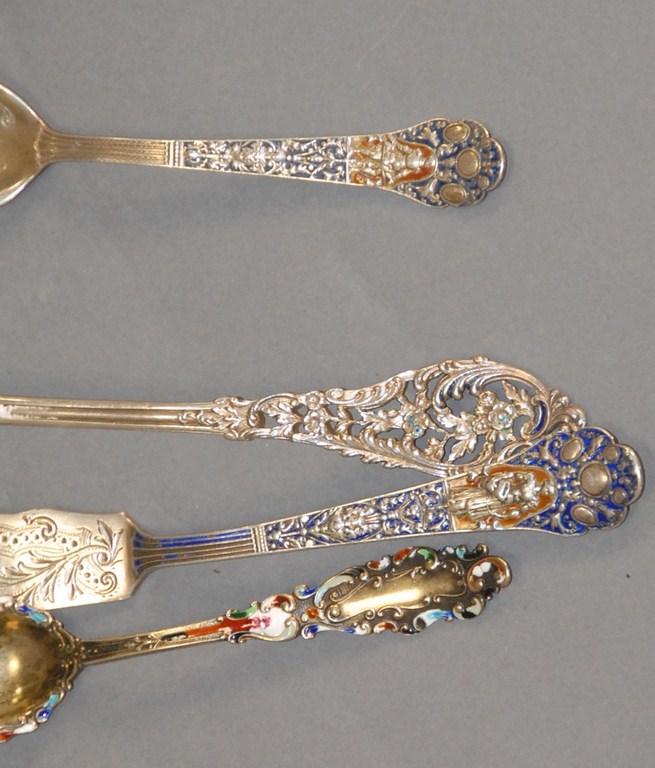 Four piece sterling silver lot with enameling enameling as is, 5.4 t oz.