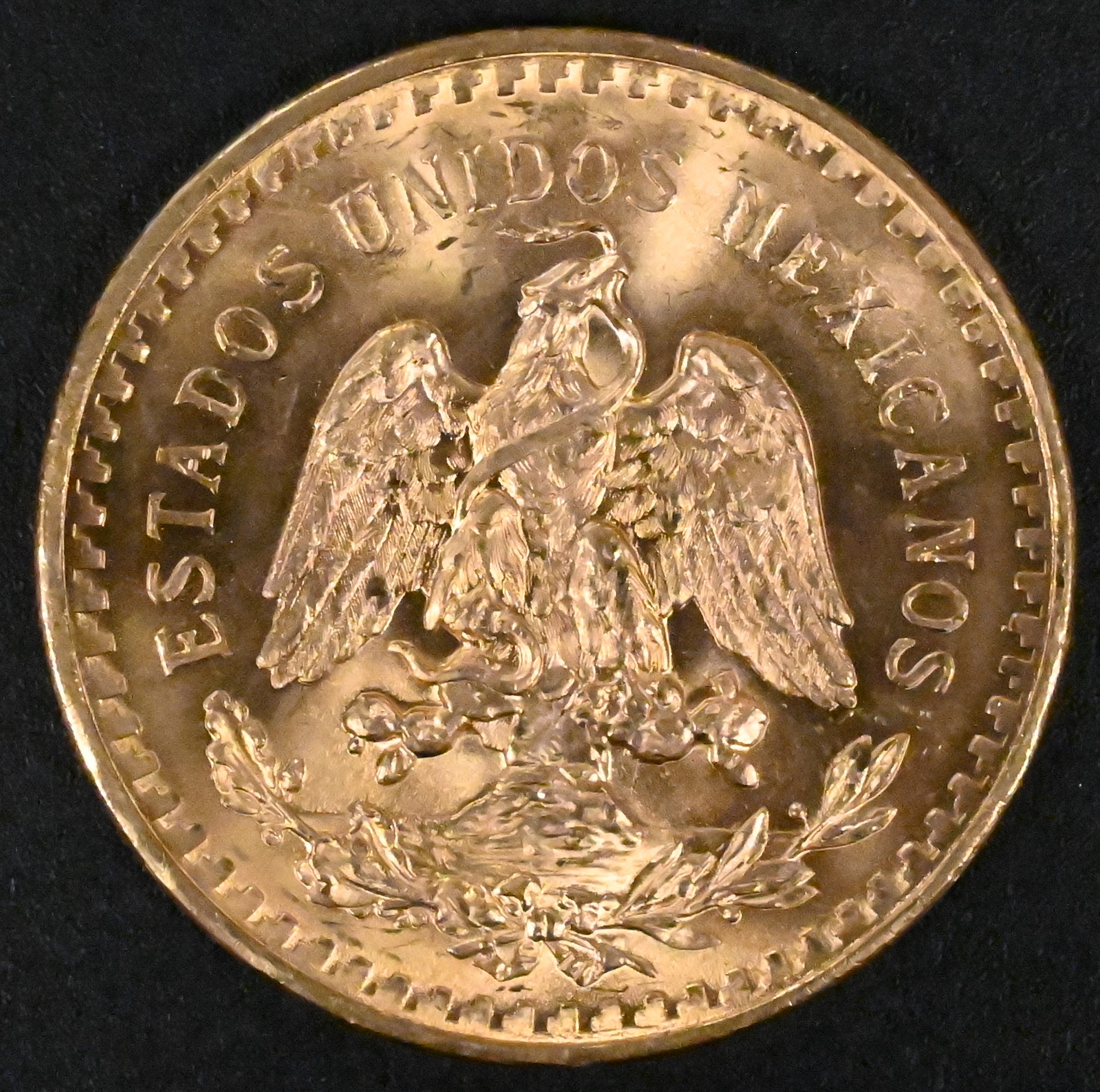 Gold 50 Peso Coin, uncirculated 1947, 1.2057 t. oz. pure gold, winning bidder can take 1 or up to 5, coins are located off site, one coin will be available for pick up on the day of sale, any additional coins will need to be picked up during the week.