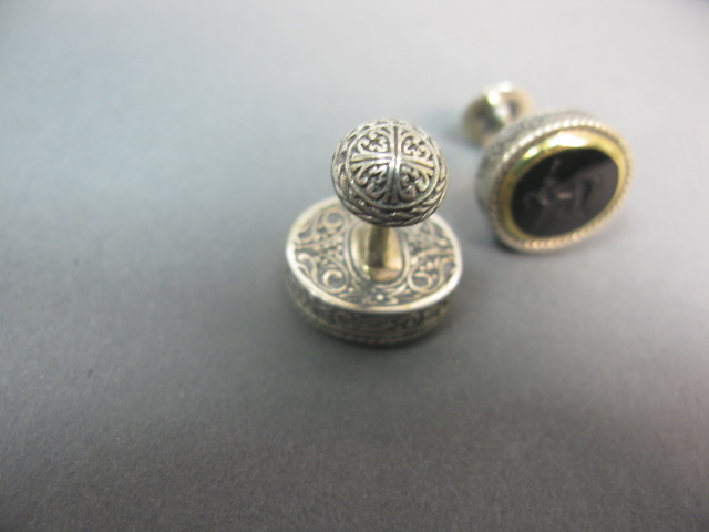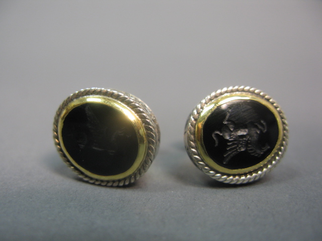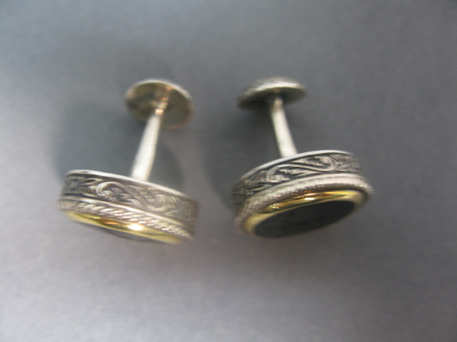 Pair of sterling and 22 K gold cufflinks, set with stones marked CONSTANTIN.
