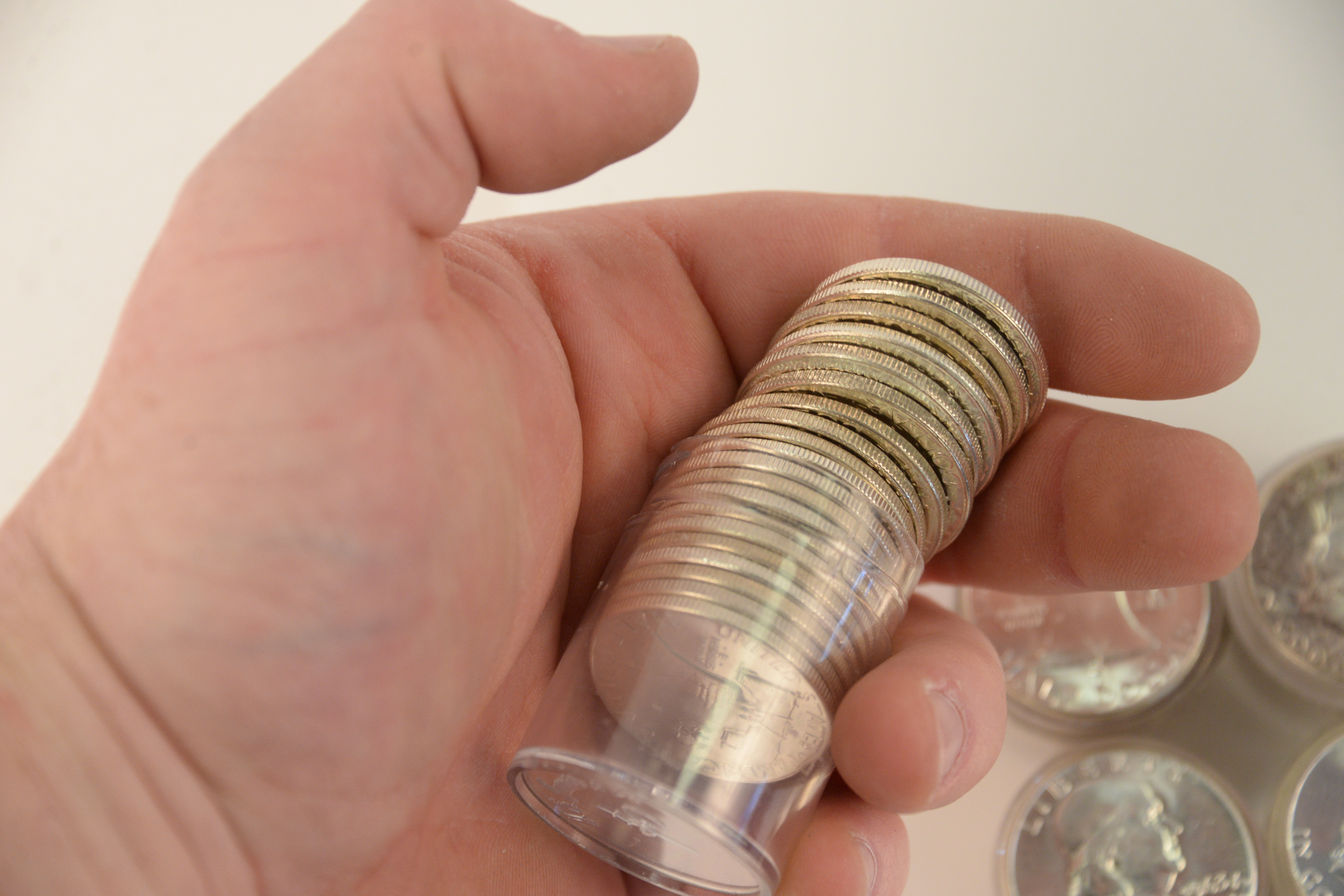 Six Rolls of Franklin Silver Half Dollars, 1963, AU.