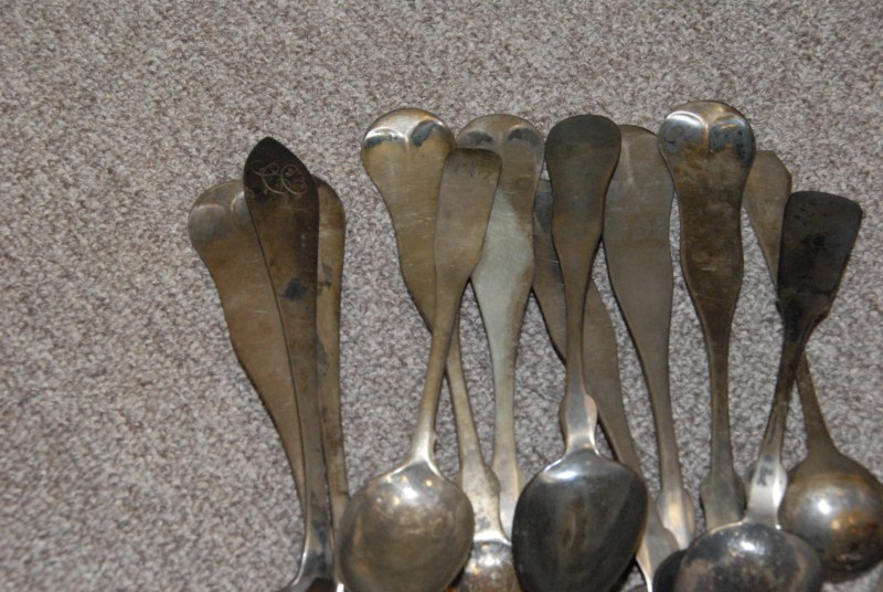 Bag lot of large coin silver spoons.