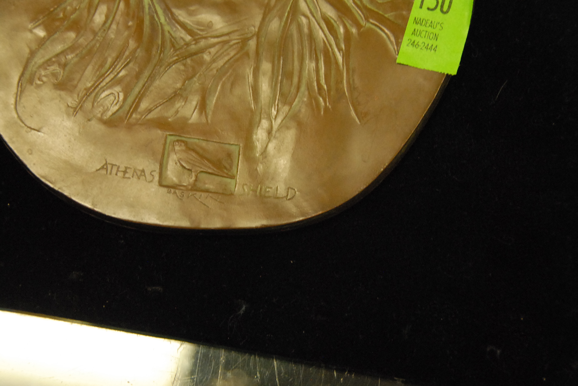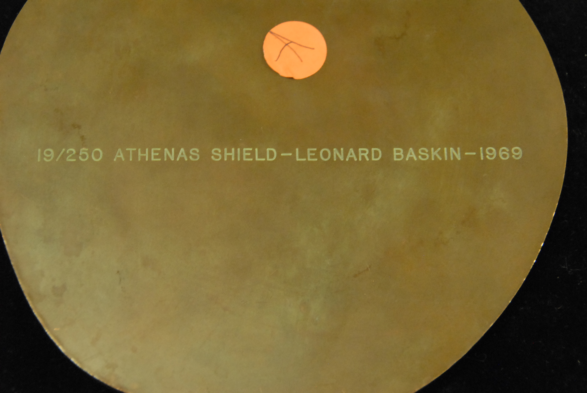 Bronze plaque Athena’s shield….Baskin Athena’s Shield bronze plaque of a woman, marked on reverse 19/250 Athena’s Shield Leonard Baskin