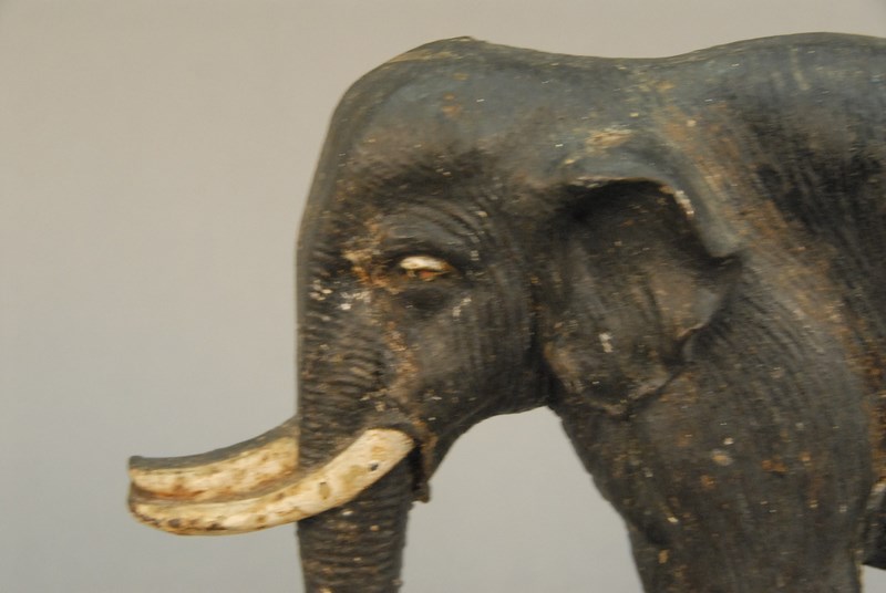 Cast iron elephant door stop signed Bradley & Hubbard. ht. 10 1/2in. lg. 11 1/2in.