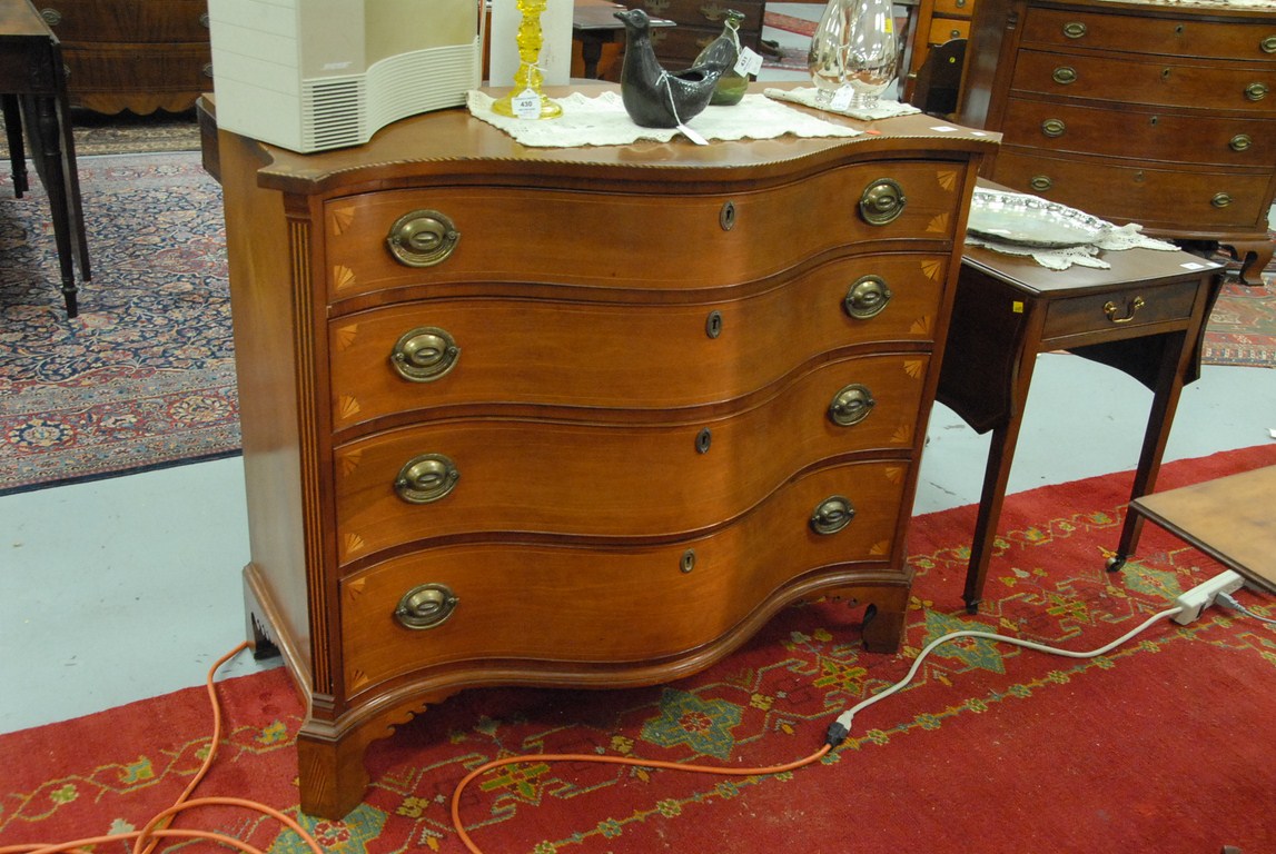 Lot 150: Cherry four drawer chest with exagerated serpentine front, probably Norwich, Connecticut circa 1800, having top with serpentine fron…