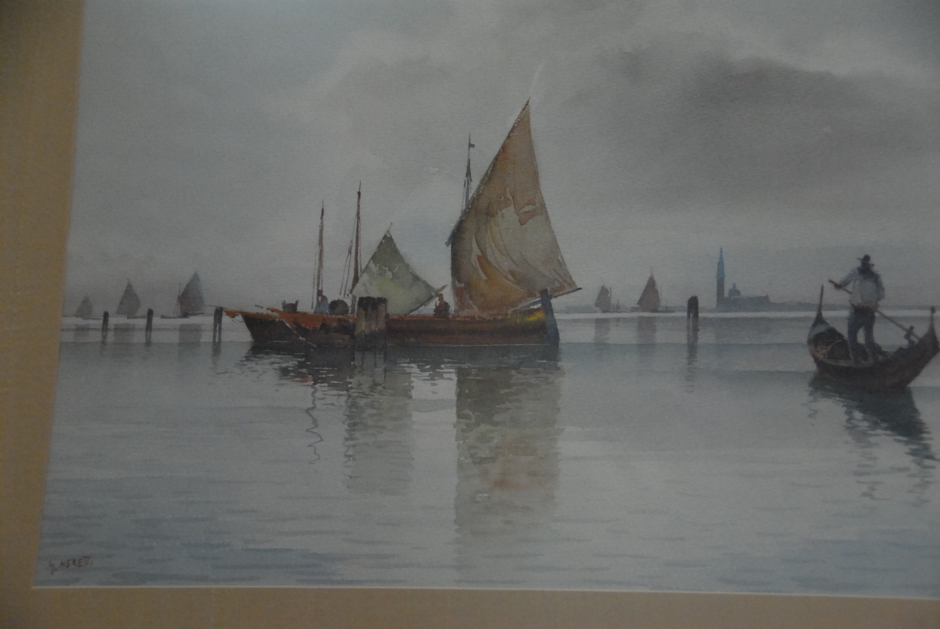 Lot 150: G. Neretti Skifts on Water watercolor signed lower left G. Neretti Marshall Field & Co. label on reverse 16 x 19
