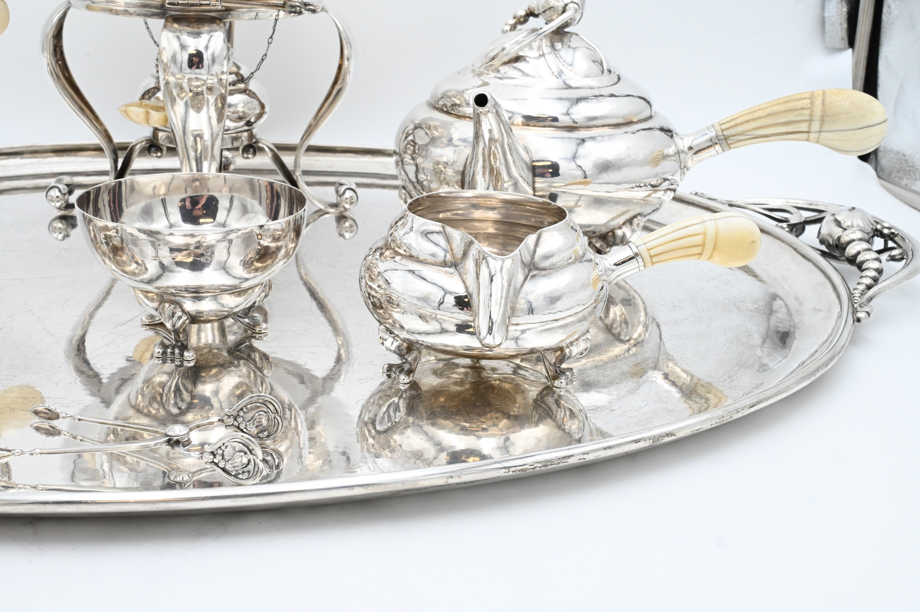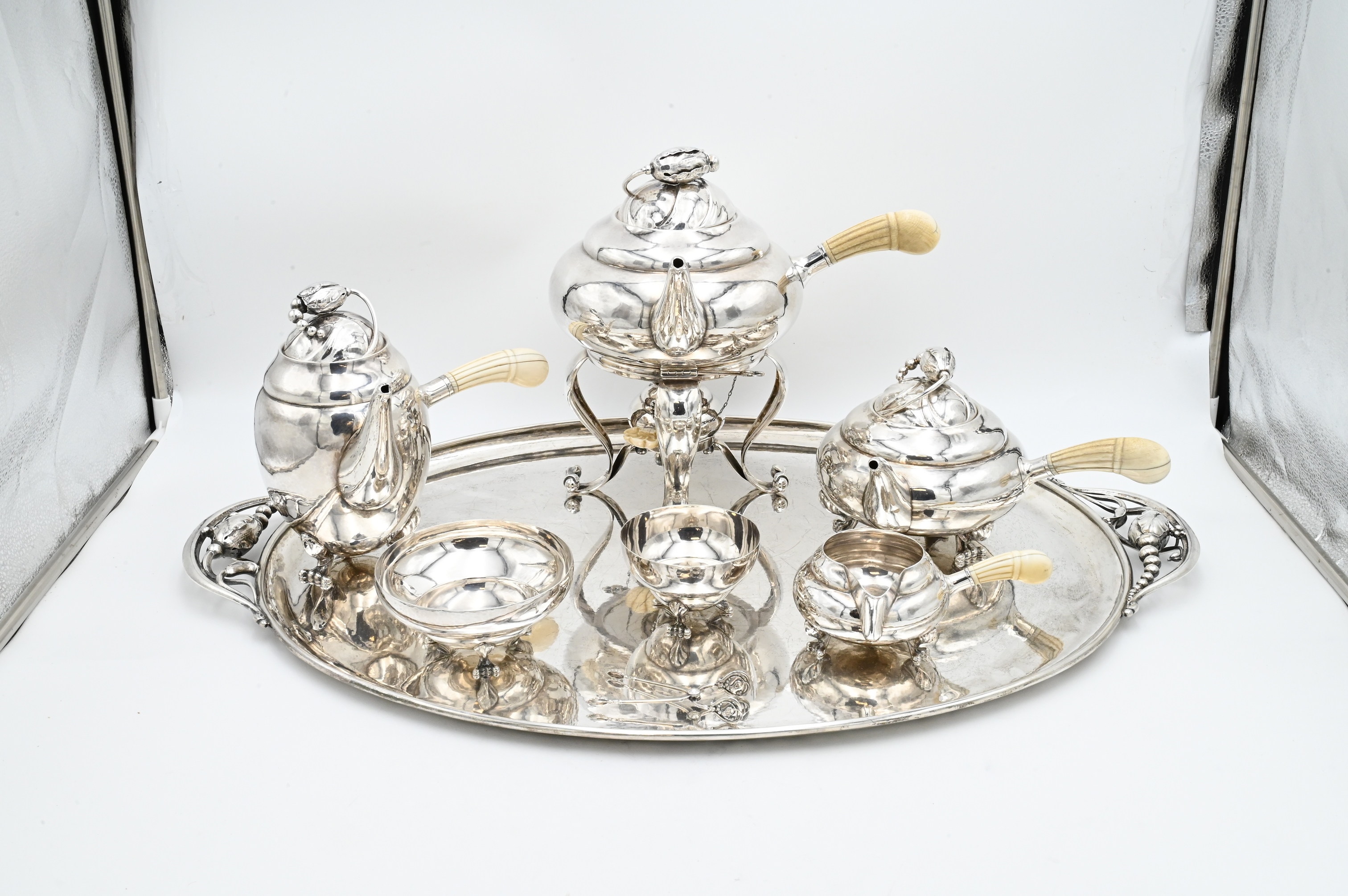Georg Jensen Nine Piece “Blossom” Sterling Silver Tea and Coffee Service