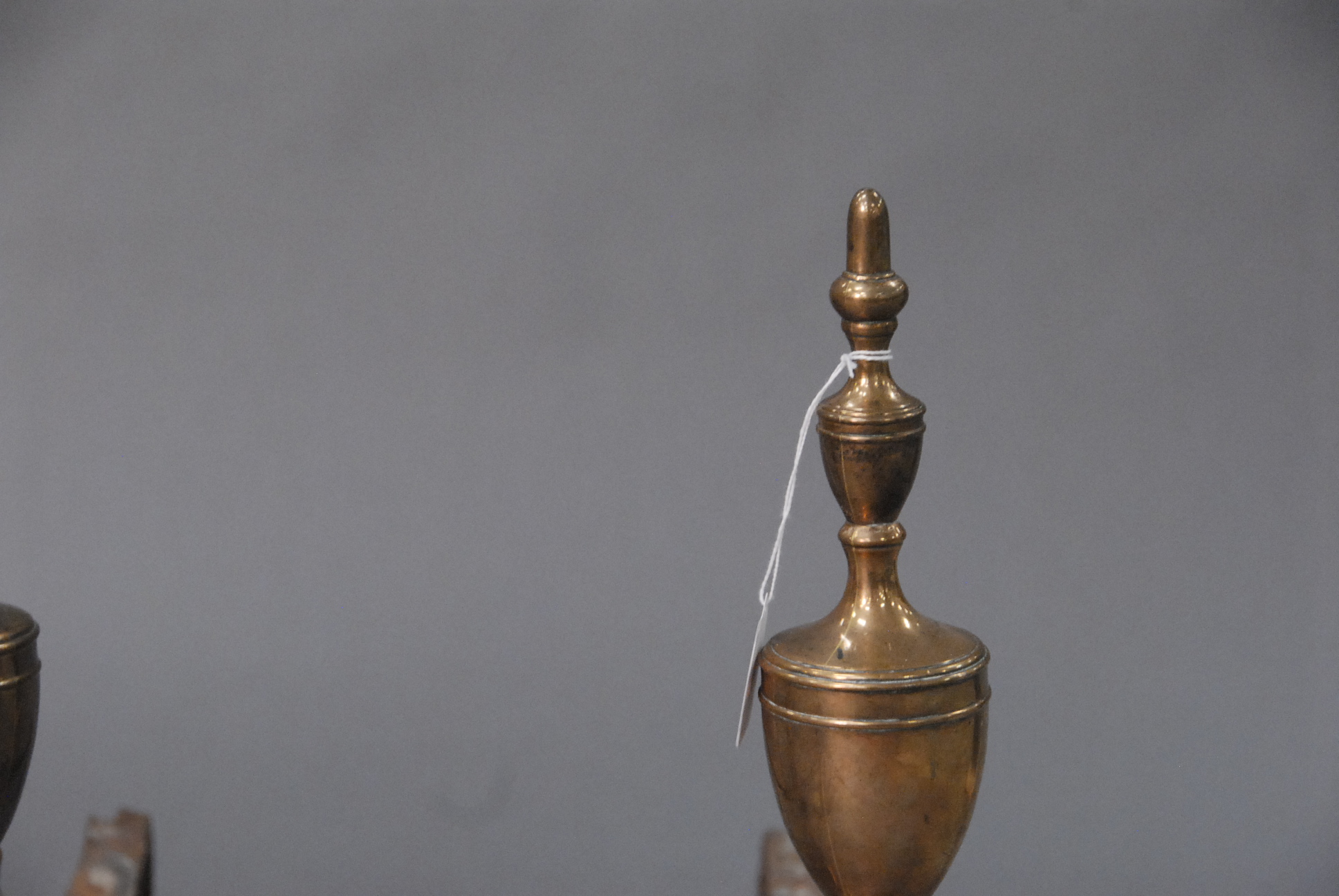 Lot 150: Pair of Federal brass andirons with urn tops and