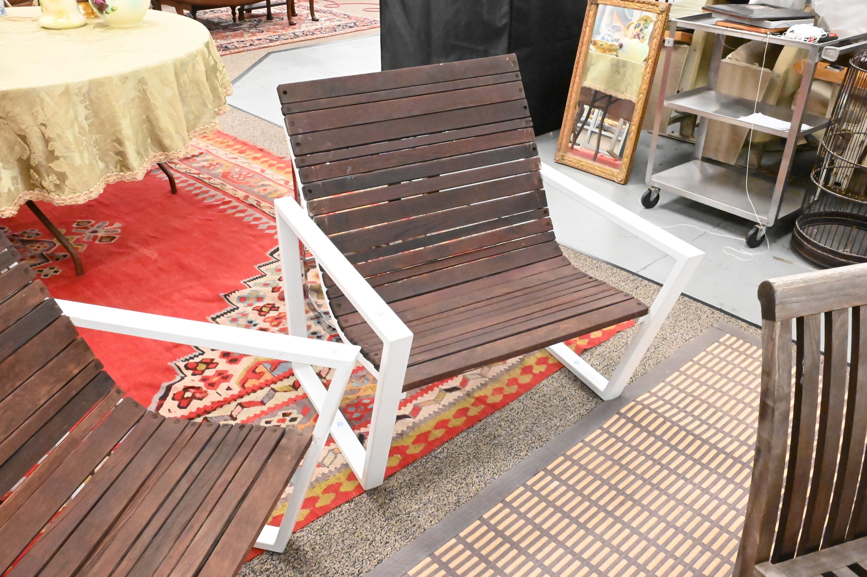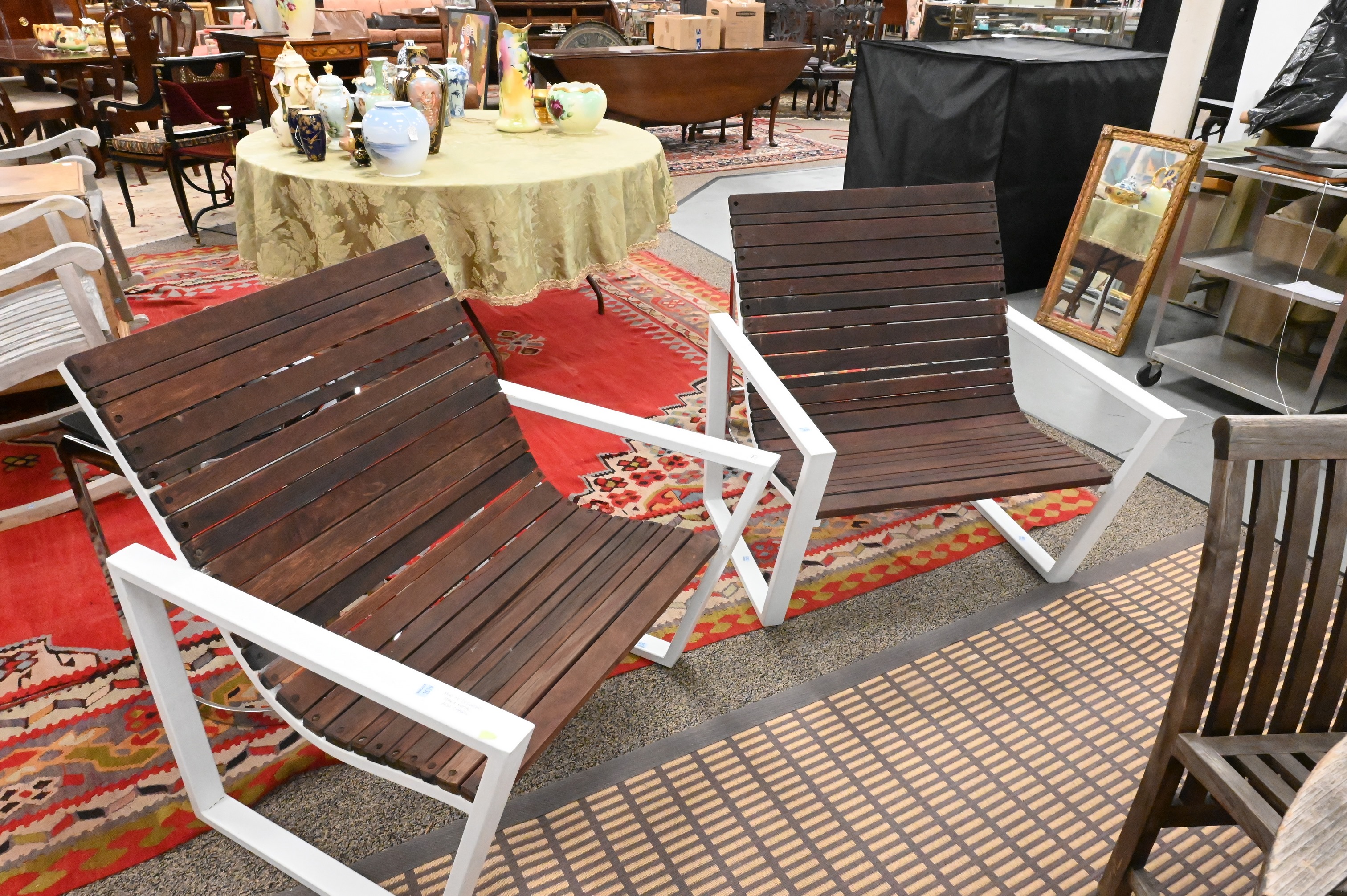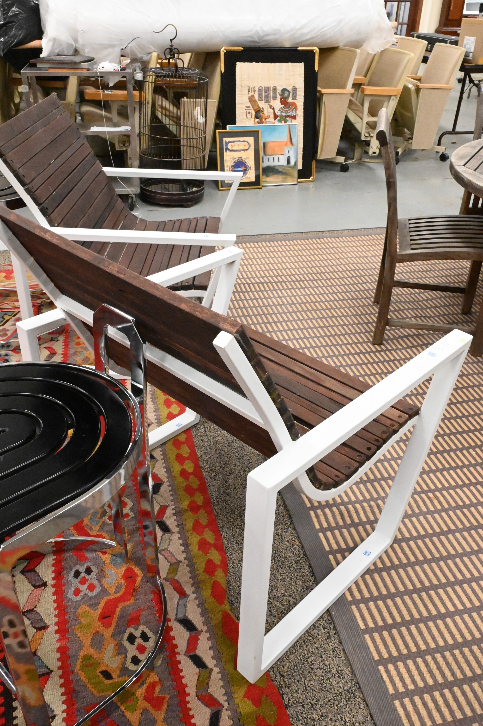 Lot 150: Pair of Outdoor Teak and Metal Designer Armchairs