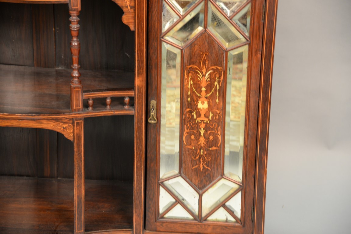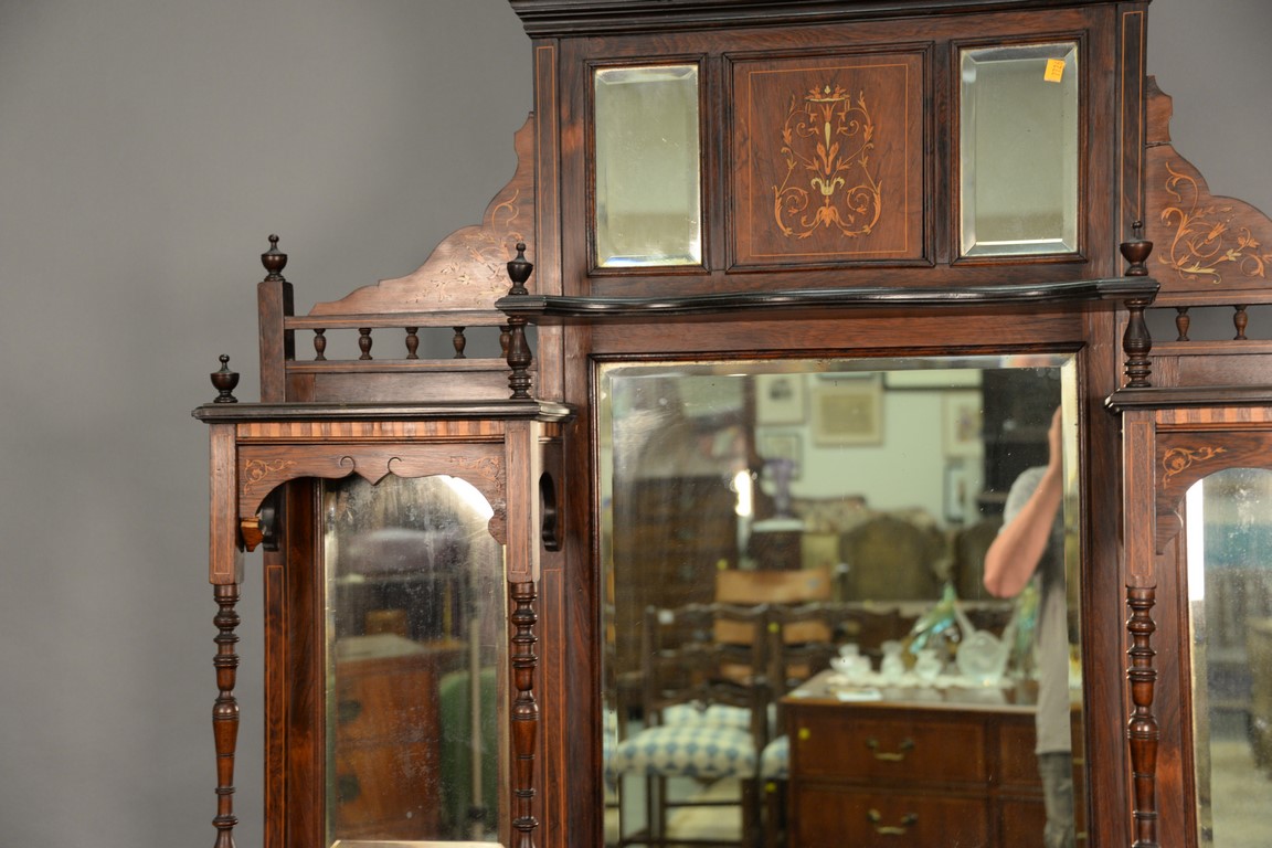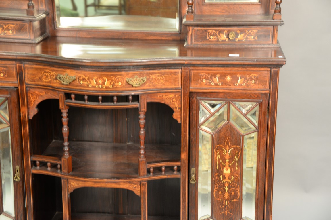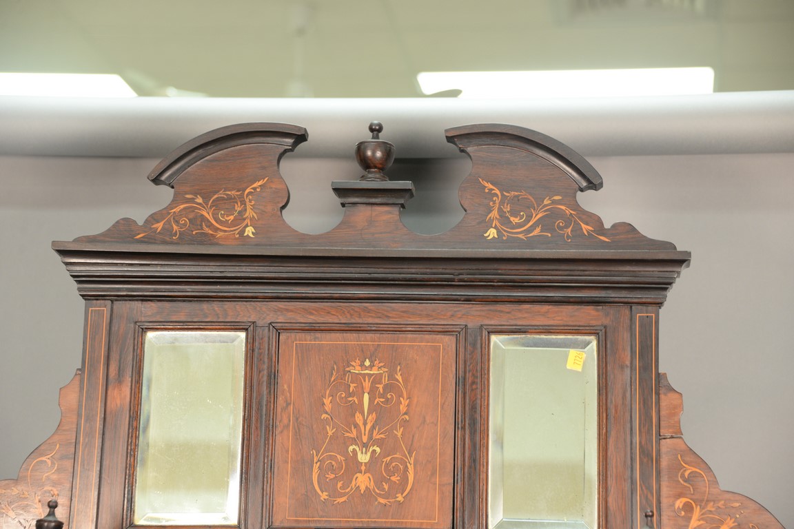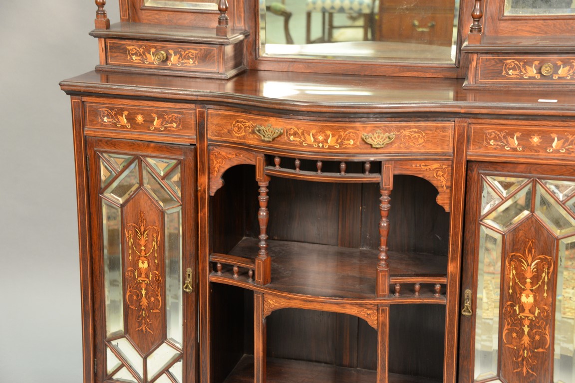 Rosewood inlaid etagere in two parts, circa 1880. ht. 92 in. wd. 54 in. dp. 18 in.