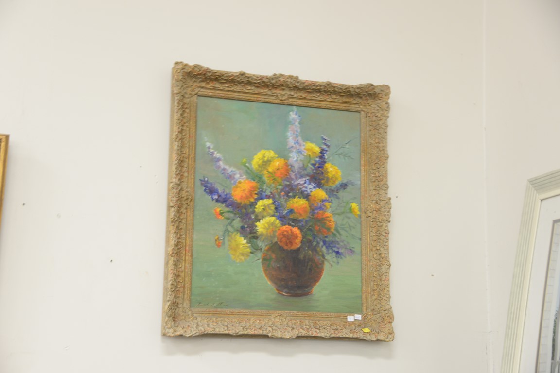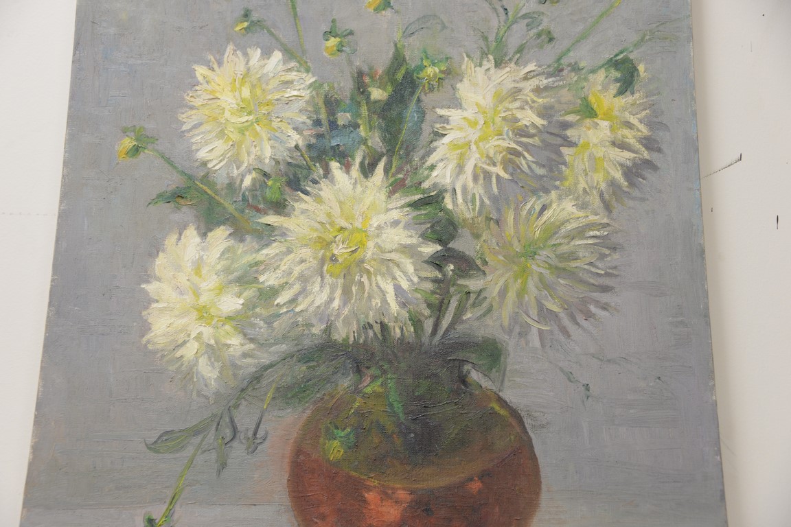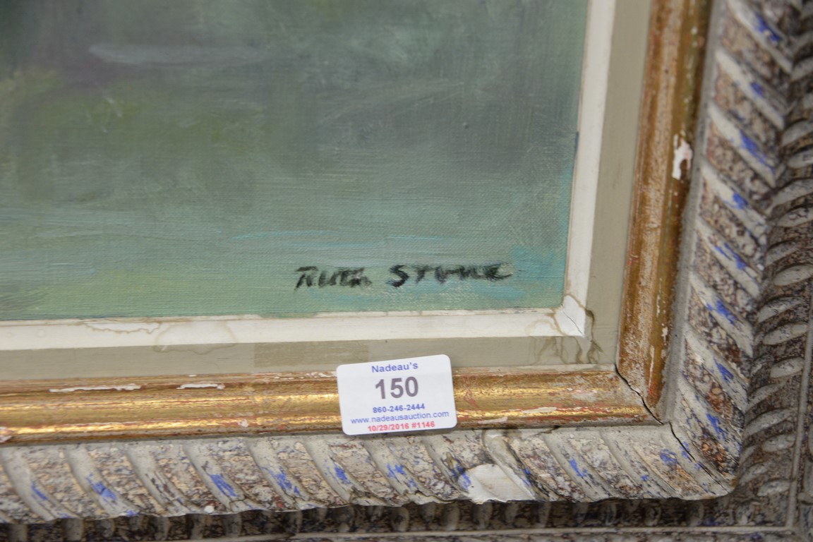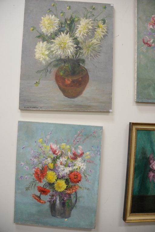 Seven oil on canvas paintings of flowers all signed Ruth Stone. 23 1/2 x 19 to 28 x 22