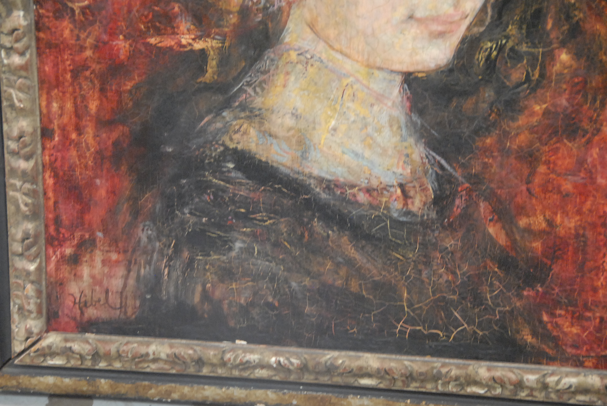 Lot 150A: Edna Hibel 1917 bust of a woman oil on board signed lower left Hibel, 28 1/2 x 23.