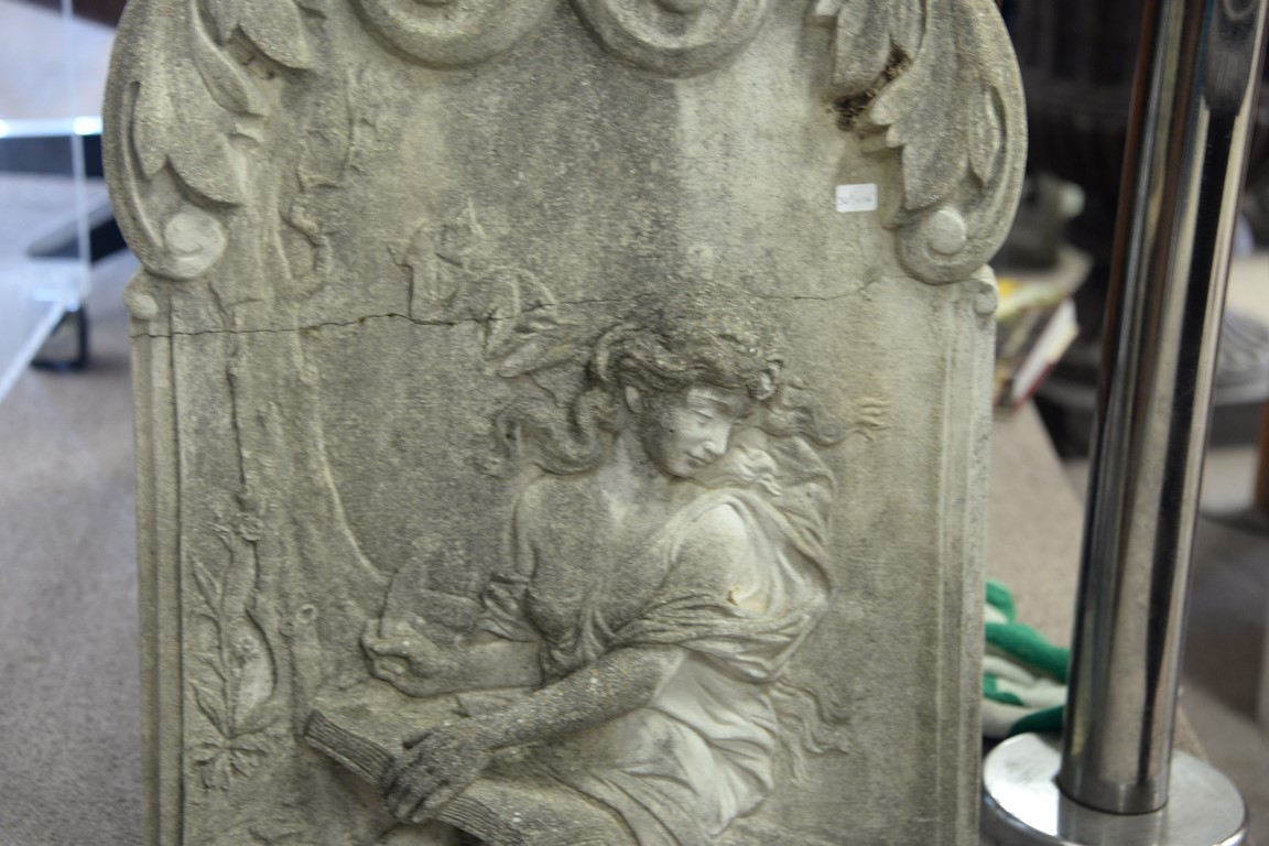 Lot 151: Cement wall hanging with three dimensional woman and child, 19th century slight crack not through. ht. 36in., wd. 16in.