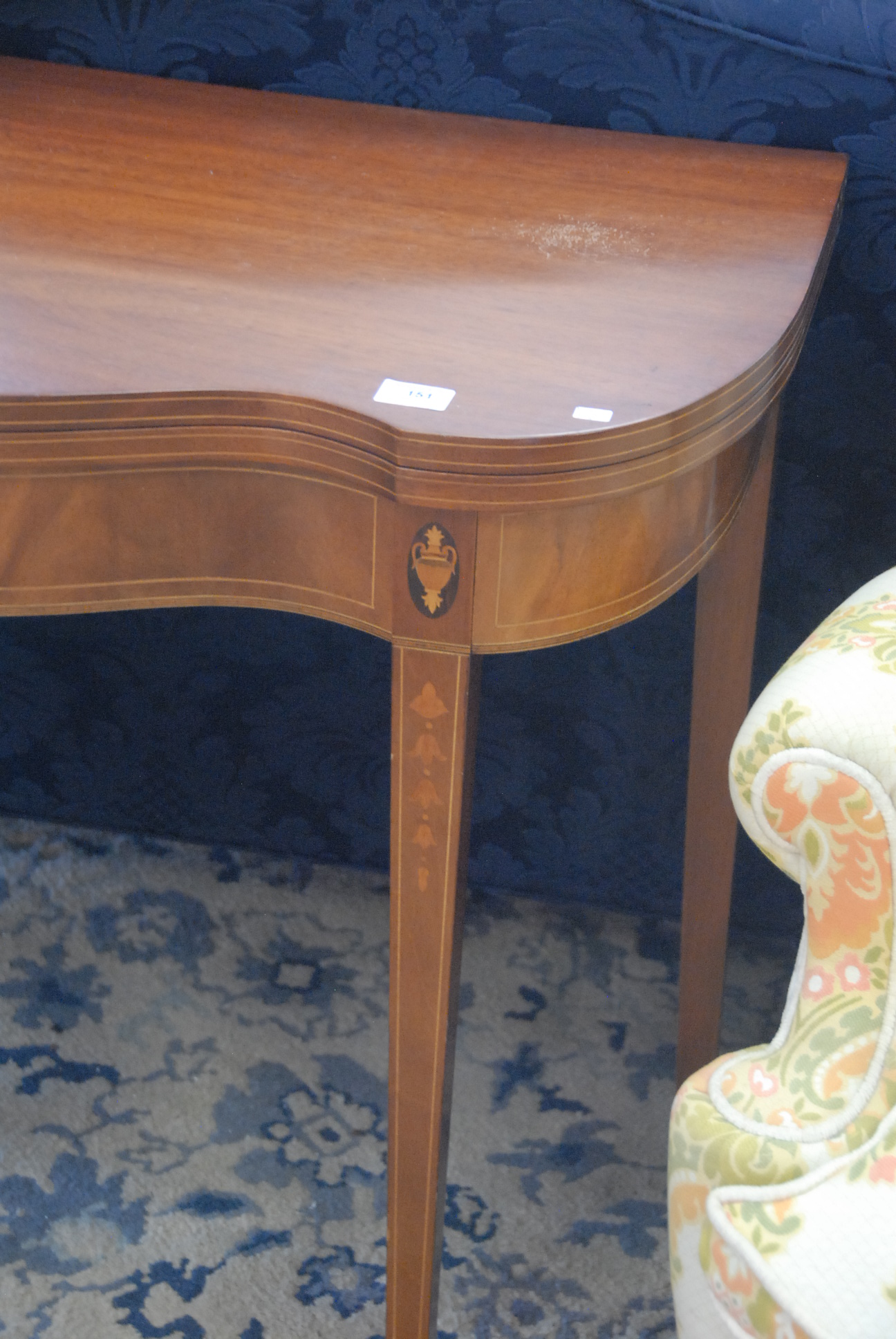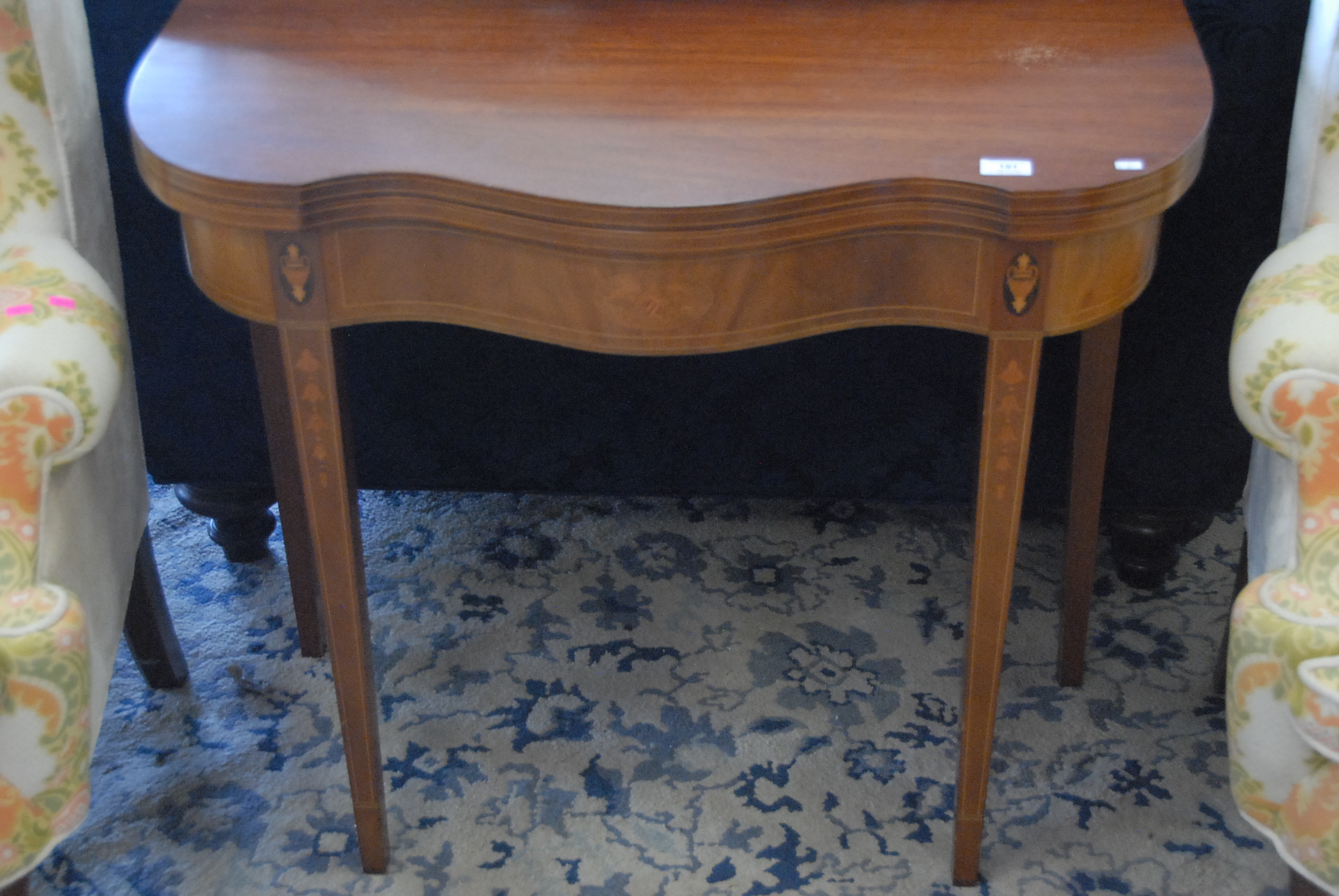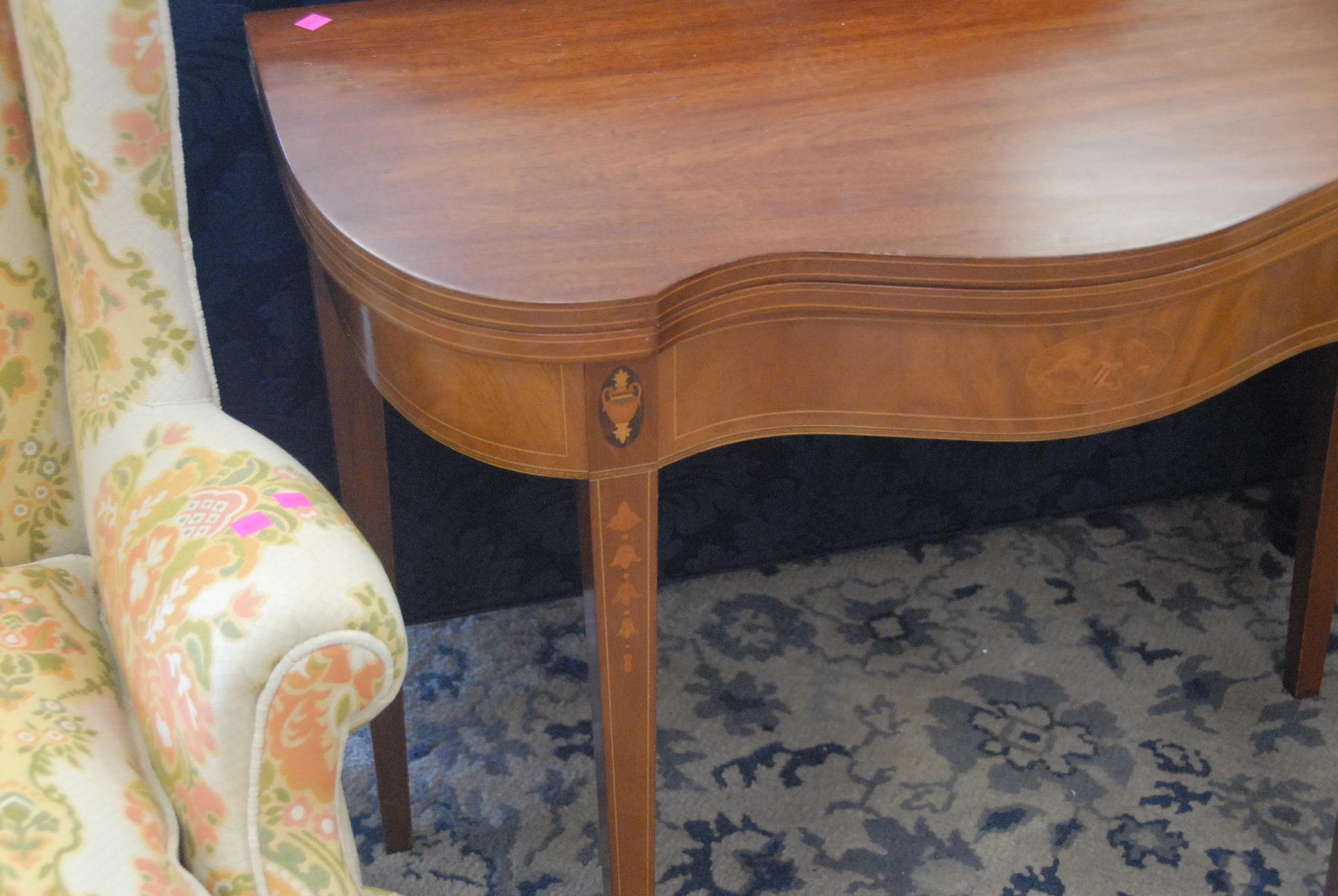 Custom mahogany Federal style game table with urn, eagle, and floral inlays.ht. 30 in. wd. 36 in.