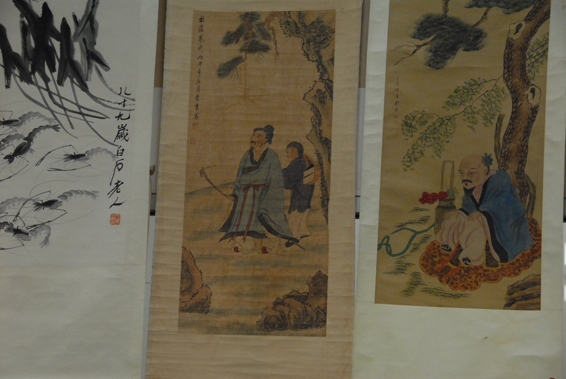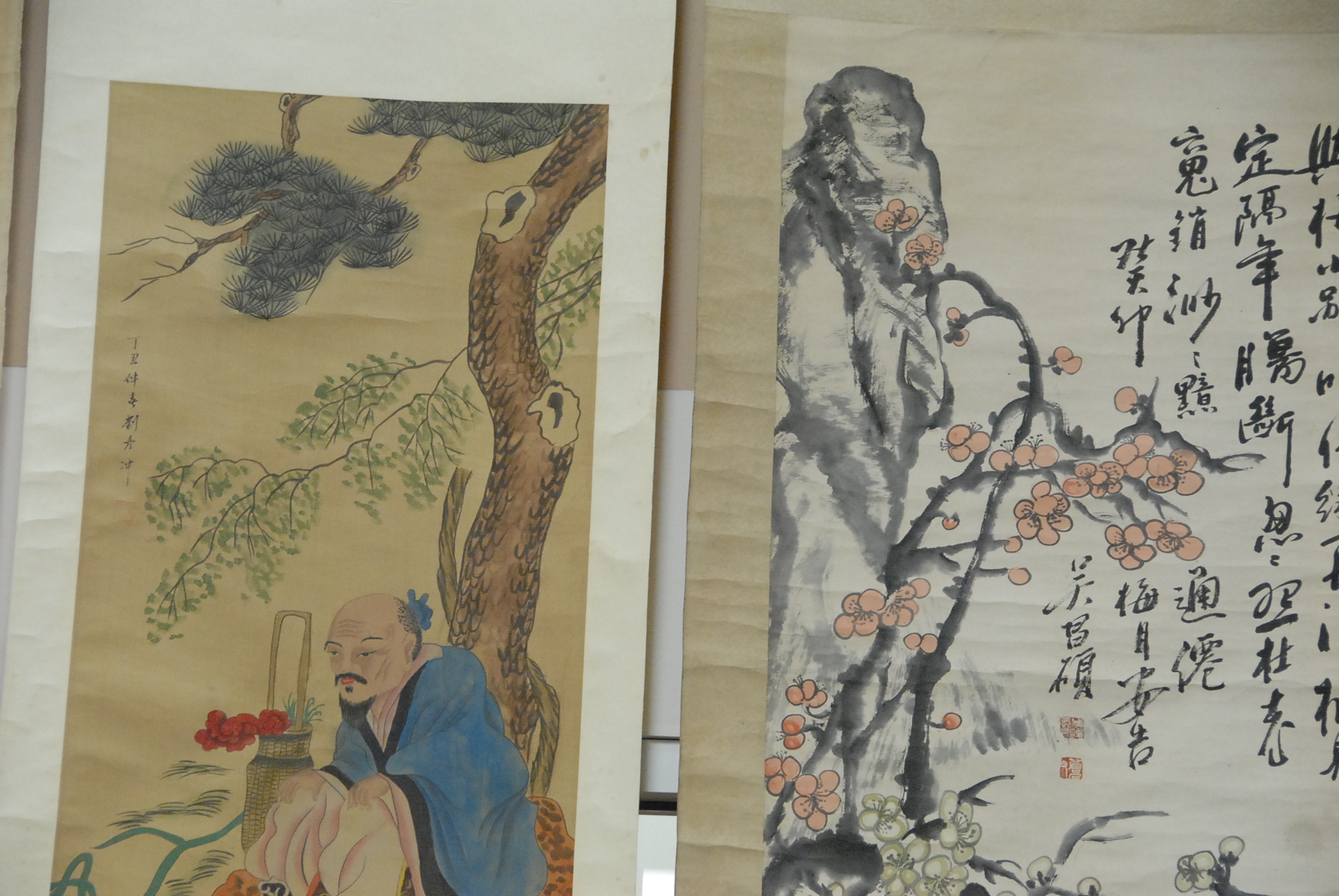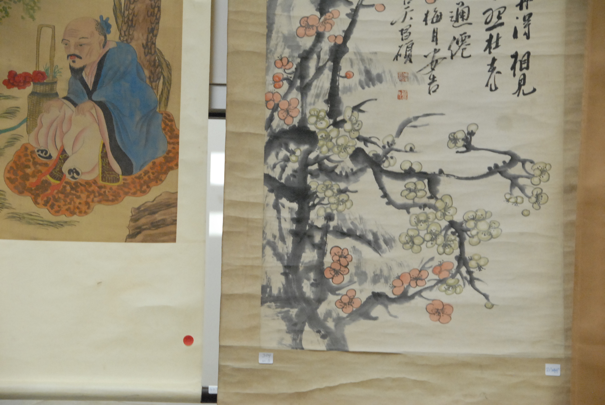 Five Chinese scroll paintings.