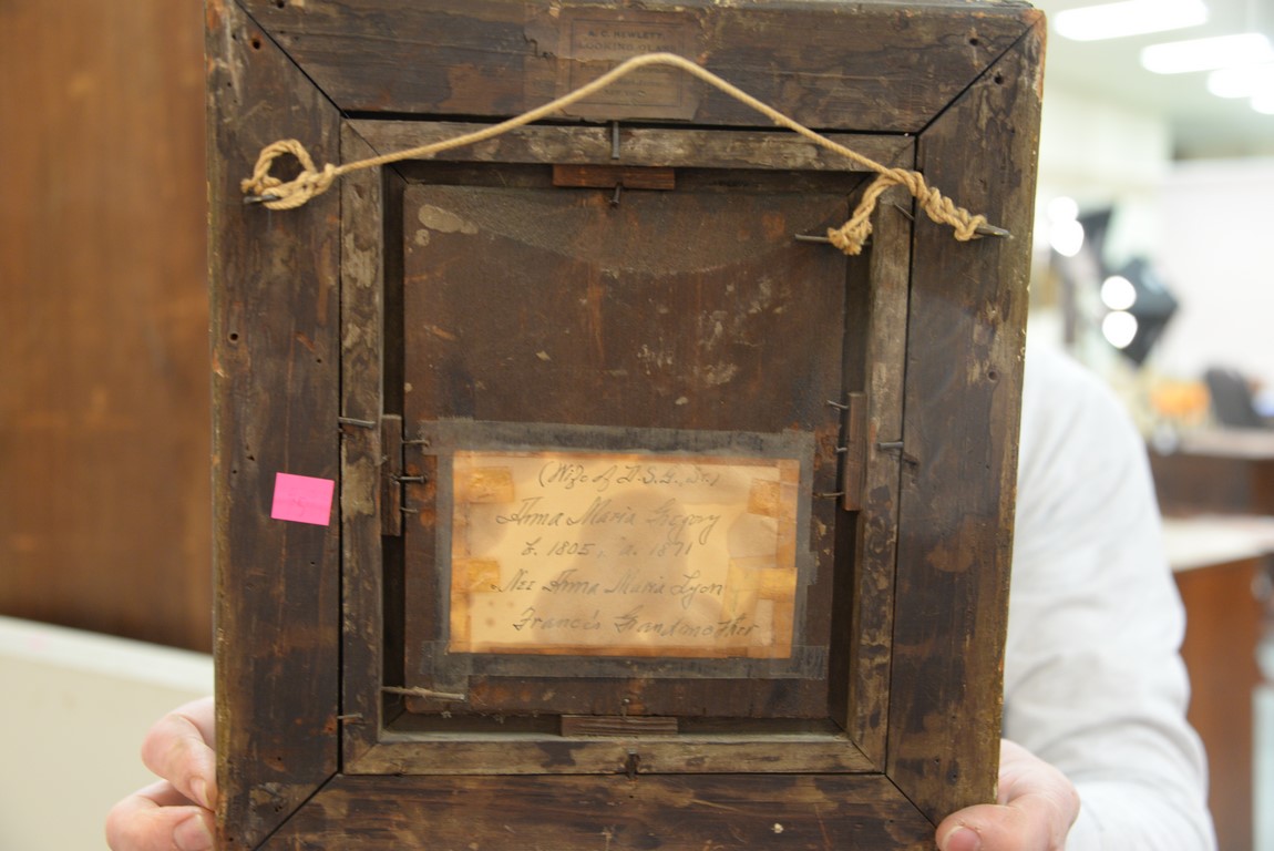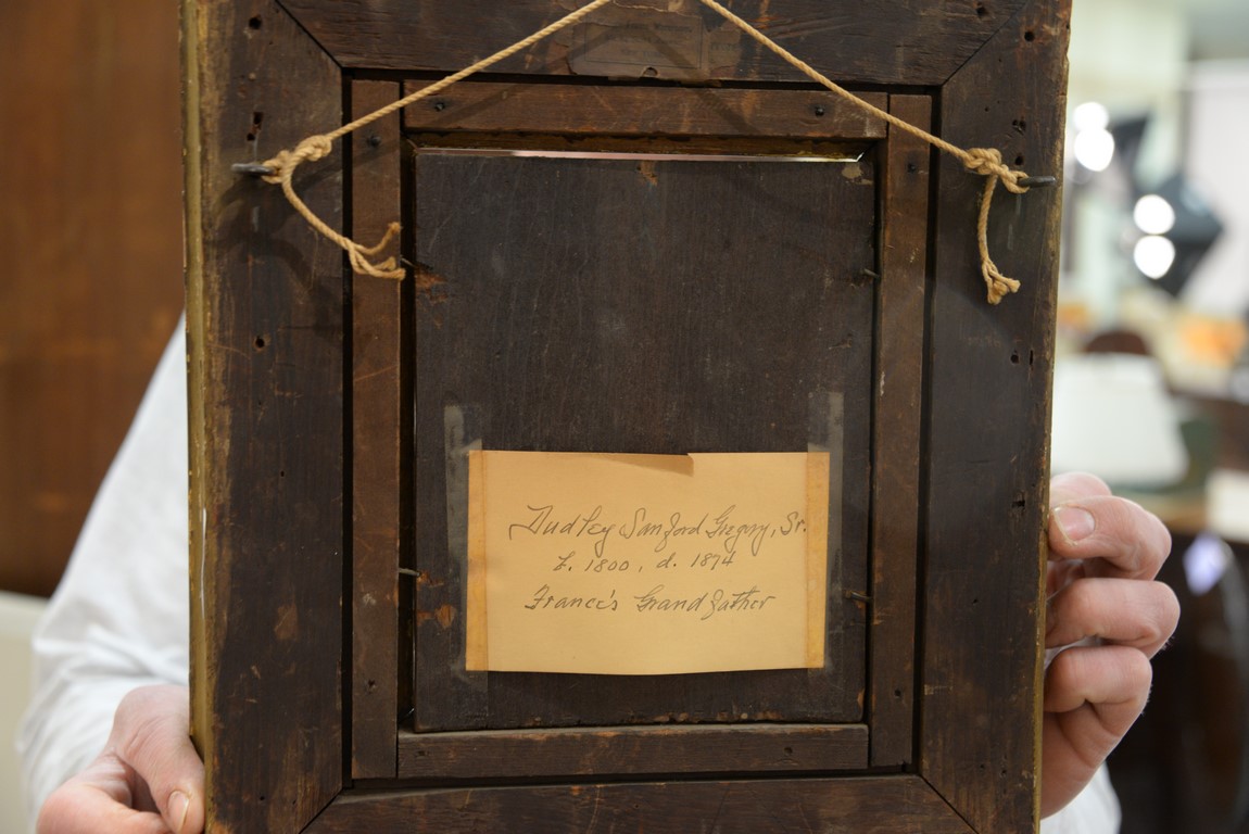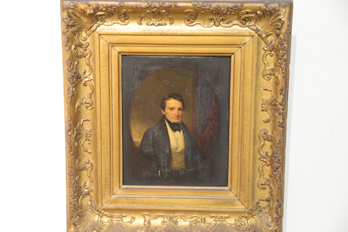 GEORGE LINEN 1802-1888 Pair of small oval portraits Dudley Sanford Gregory 1800-1874 and his Wife Ann Maria Gregory 1805-1871 oil on panel 7 1/2 x 6 1/4 This pair of paintings is related with Edward Lamson Henry painting. Provenance: Mrs. Ernest Franklin Tyler France Gregory to current Consigner Reference: Photographic copy is in Frick Art Reference Library, N.Y. Image Id# 50814 & 50815