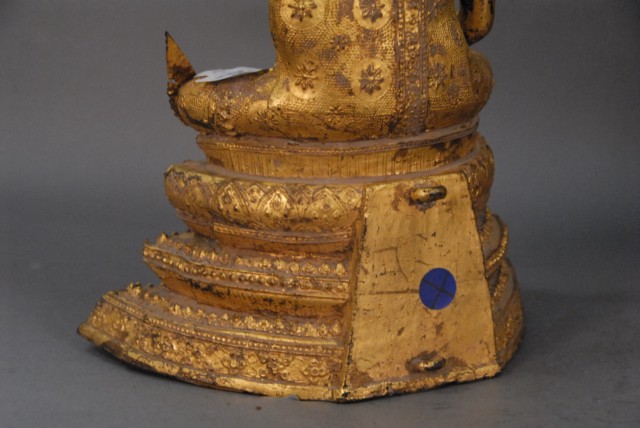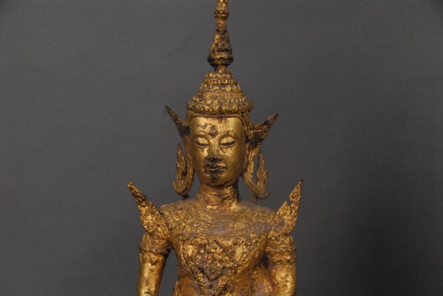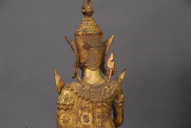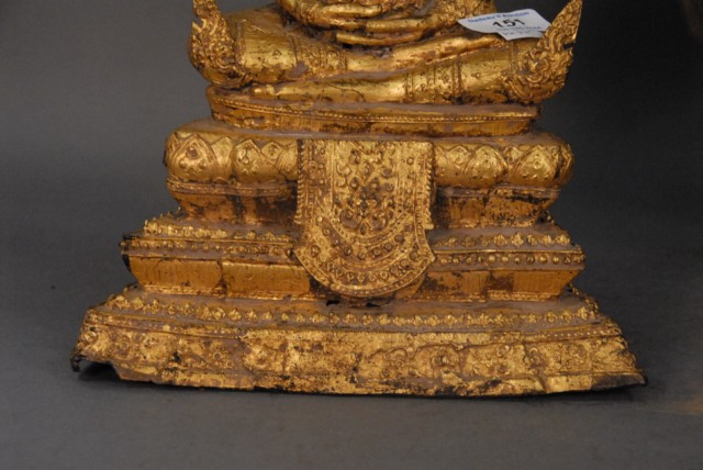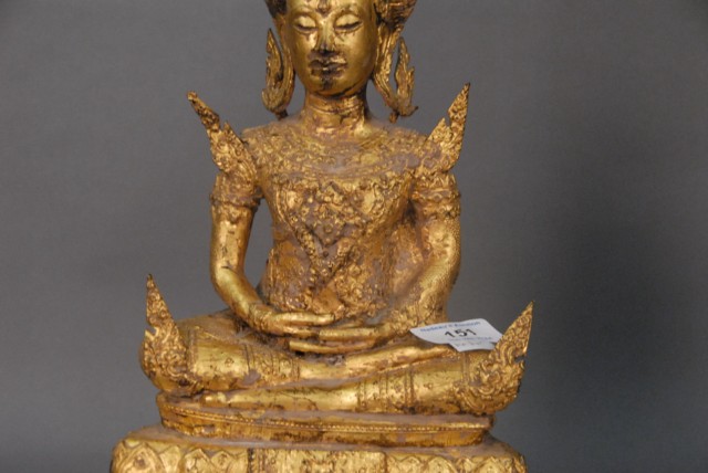 Lot 151: Gilt bronze figure of a seated Deity figure.