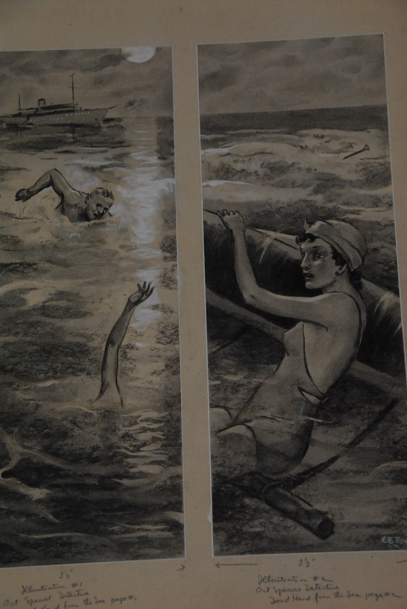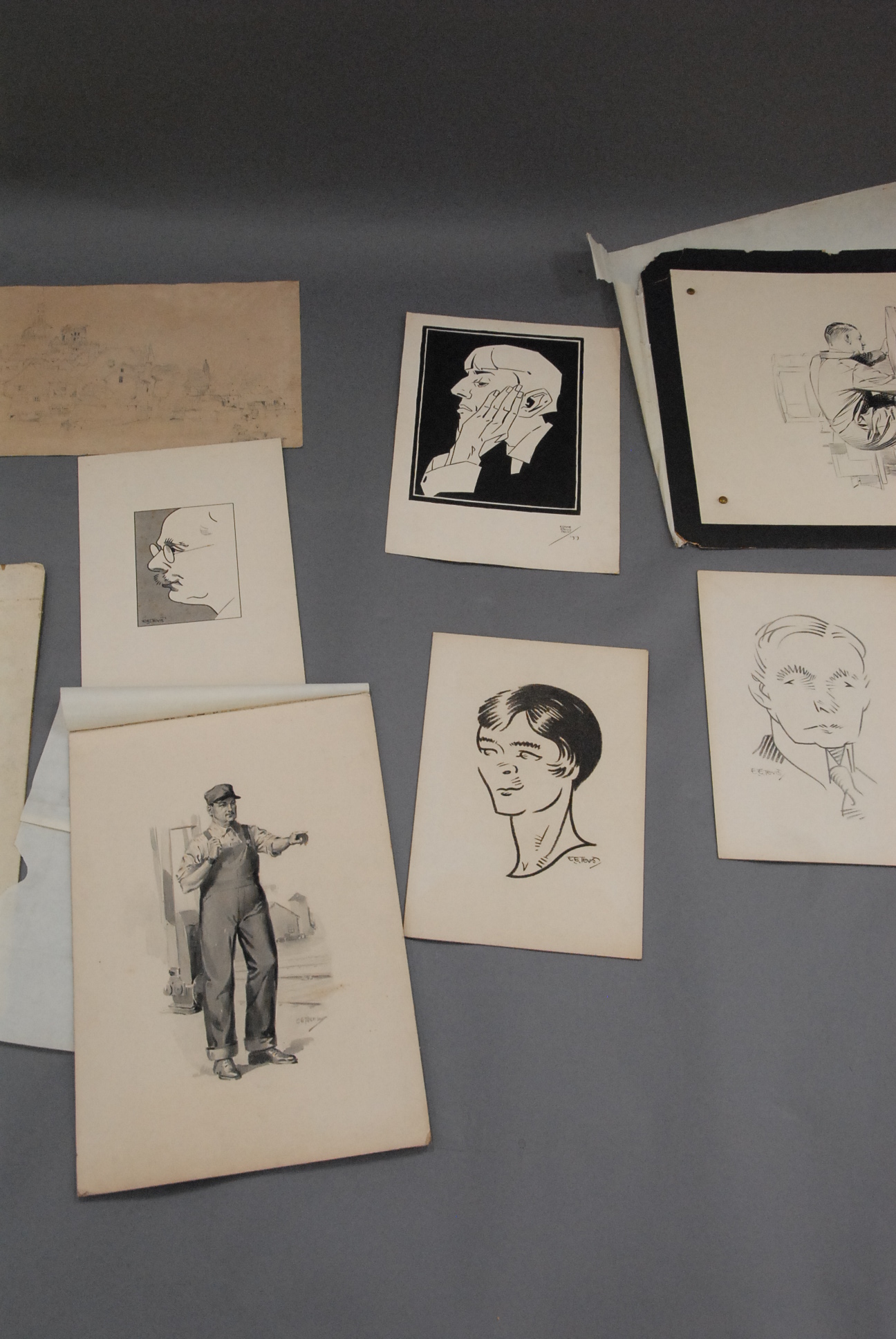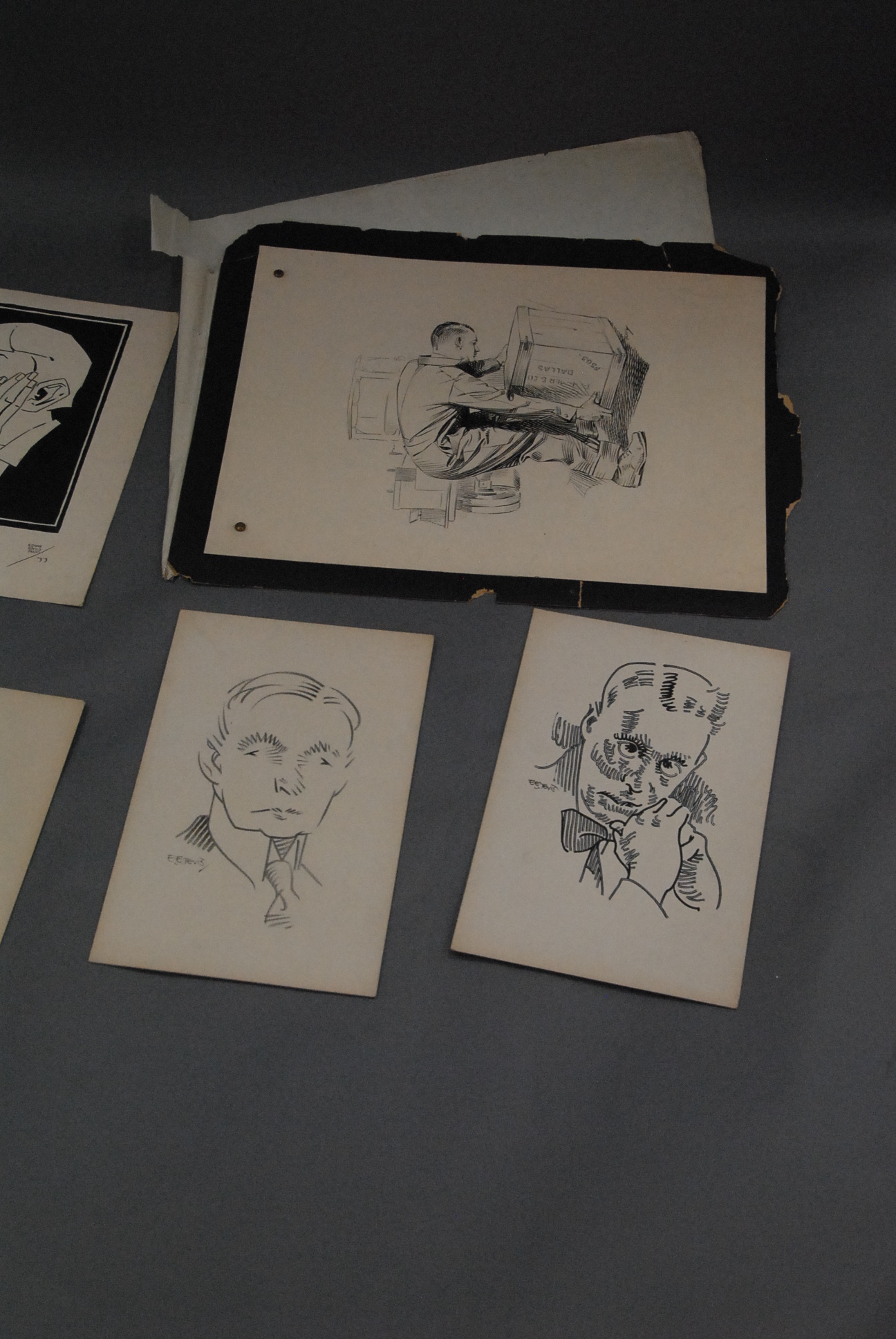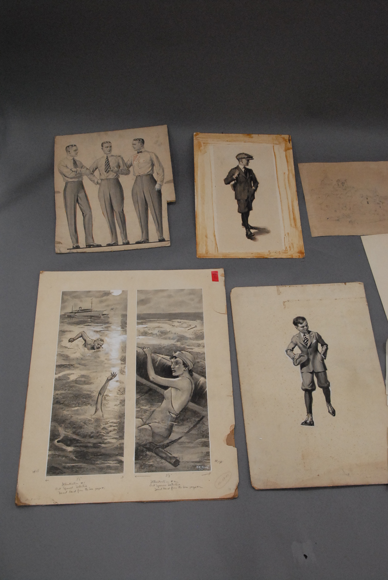 Illustrated art, twelve piece lot of mostly pencil sketches by Edward Tevis, several are signed
