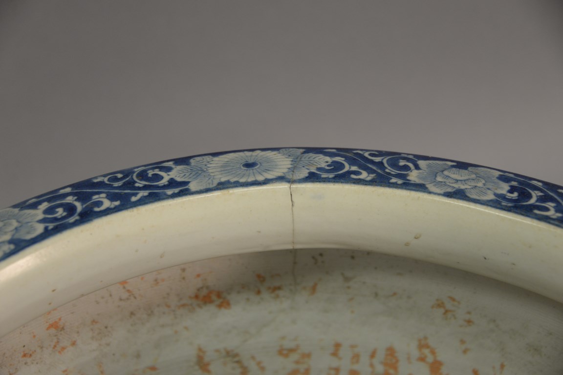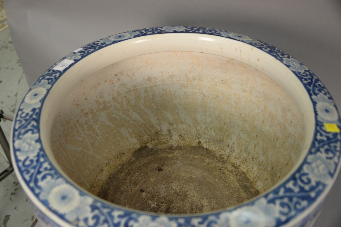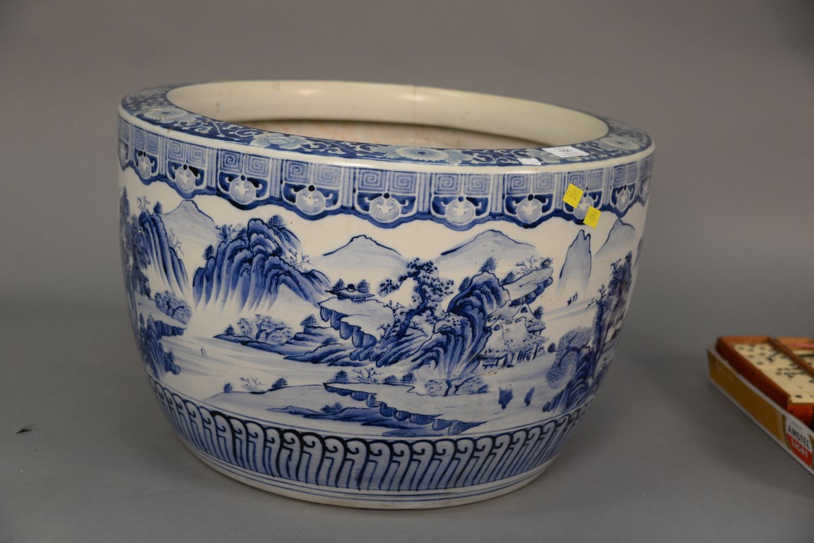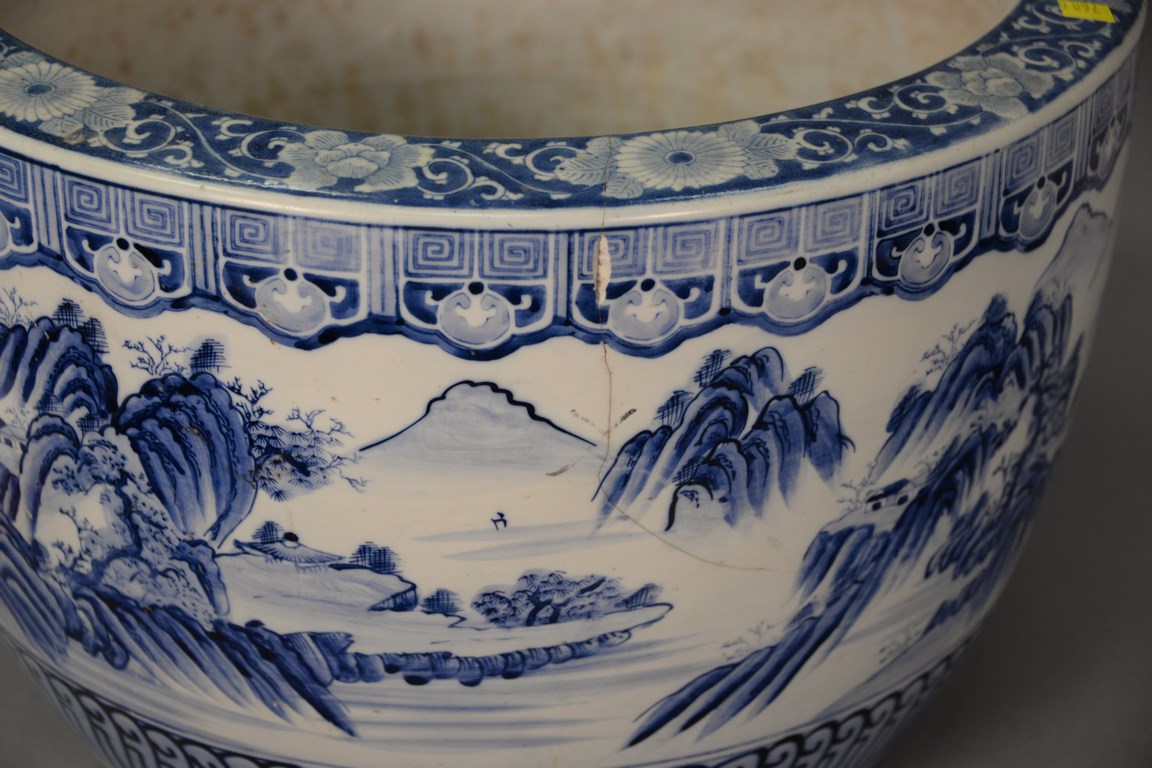 Large blue and white Oriental planter as is, ht. 14 in. dia. 21 in.