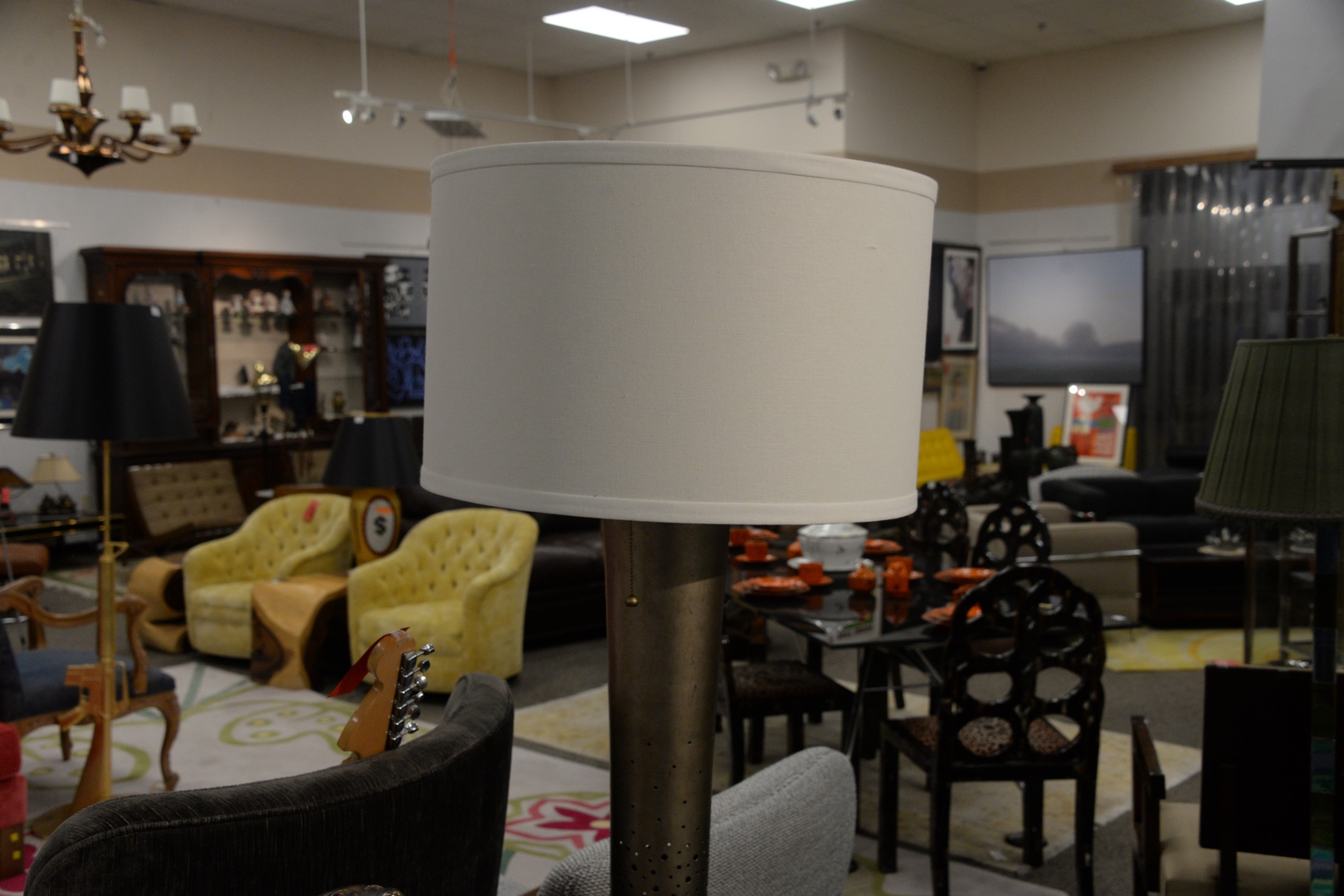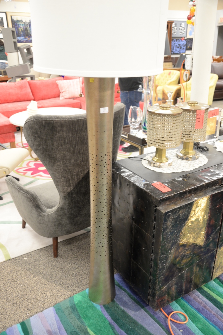 Lot 151: Pair of Contemporary Floor Lamps, having light-up shaft, height 69 inches, each retails for $1,145.