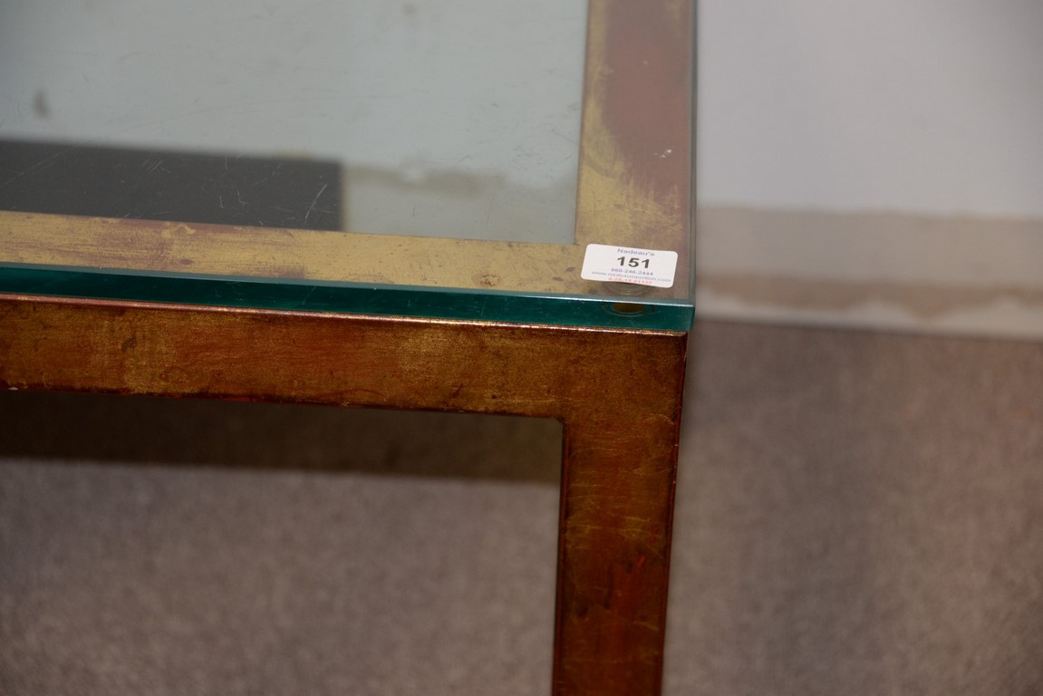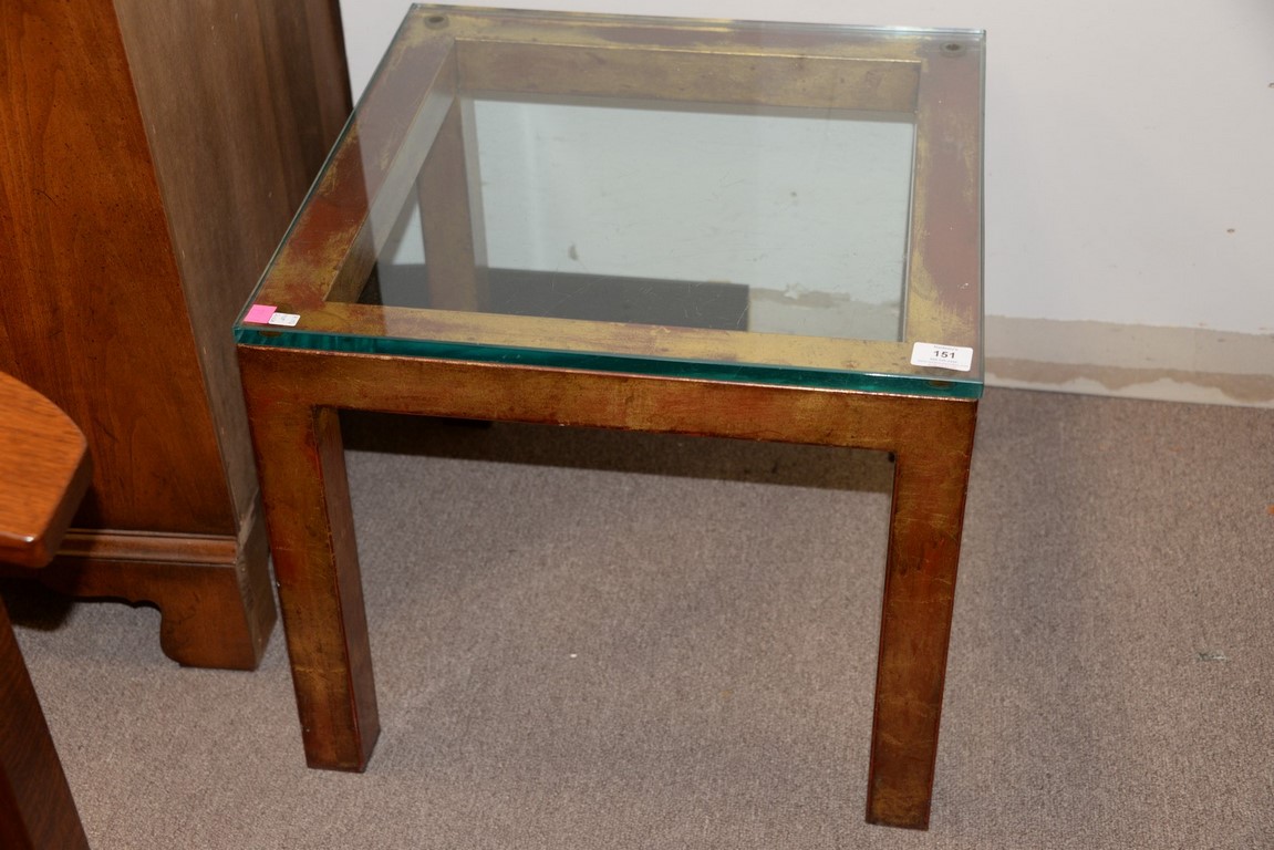 Parsons styled glass top end table. ht. 17 1/2 in. top: 20 x 20