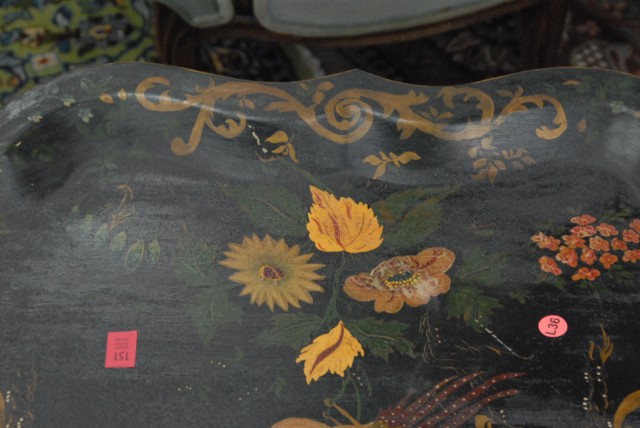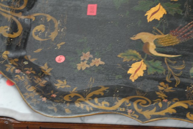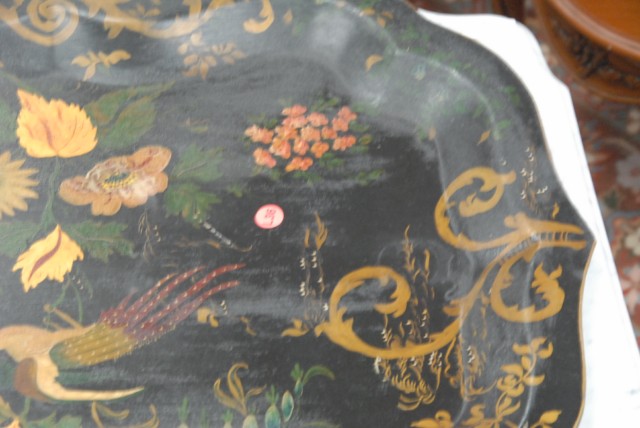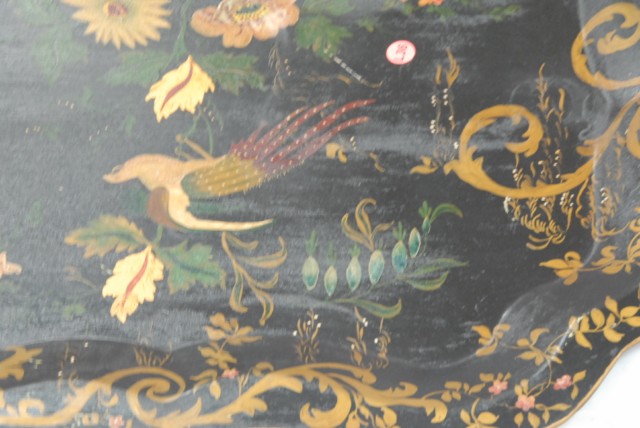 Primitive tole tray with painted bird and flowers.