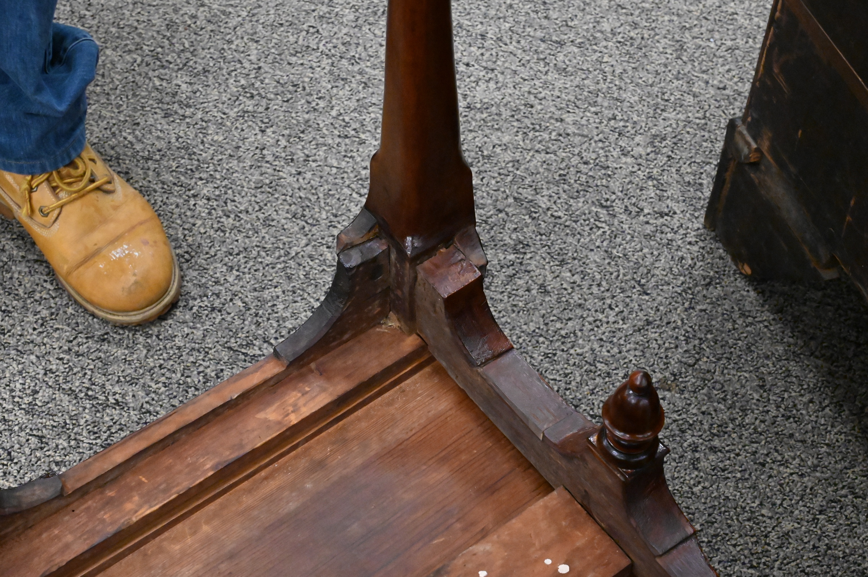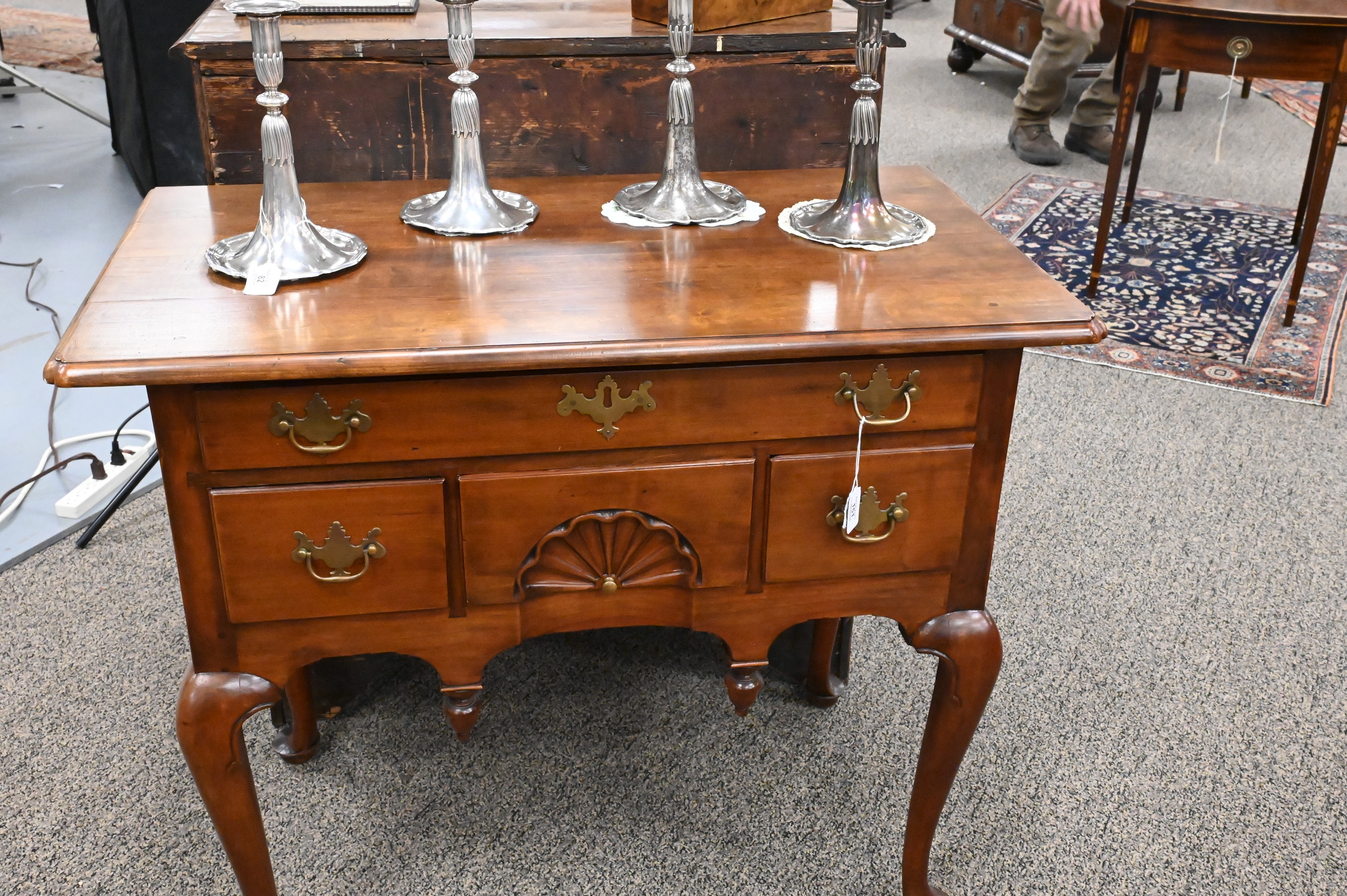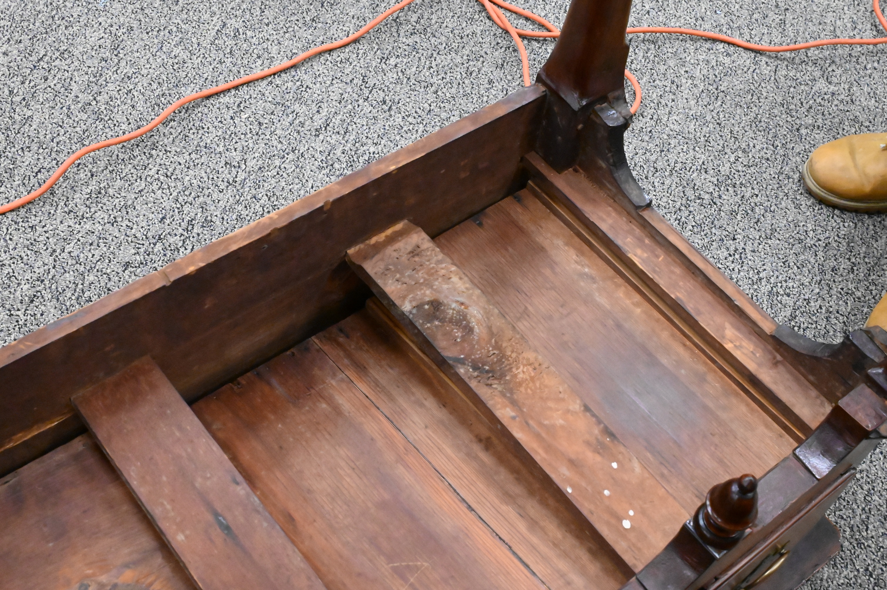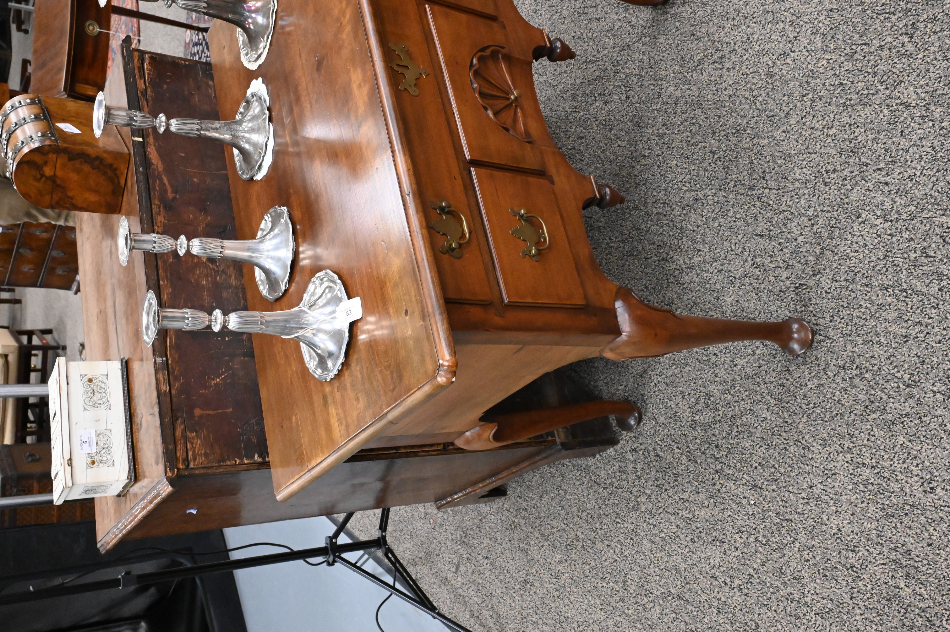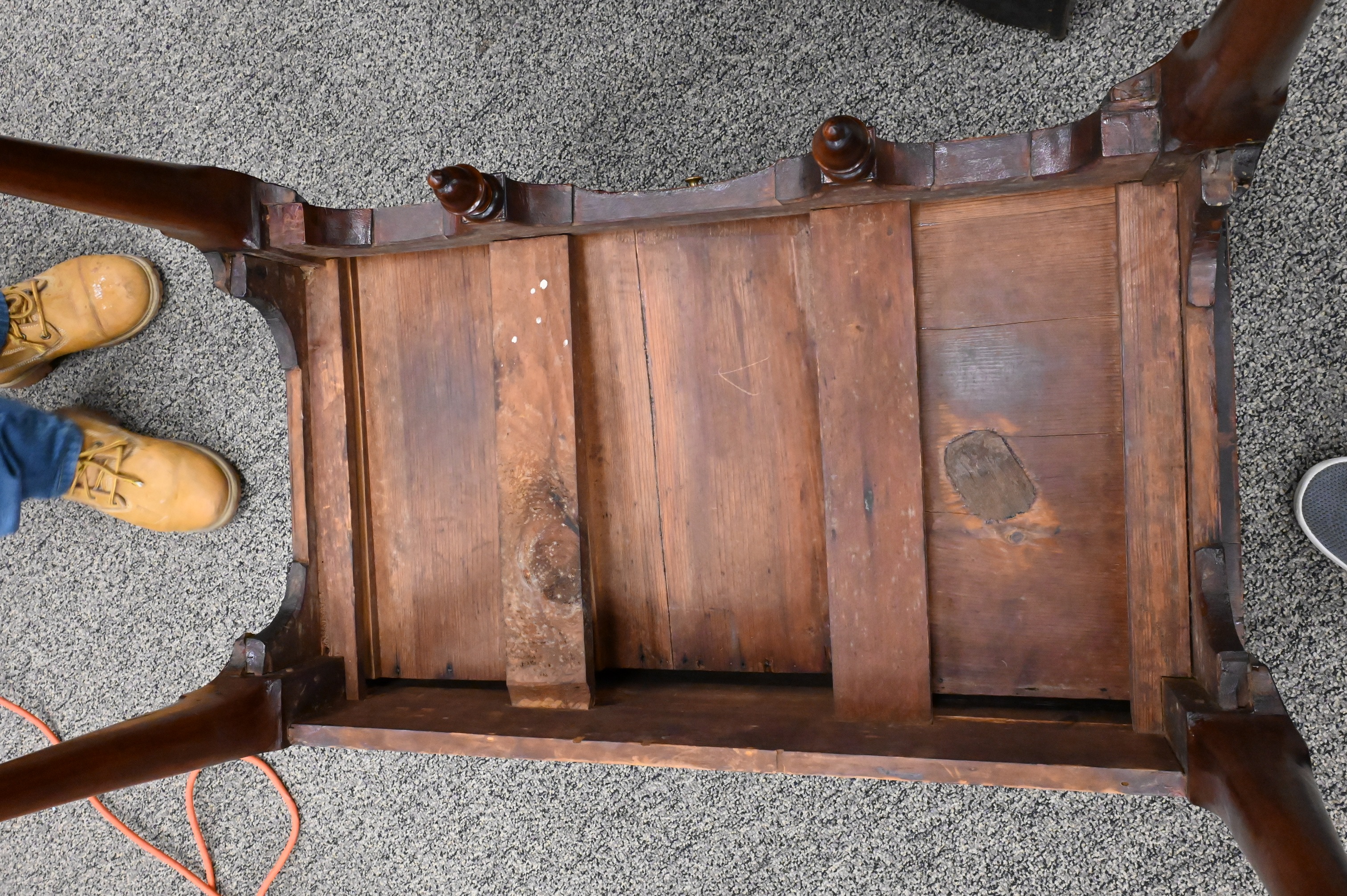 having carved fan, set on cabriole legs ending in pad feet, circa 1750, restored