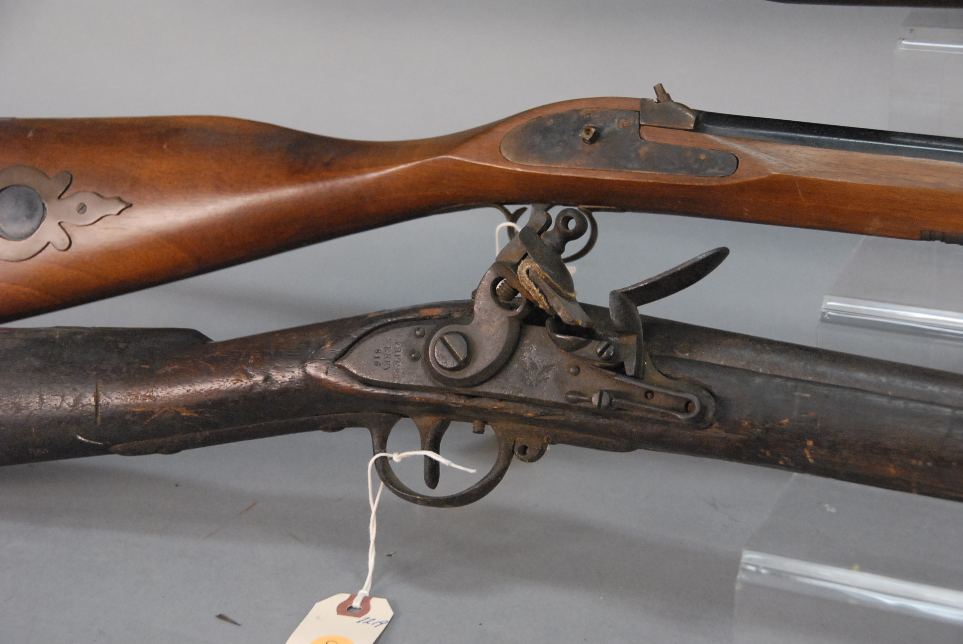 Lot 151: Three rifles to include E. Whitney model 1822, percussion musket, marked E Whitney US. JCB a Mendi Spain, 45 caliber rifle, percuss…