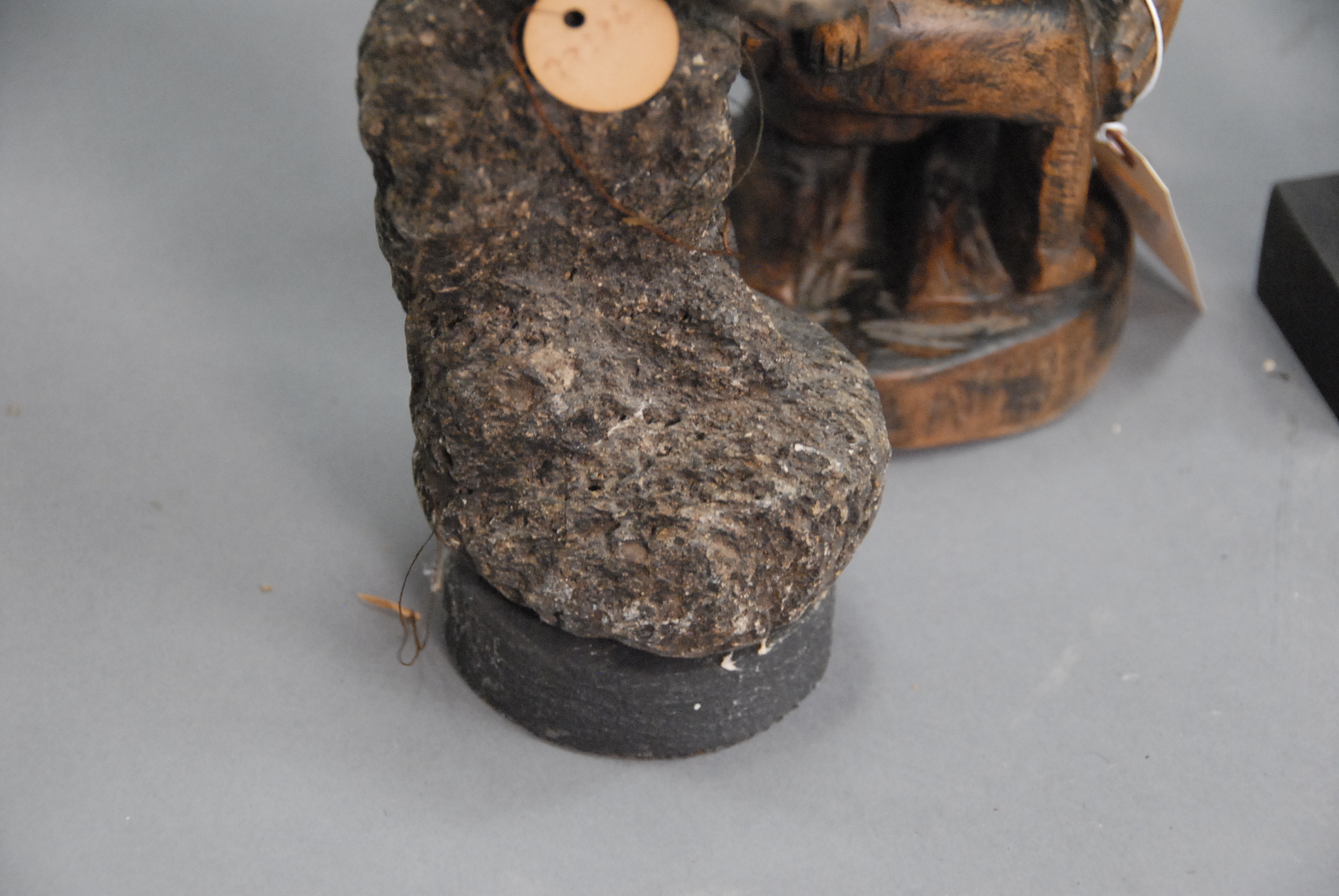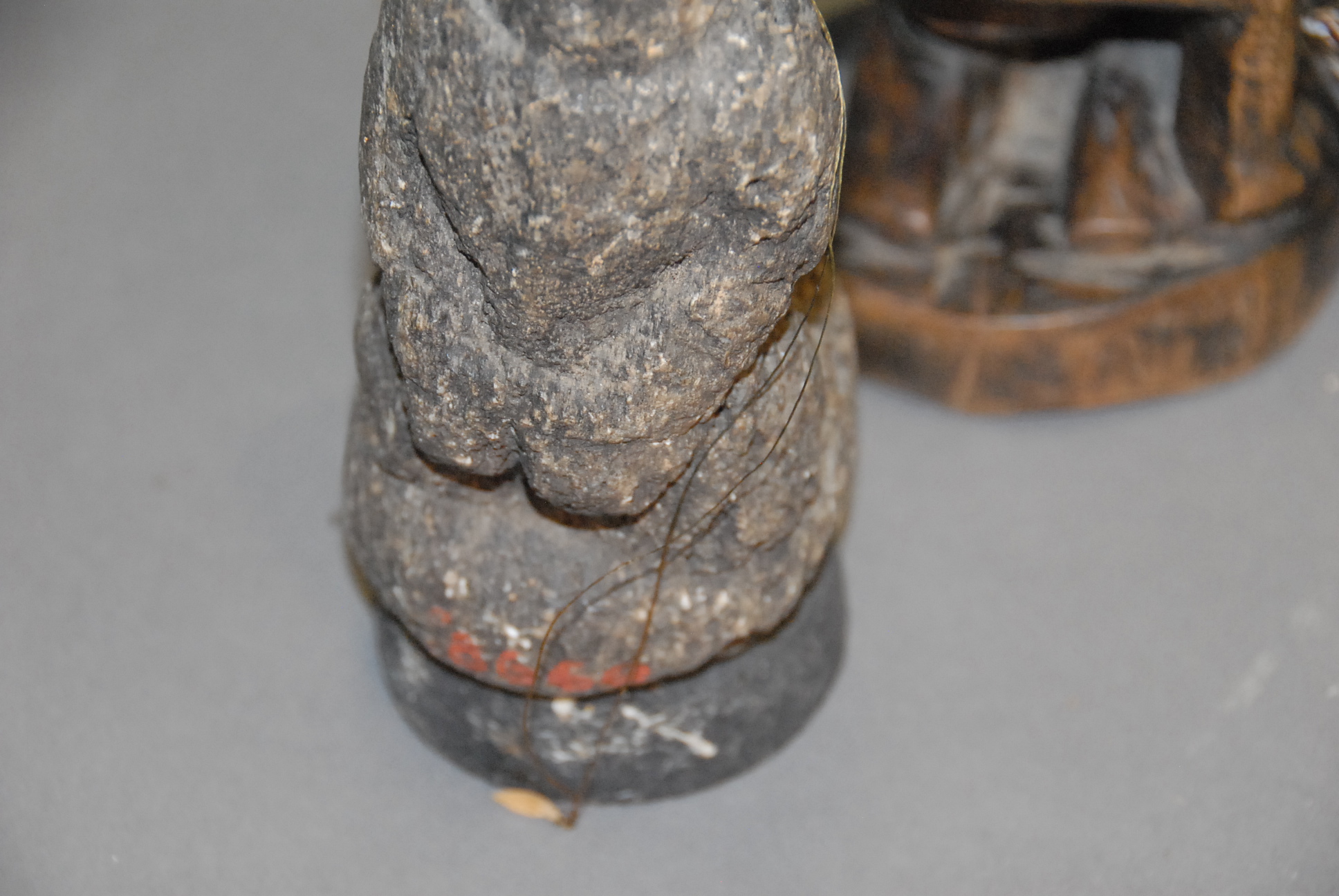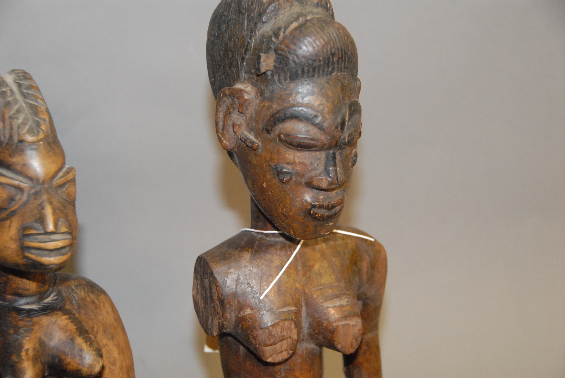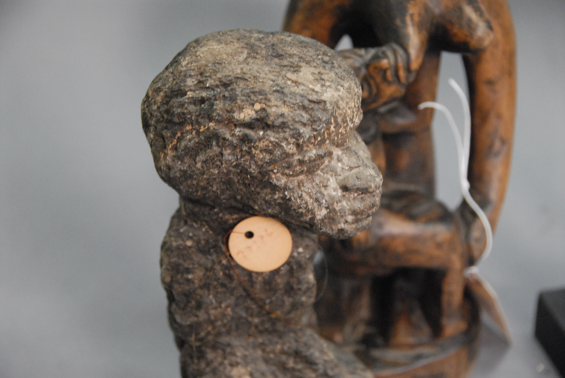 Lot 151: Three West African carvings, Yoruba wood carving, Baule wood carving from the Ivory Coast one kissi stone from Sierra Leoni, ht