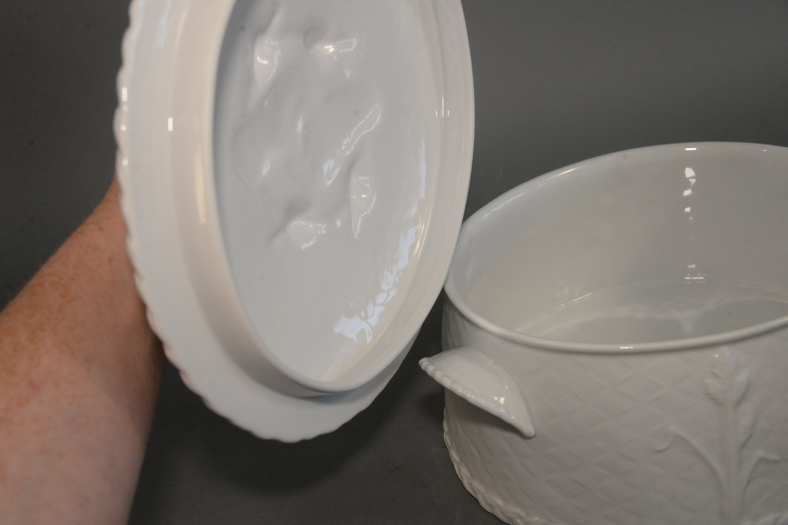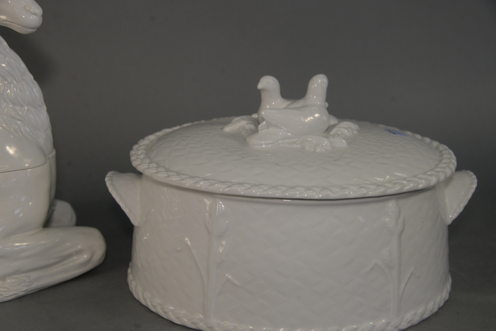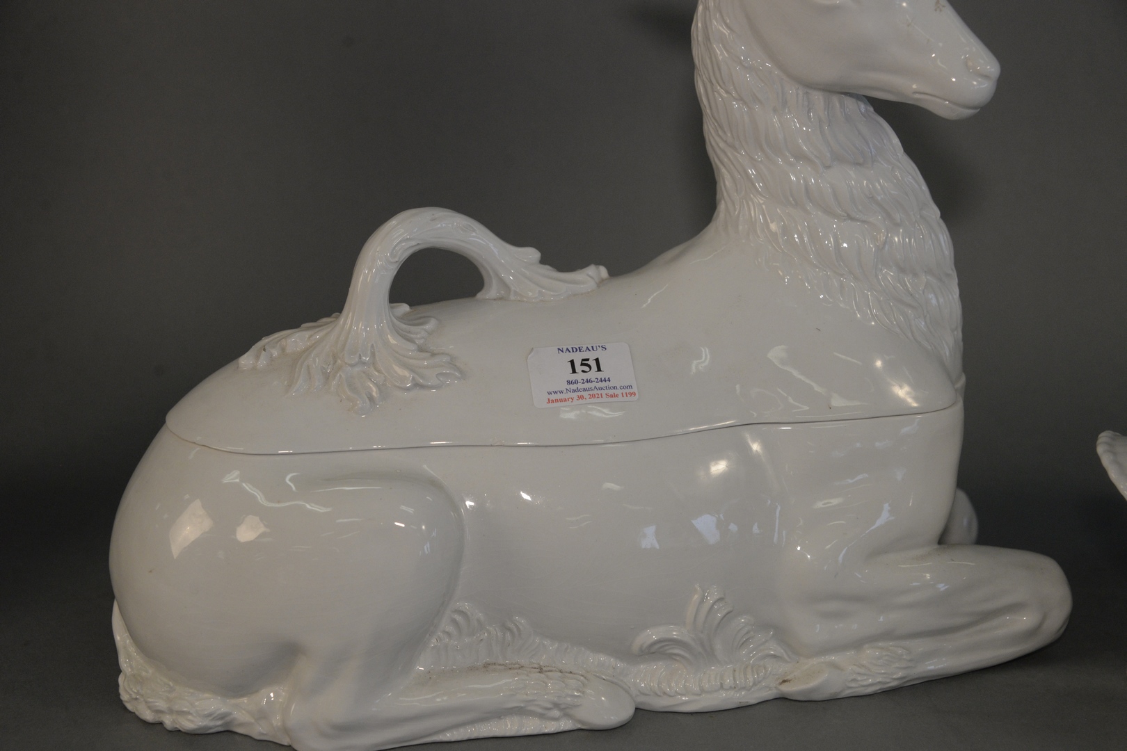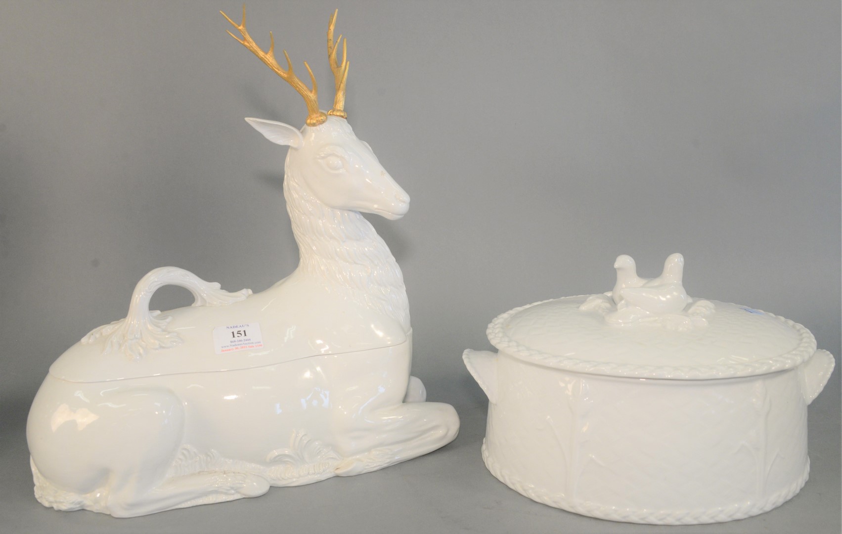 Lot 151: Two Large Porcelain Pieces to include a Royal Worcester covered dish with bird motif, along with a Mottahedeh porcelain stag turee…